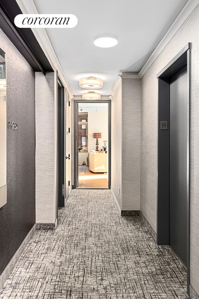 Walk off the elevator on to a semi private renovated hallway into your