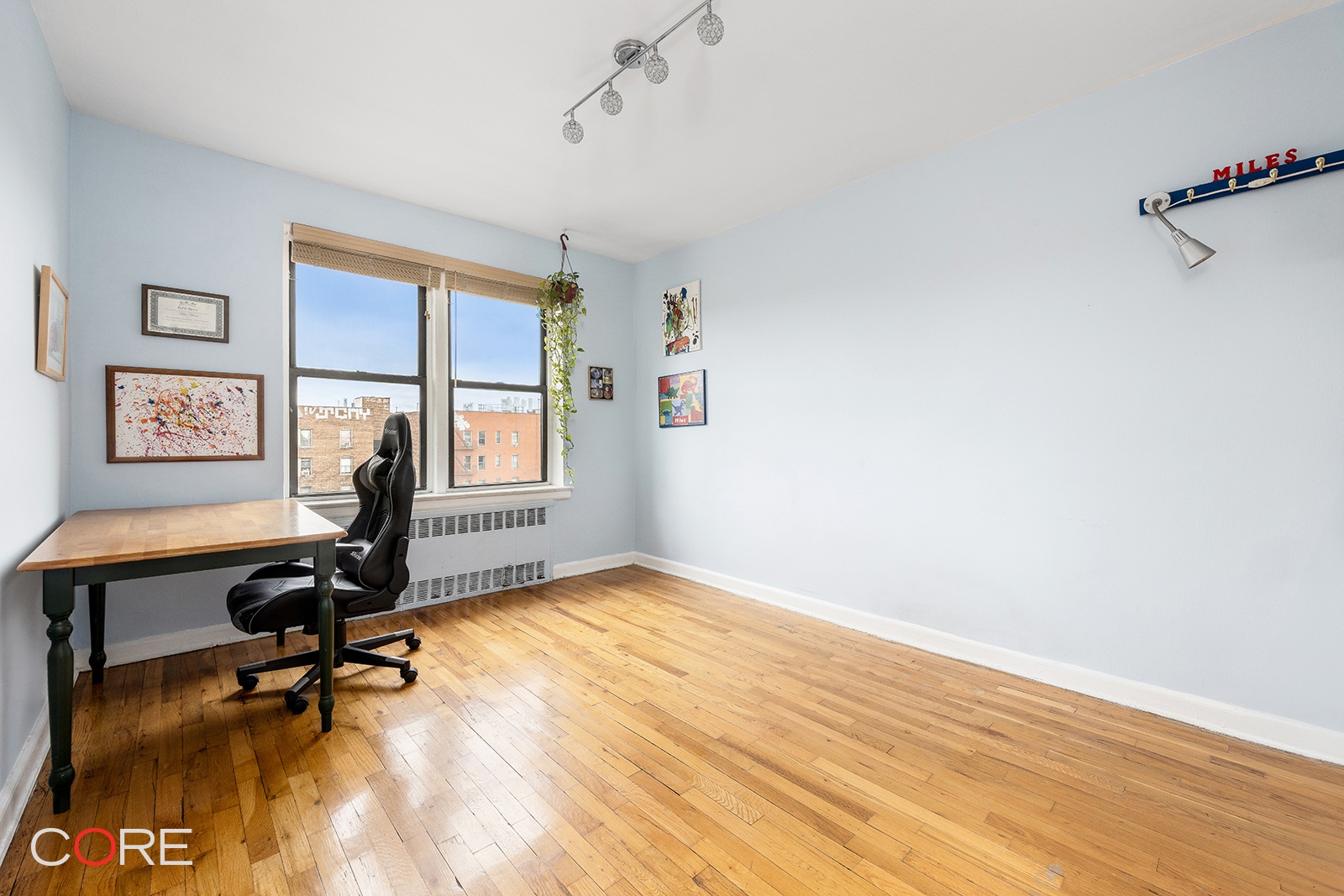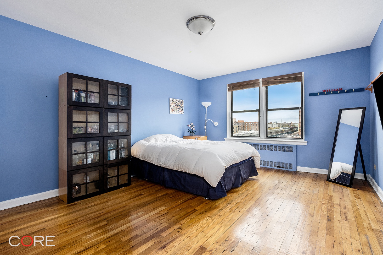 One of the most unique apartments to come to market in Jackson Heights. This massive top-floor three-bed two-bath was created through a combination of two adjoining apartments, and it offers thoughtful renovations and clear views of the Manhattan skyline.