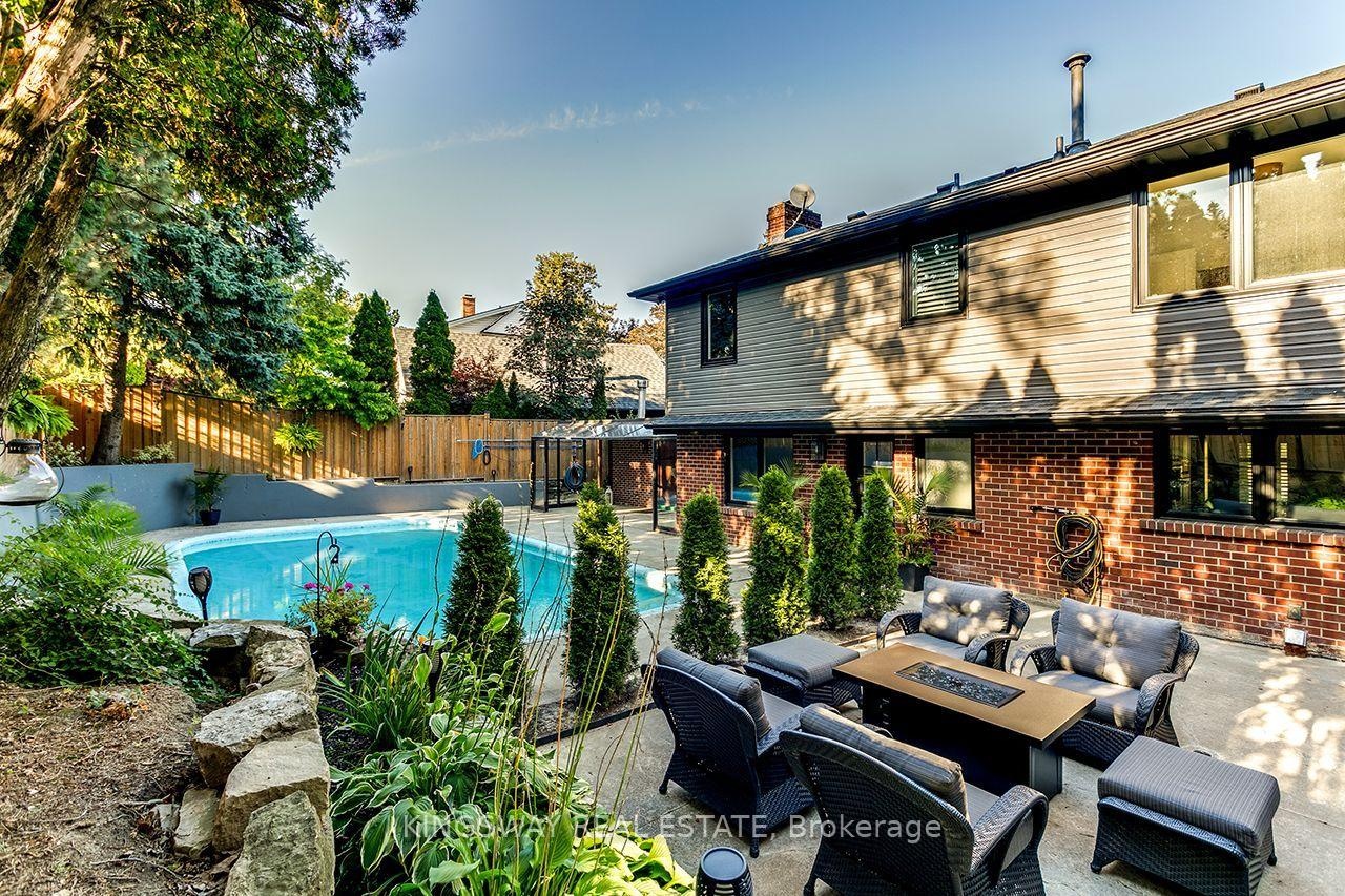 Imagine opening your front door to the sounds of Chedoke Falls! Surrounded by Mature Trees & Set Back Down the Oversized Driveway. Curb Appeal Galore. Luxury & Quality Abounds. This 4 Bed 3 Bath Home Features Designer Like Finishes. Recent Updates Incl New Windows, Exterior Doors, New Eaves & Downspouts, New Primary Bath, Freshly Painted, New Foyer Tile & Landscaping. Large custom kitchen (2019), with High End SS Appliances, Granite Countertops, & Backsplash. Beautiful Hardwood Floors Throughout. Formal Dining Room W Custom Wall Detail, Large Living/Dining W Fireplace. Primary Bedroom Fts His & Her Closets & 3 Pce Ensuite, California shutters, and ample closet space within each of 4 Beds. Resort Style Fully Private Backyard W Inground Pool, Concrete Deck & Sitting area. Double car garage with parking for 4 cars in the driveway. . Roof (2021), Furnace/A/C (2008), Irrigation system (1999)