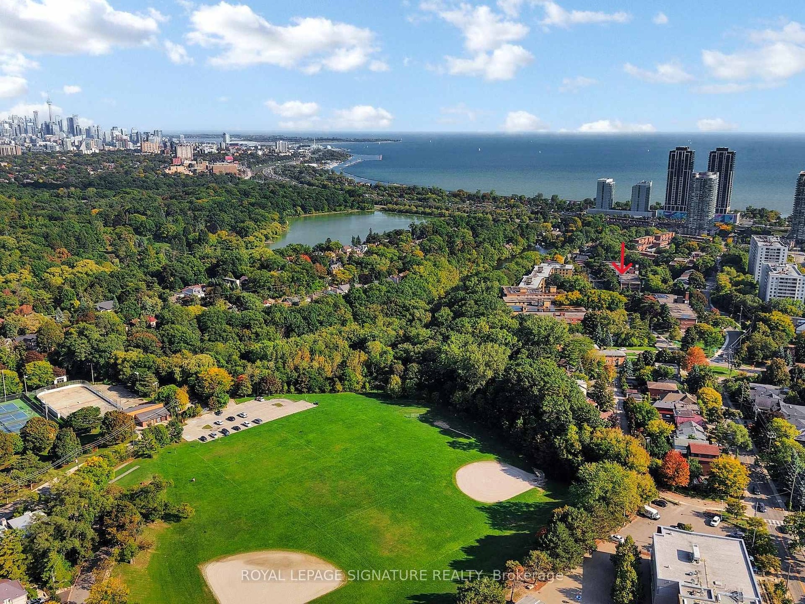 HUGE apartment in an incredible location. Fully RENOVATED. Three large bedrooms, accessed from a separate hallway, allows privacy for everyone. The Kitchen can handle multiple chefs at the same time and the living room and dining room are made for entertaining. This apartment has been renovated throughout including an expanded bathroom with large separate shower and soaking tub. The kitchen has extensive cabinetry, solid-surface counters, glass mosaic backsplash and pot lights. Appliances include a Panasonic microwave/hood, Fisher Paykel stainless steel fridge and a built-in, fully-integrated dishwasher. Flooring is new throughout and all windows have custom roller blinds. A new wall of built-in storage in the living room, fitted wardrobes and built-in cabinetry in bedrooms along with a coat closet, pantry/storage room, laundry room and a storage locker ensure that you will have sufficient space for everything you need. Located in the Village of Swansea and walking distance to High Park, Lake Ontario and Bloor West Village. Highly-rated Swansea Public School, with its adjacent library and community centre, is just up the street. The Cheese Boutique and its expanding food empire is a destination for the entire city, but only a block to the west. Easy road and highway access, bike paths on Bloor and Lakeshore as well as a bus stop at the front door allow for great options when it comes to travel, whether by bike, foot, car or TTC. One underground parking space is included. Grenadier Villas is an established co-ownership community. Residents are friendly, fees are low (and include property tax, heat and water), and pets & long-term rentals are permitted. If you've been wondering how to own property in one of the city's best, most family-friendly neighbourhoods, this IS your opportunity! FIND THE RED ARROW IN EACH OF THE DRONE SHOTS FOR THE LOCATION OF THE APARTMENT!