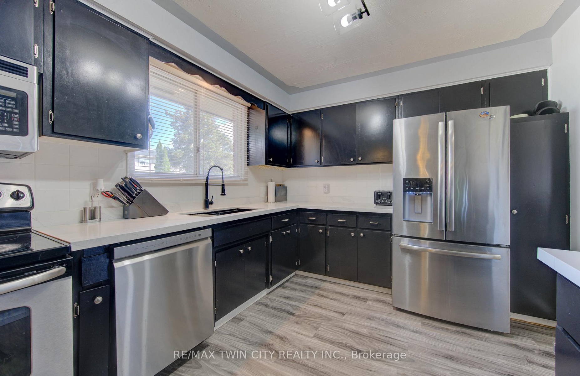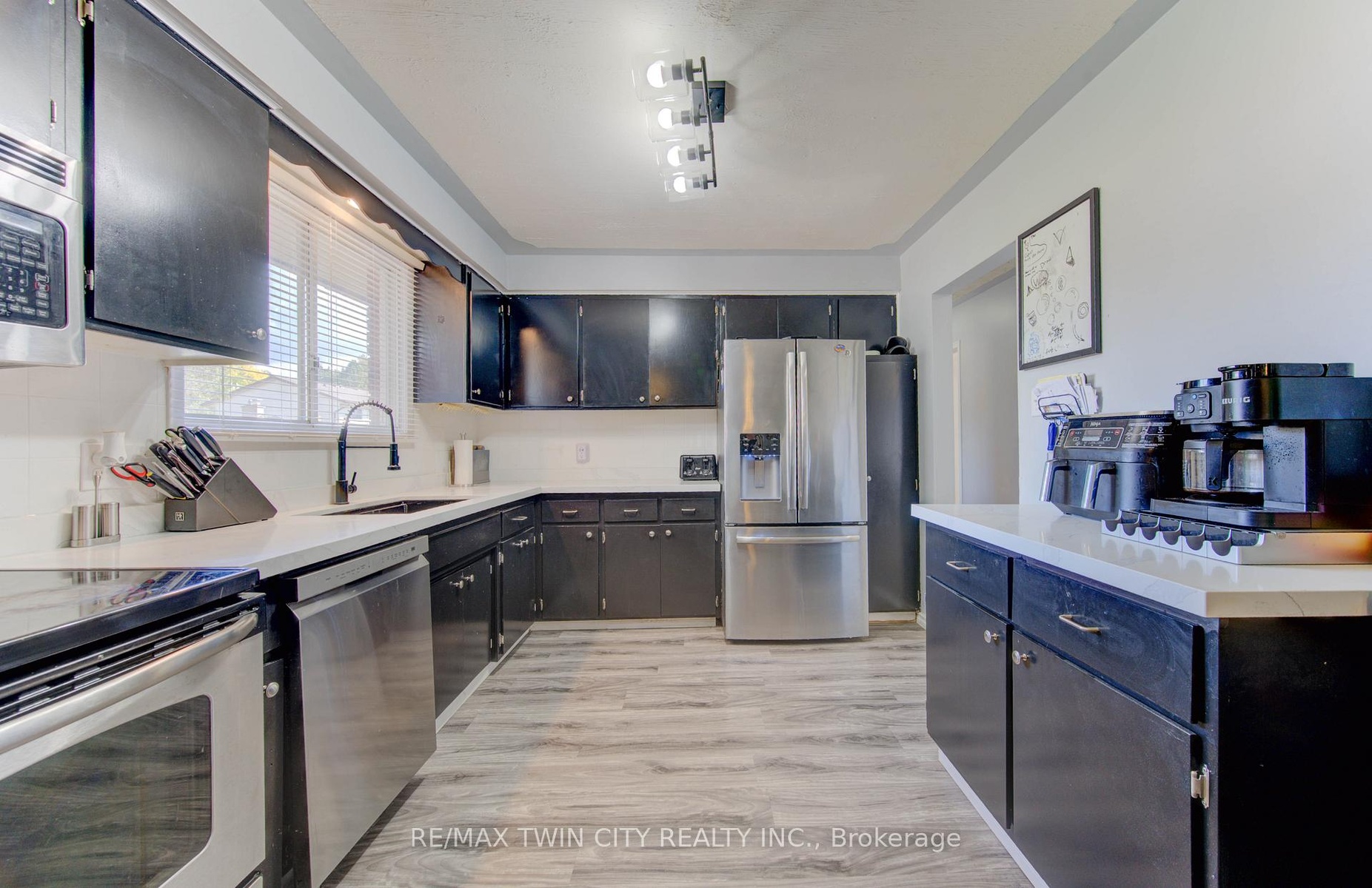 Situated in the highly desirable Country Hills neighborhood of Kitchener, 320 Country Hill Drive is a beautifully updated raised bungalow that perfectly blends comfort, style, and practicality. Offering five bedrooms and two bathrooms, this spacious home is ideal for a growing family. Freshly painted throughout, it features a bright and modern interior highlighted by a large living room filled with natural light from a well-placed window. The kitchen has been refreshed with new countertops (2024), freshly painted cabinets (2025), stainless steel appliances, a new dishwasher (2025), and an undermount sink, creating a warm and functional space that flows seamlessly into the dining area. From there, step out to a partially covered, two-level deck with windows, freshly stained in 2025-perfect for outdoor gatherings or quiet evenings. The main floor also includes three generous bedrooms and a fully renovated 5-piece bathroom (2024) with dual sinks and ample cabinetry. The finished basement extends the living space with two additional bedrooms, a versatile den that can easily be opened up by removing the wall between it and the second bedroom, a kitchenette, and a large laundry room featuring a new washer and dryer (2025) with plenty of storage and direct garage access. Outside, the property showcases a resurfaced driveway, brand-new interlock, and a spacious, fully fenced backyard that offers both privacy and room for children to play or for gardening and entertaining. Conveniently located close to schools, shopping, cafes, and just minutes from Highway 7, this move-in-ready home offers an ideal balance of comfort, modern updates, and family-friendly living.