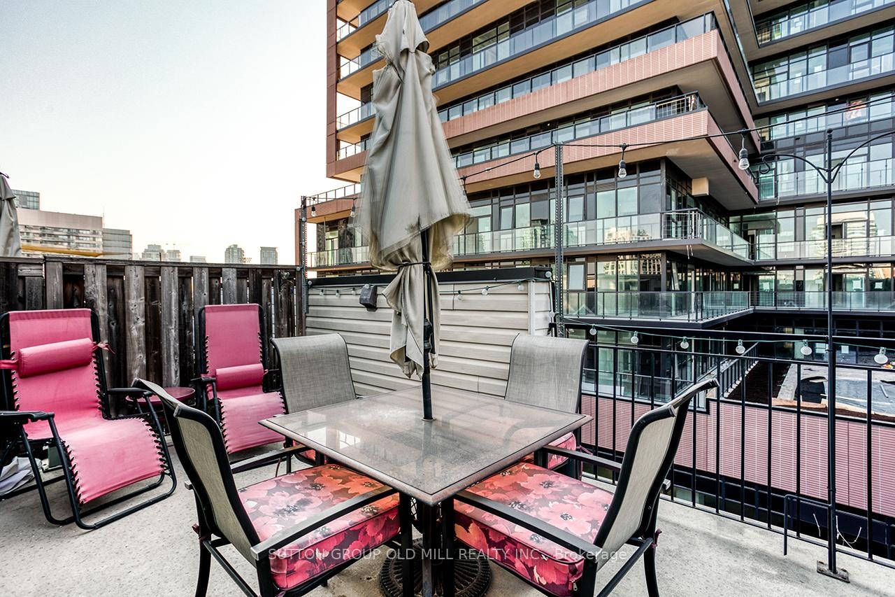 Welcome to your stylish urban retreat in Trendy King West, just steps from Liberty Village, transit, shopping, top-rated restaurants, and all the conveniences of downtown living. This modern townhouse features a private rooftop terrace perfect for entertaining or unwinding, plus access to a beautifully landscaped courtyard. Inside, enjoy: Upgraded kitchen appliances, including a premium Miele washer and dryer, Laminate flooring and pot lights in the living area for a sleek, contemporary feel, Two fully renovated washrooms with high-end fixtures (sink, toilet, shower), A versatile den (~40 sq ft) ideal for a home office or guest bedroom, Extra storage with custom sliding doors on the second level, Bonus features: One parking space and one locker included, All current appliances are included - just move in and enjoy!
