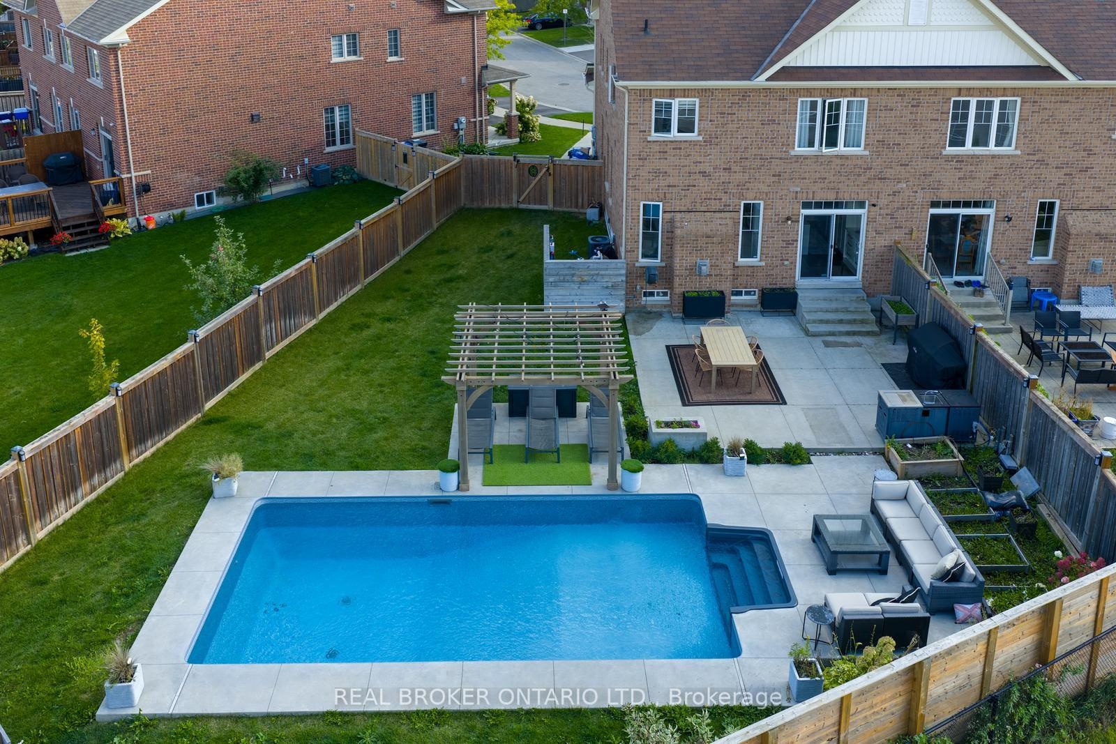 This contemporary residence is a rare opportunity, offering a refined blend of modern design, luxurious finishes, and resort-style living. The heart of the home is the stunning chefs kitchen, fully renovated and anchored by a showpiece quartz island an inviting space to gather with family and friends. Outfitted with a gas stove, smart refrigerator, beverage station, and designer lighting, the kitchen is both visually striking and effortlessly functional, perfect for daily living and entertaining alike.The backyard oasis complements the homes stunning interior. A heated saltwater pool is surrounded by lounge areas and thoughtfully designed garden beds with full irrigation, creating a private retreat ideal for lively gatherings or quiet moments of relaxation.Upstairs, four spacious bedrooms provide comfort and versatility, with generous square footage and a layout tailored to modern living.With its premium pie-shaped lot, curated upgrades, and turnkey ready, 40 Divinity Circle is more than a home its a lifestyle.
