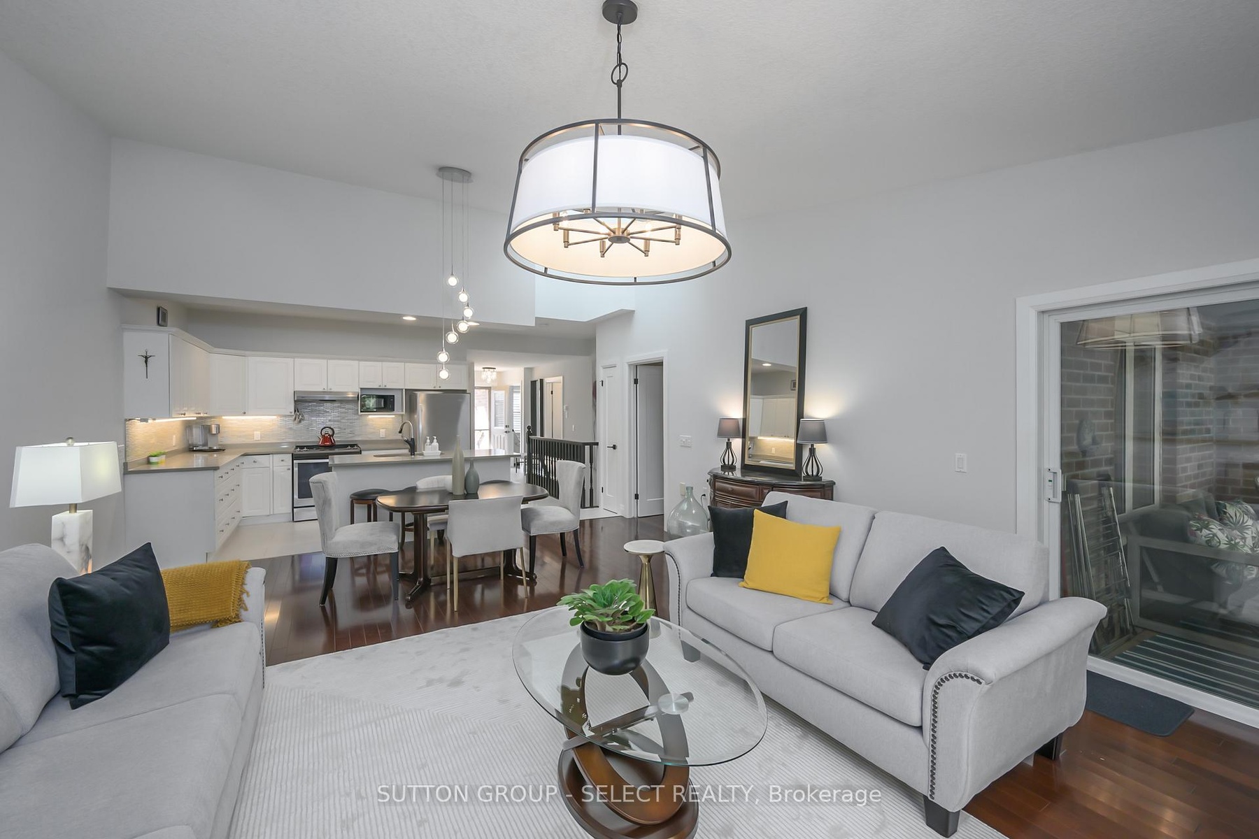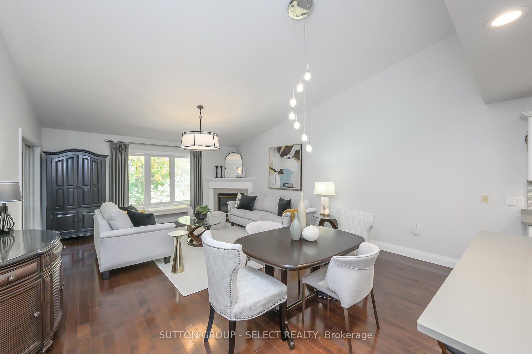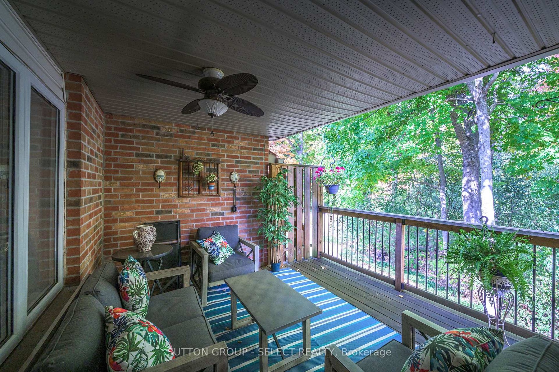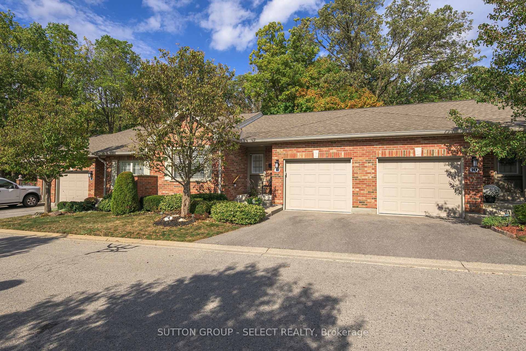 Tucked quietly at the. back of the coveted Byron Woods enclave, this forest-backed bungalow feels like a secret escape in the heart of the village. Morning light filters through the trees, birds chatter in the canopy, and the only other sound you'll hear from the covered deck is the breeze moving through the leaves. It's hard to believe you're just a short walk to Byron's shops, cafés, and the trails of Springbank Park along the Thames River. Inside, over $120,000 in thoughtful upgrades have transformed the space with timeless style including upgraded interior doors, baseboards and casings, hardwood and tile floors, updated lighting, and three beautifully renewed bathrooms. The kitchen shines with quartz counters, an iridescent porcelain mosaic backsplash, stainless appliances, and a skylight that floods the space with sunshine. The open-concept living and dining area centers around a romantic gas fireplace and lush forest views, creating a sense of calm that continues throughout the home. The main level offers a tranquil primary bedroom with walkout access to the deck, a beautifully renovated ensuite with walk-in shower, a versatile second bedroom or office, a second renovated full bath, and convenient main-floor laundry. Downstairs, the walkout lower level feels equally inviting with large windows, a family room wrapped in custom built-ins, an integrated projector and screen for movie nights, a bright guest bedroom, an updated 3-piece bath with tile walk-in shower, and plenty of storage. Step outside to your private patio and enjoy the dappled light of the woods. With an attached garage and carefree condo living, this rare forest-side home offers the best of Byron, steps from Springbank Park, minutes to Boler Mountain, Riverbend Golf, and the London Hunt & Country Club. A lifestyle as peaceful as it is connected.