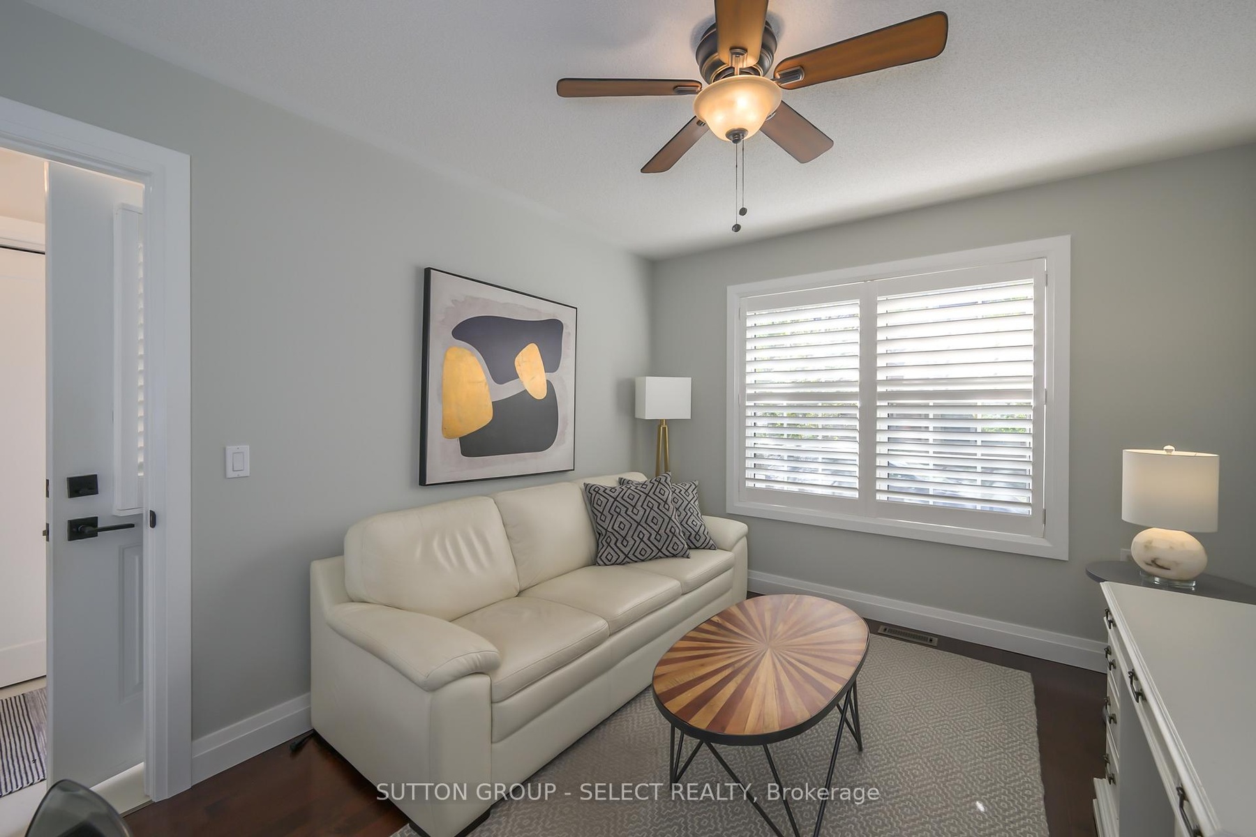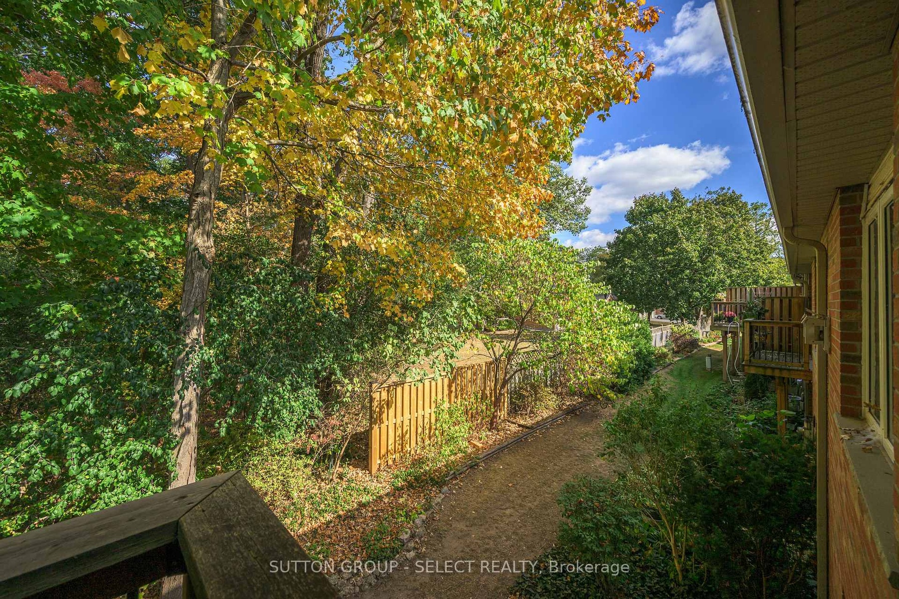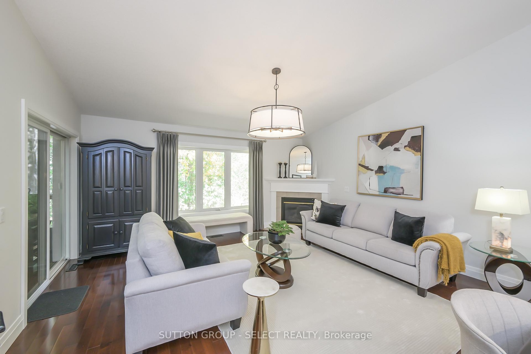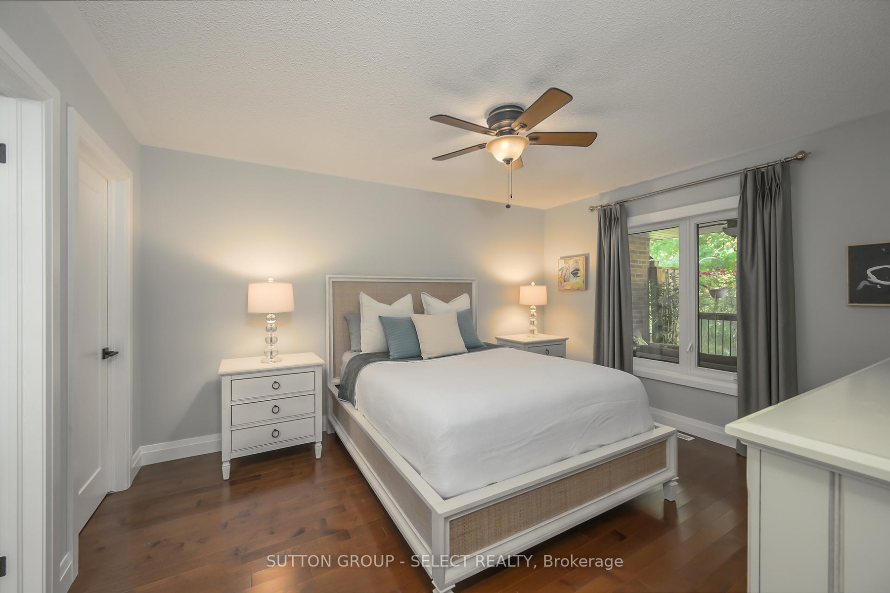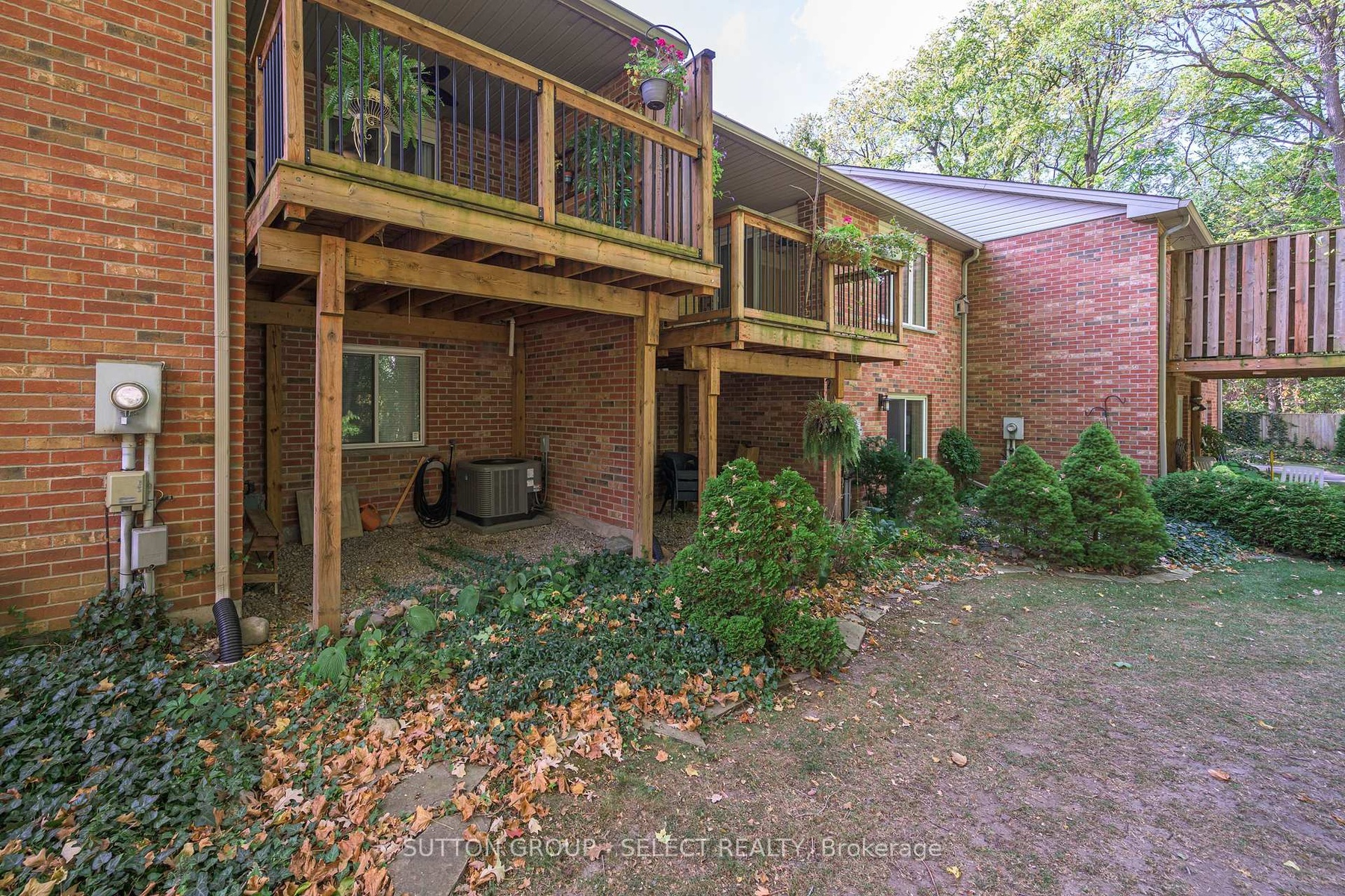 Tucked quietly at the. back of the coveted Byron Woods enclave, this forest-backed bungalow feels like a secret escape in the heart of the village. Morning light filters through the trees, birds chatter in the canopy, and the only other sound you'll hear from the covered deck is the breeze moving through the leaves. It's hard to believe you're just a short walk to Byron's shops, cafés, and the trails of Springbank Park along the Thames River. Inside, over $120,000 in thoughtful upgrades have transformed the space with timeless style including upgraded interior doors, baseboards and casings, hardwood and tile floors, updated lighting, and three beautifully renewed bathrooms. The kitchen shines with quartz counters, an iridescent porcelain mosaic backsplash, stainless appliances, and a skylight that floods the space with sunshine. The open-concept living and dining area centers around a romantic gas fireplace and lush forest views, creating a sense of calm that continues throughout the home. The main level offers a tranquil primary bedroom with walkout access to the deck, a beautifully renovated ensuite with walk-in shower, a versatile second bedroom or office, a second renovated full bath, and convenient main-floor laundry. Downstairs, the walkout lower level feels equally inviting with large windows, a family room wrapped in custom built-ins, an integrated projector and screen for movie nights, a bright guest bedroom, an updated 3-piece bath with tile walk-in shower, and plenty of storage. Step outside to your private patio and enjoy the dappled light of the woods. With an attached garage and carefree condo living, this rare forest-side home offers the best of Byron, steps from Springbank Park, minutes to Boler Mountain, Riverbend Golf, and the London Hunt & Country Club. A lifestyle as peaceful as it is connected.