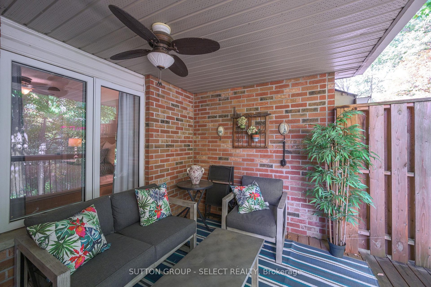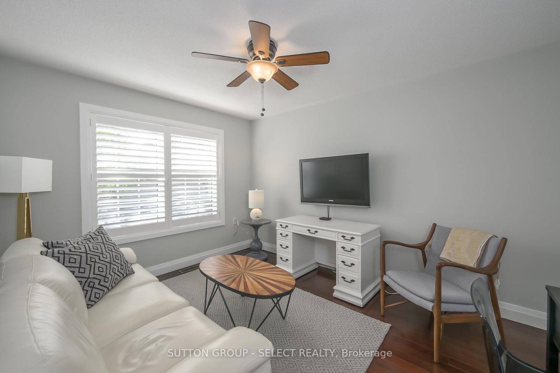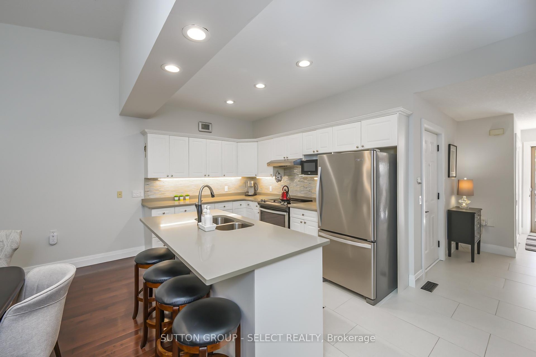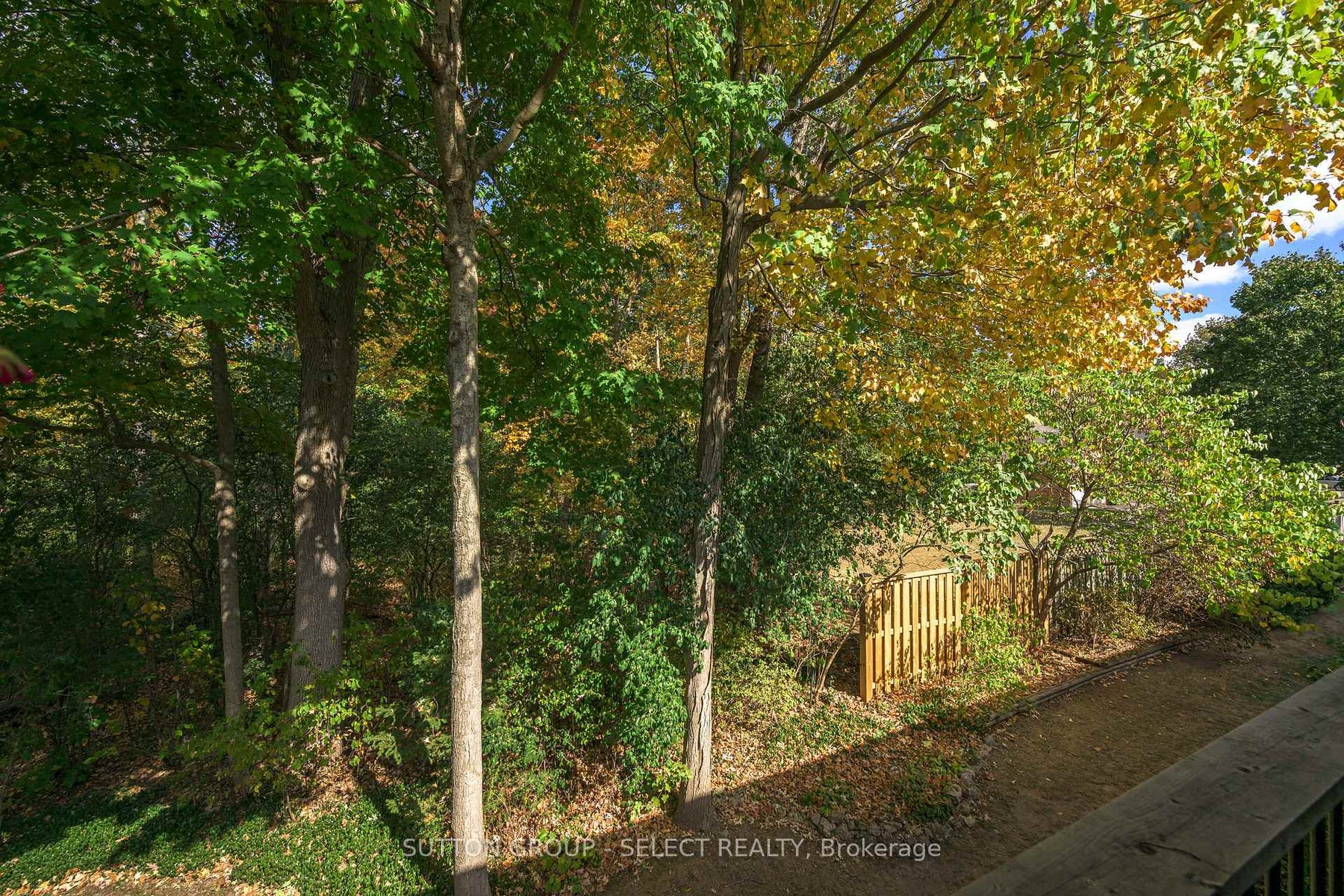 Tucked quietly at the. back of the coveted Byron Woods enclave, this forest-backed bungalow feels like a secret escape in the heart of the village. Morning light filters through the trees, birds chatter in the canopy, and the only other sound you'll hear from the covered deck is the breeze moving through the leaves. It's hard to believe you're just a short walk to Byron's shops, cafés, and the trails of Springbank Park along the Thames River. Inside, over $120,000 in thoughtful upgrades have transformed the space with timeless style including upgraded interior doors, baseboards and casings, hardwood and tile floors, updated lighting, and three beautifully renewed bathrooms. The kitchen shines with quartz counters, an iridescent porcelain mosaic backsplash, stainless appliances, and a skylight that floods the space with sunshine. The open-concept living and dining area centers around a romantic gas fireplace and lush forest views, creating a sense of calm that continues throughout the home. The main level offers a tranquil primary bedroom with walkout access to the deck, a beautifully renovated ensuite with walk-in shower, a versatile second bedroom or office, a second renovated full bath, and convenient main-floor laundry. Downstairs, the walkout lower level feels equally inviting with large windows, a family room wrapped in custom built-ins, an integrated projector and screen for movie nights, a bright guest bedroom, an updated 3-piece bath with tile walk-in shower, and plenty of storage. Step outside to your private patio and enjoy the dappled light of the woods. With an attached garage and carefree condo living, this rare forest-side home offers the best of Byron, steps from Springbank Park, minutes to Boler Mountain, Riverbend Golf, and the London Hunt & Country Club. A lifestyle as peaceful as it is connected.