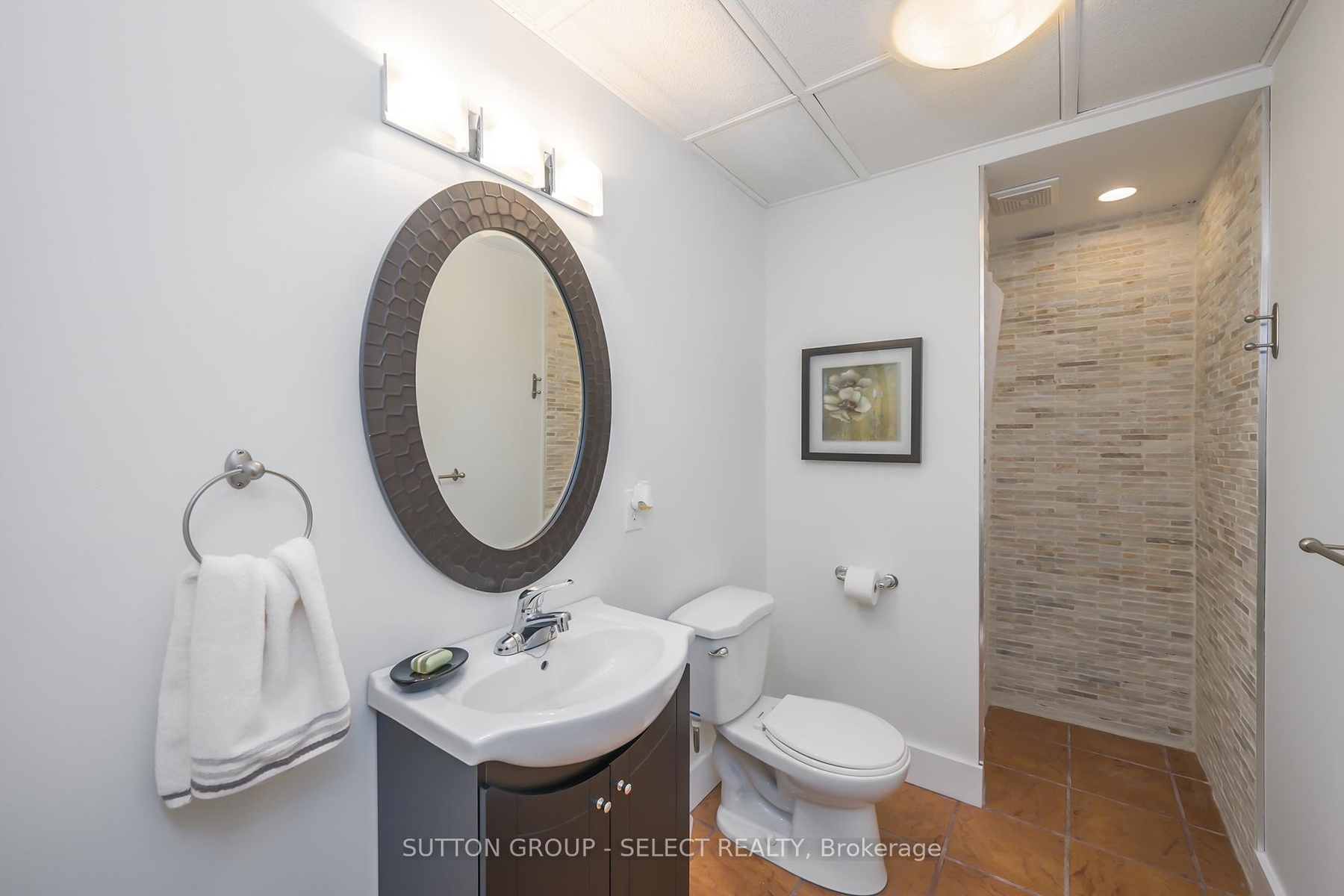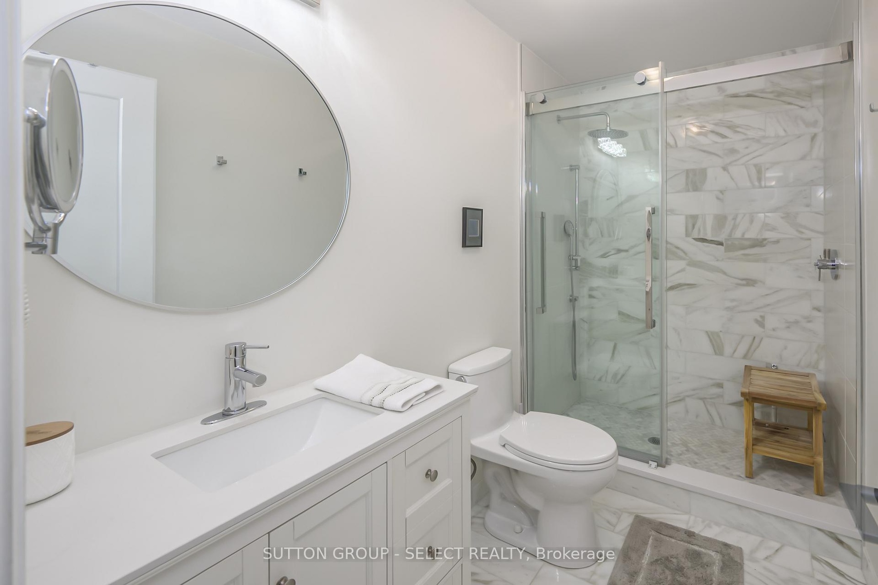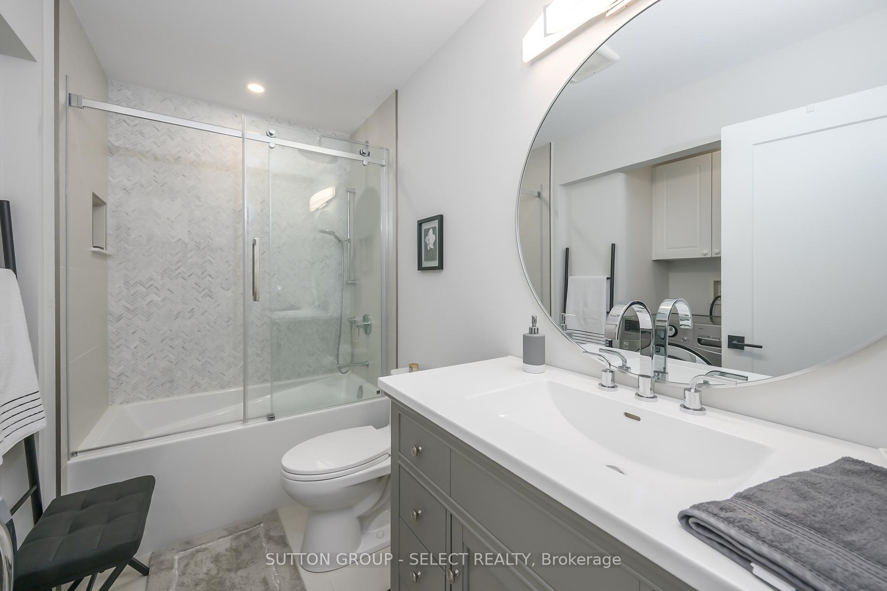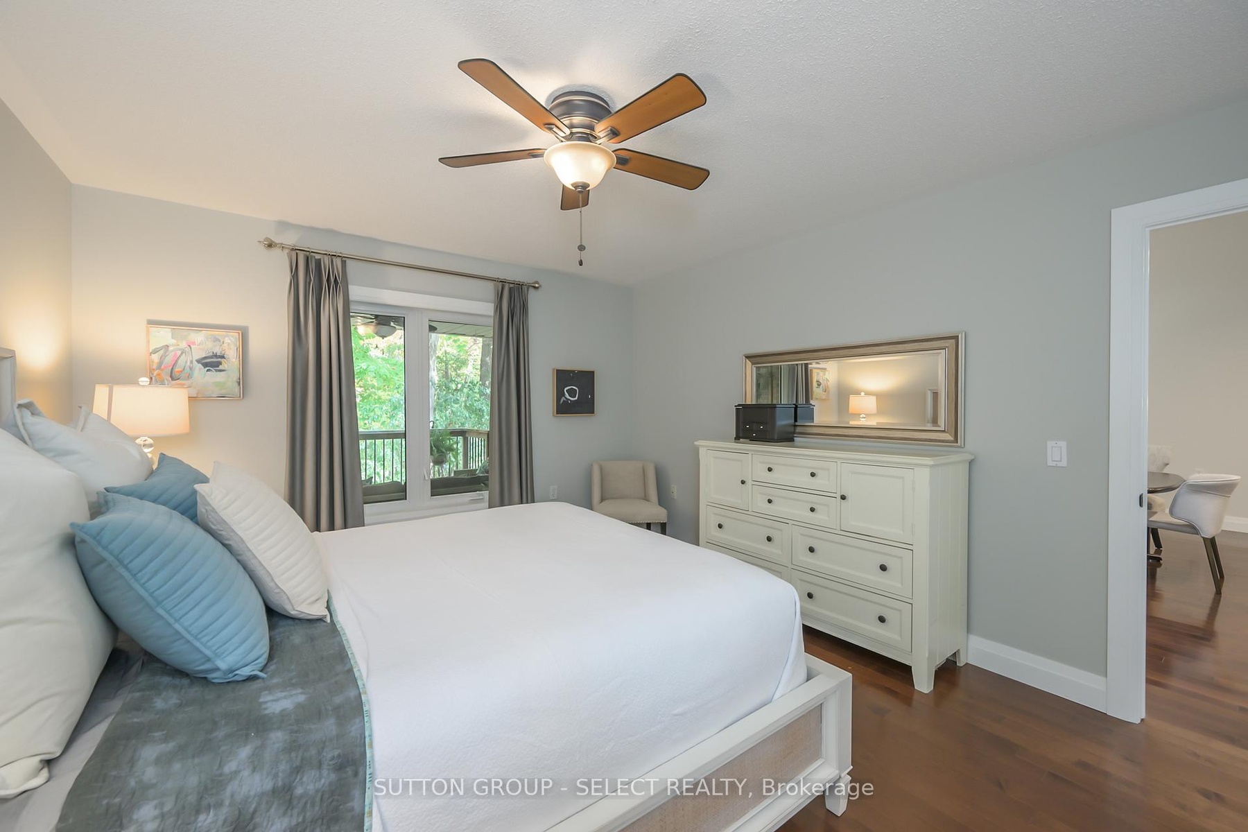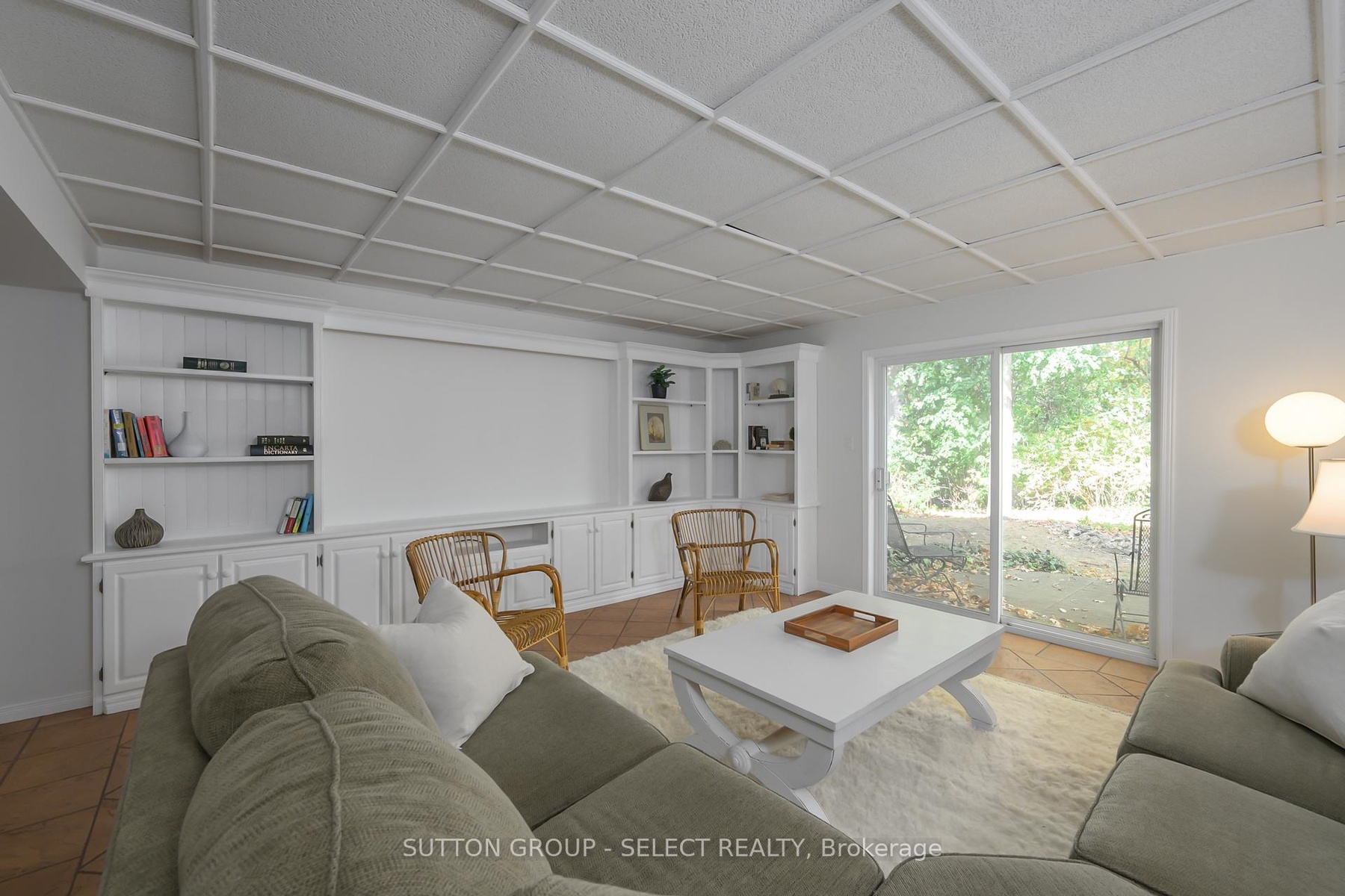 Tucked quietly at the. back of the coveted Byron Woods enclave, this forest-backed bungalow feels like a secret escape in the heart of the village. Morning light filters through the trees, birds chatter in the canopy, and the only other sound you'll hear from the covered deck is the breeze moving through the leaves. It's hard to believe you're just a short walk to Byron's shops, cafés, and the trails of Springbank Park along the Thames River. Inside, over $120,000 in thoughtful upgrades have transformed the space with timeless style including upgraded interior doors, baseboards and casings, hardwood and tile floors, updated lighting, and three beautifully renewed bathrooms. The kitchen shines with quartz counters, an iridescent porcelain mosaic backsplash, stainless appliances, and a skylight that floods the space with sunshine. The open-concept living and dining area centers around a romantic gas fireplace and lush forest views, creating a sense of calm that continues throughout the home. The main level offers a tranquil primary bedroom with walkout access to the deck, a beautifully renovated ensuite with walk-in shower, a versatile second bedroom or office, a second renovated full bath, and convenient main-floor laundry. Downstairs, the walkout lower level feels equally inviting with large windows, a family room wrapped in custom built-ins, an integrated projector and screen for movie nights, a bright guest bedroom, an updated 3-piece bath with tile walk-in shower, and plenty of storage. Step outside to your private patio and enjoy the dappled light of the woods. With an attached garage and carefree condo living, this rare forest-side home offers the best of Byron, steps from Springbank Park, minutes to Boler Mountain, Riverbend Golf, and the London Hunt & Country Club. A lifestyle as peaceful as it is connected.