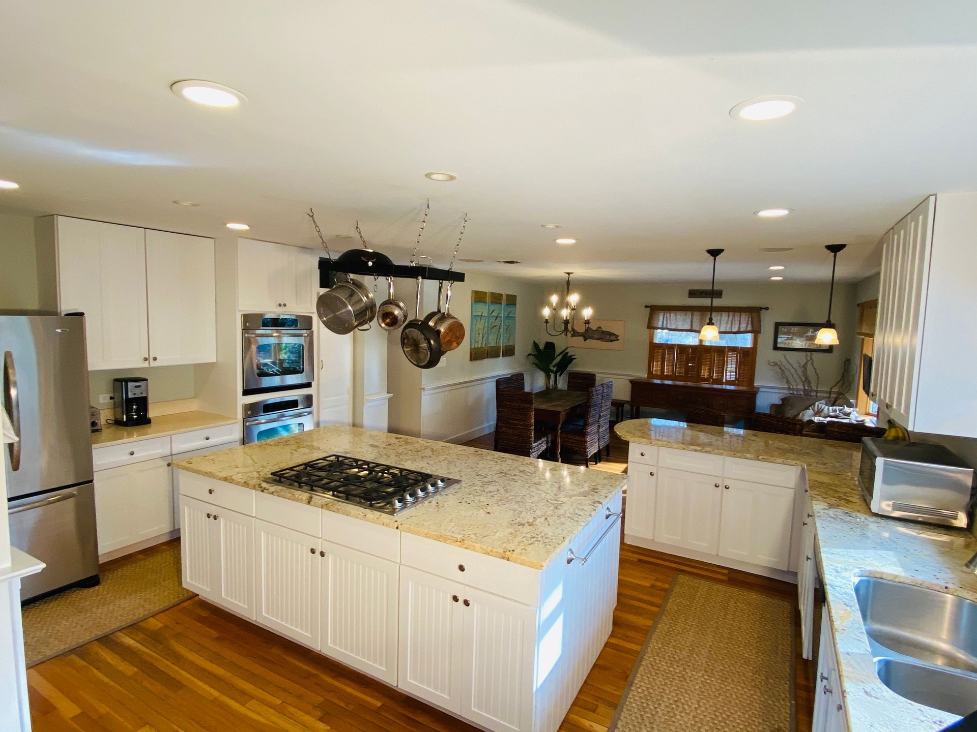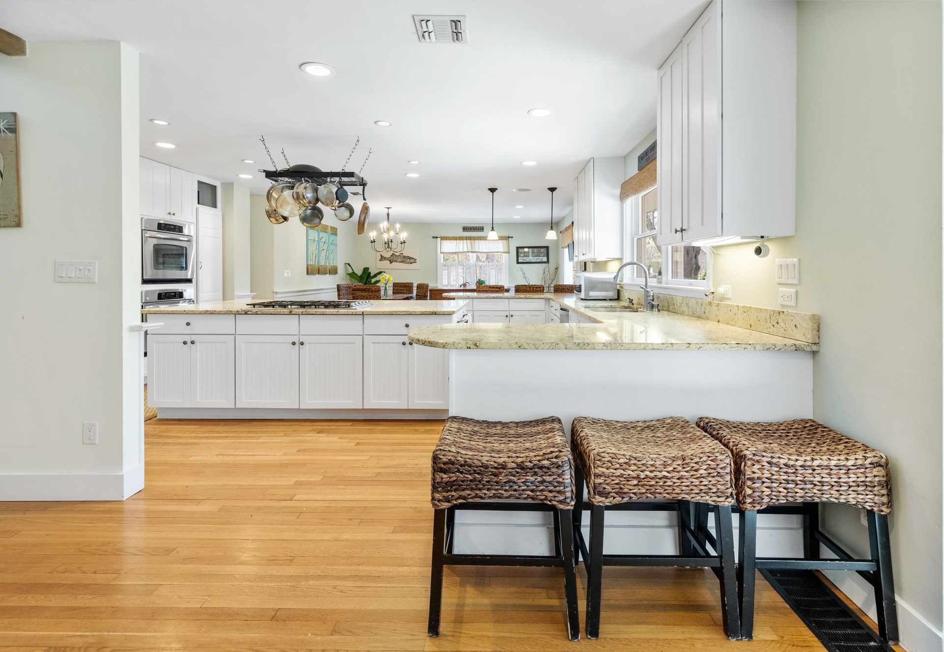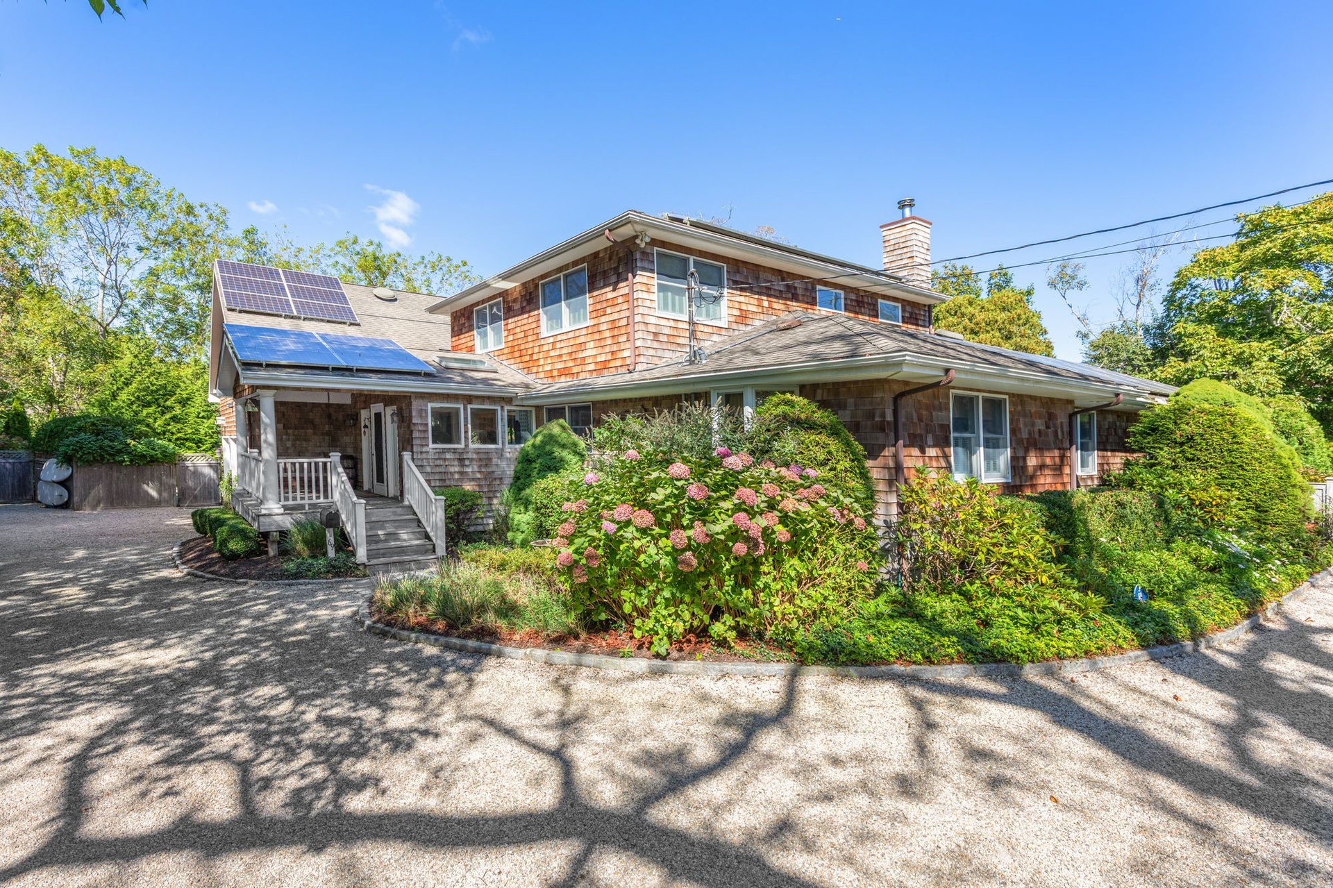 The Kitchen has a Large open concept with natural granite countertops, 2 Stainless wall ovens, Stainless refrigerator, Large center island, Breakfast seating at countertop, and Natural gas stainless 5 burner stove. There are built in speaker system in common areas and first floor central vacuum. The Built in early 1960s renovated in 1994 and 2006. There's a Custom 44x22 ft Saltwater pool w/ 60ft lap lane a pool auto vac system and a high efficiency natural gas pool heat. Wooden decks with outdoor hot/cold shower. Multi- car pea gravel stone driveway lined with Belgian block secluded rear property stone driveway. The property has a small fish pond with ornamental gardens natural privacy barriers with a outdoor sprinkler system. The best part is it's a short walk to the village and south shore beaches! Inground Pool coming summer 2025