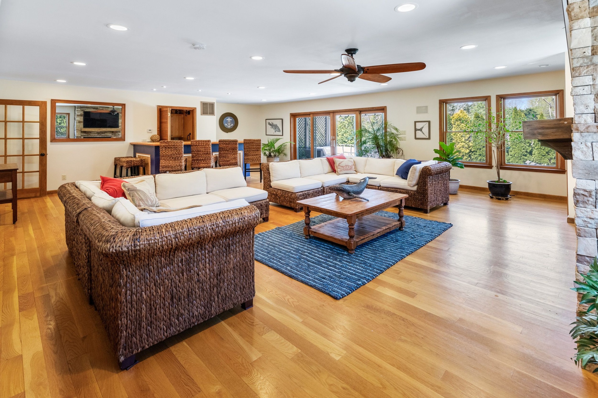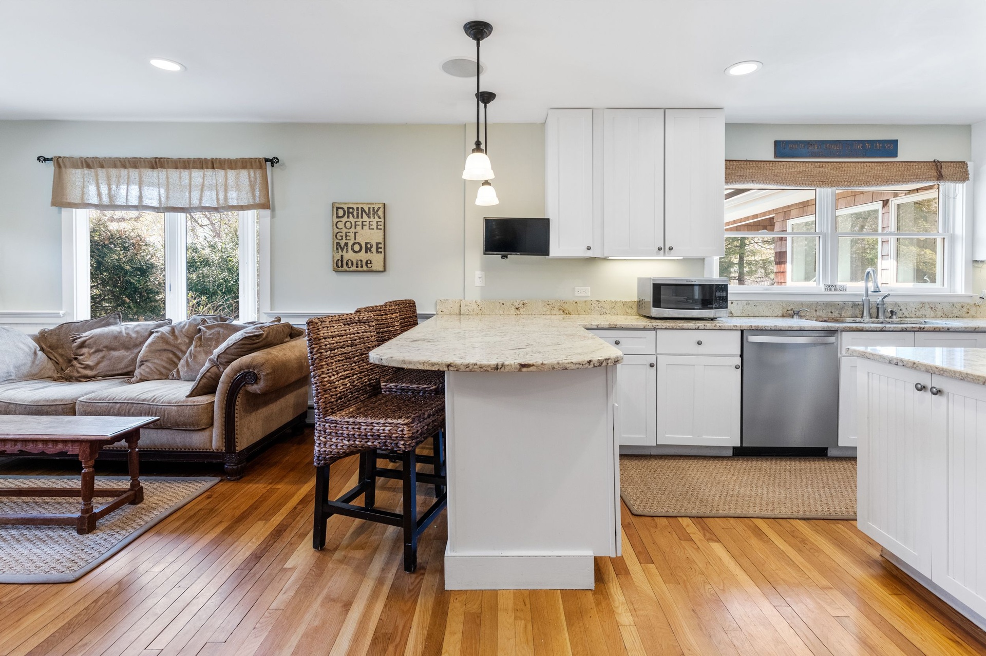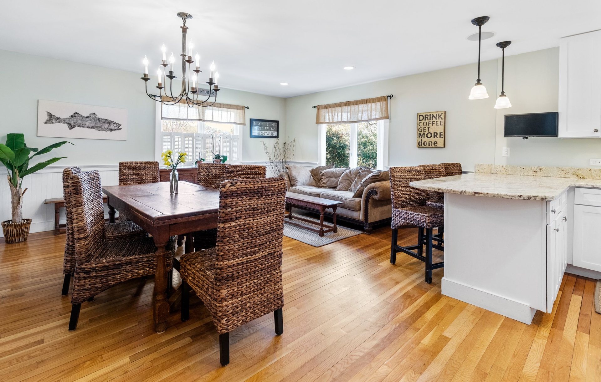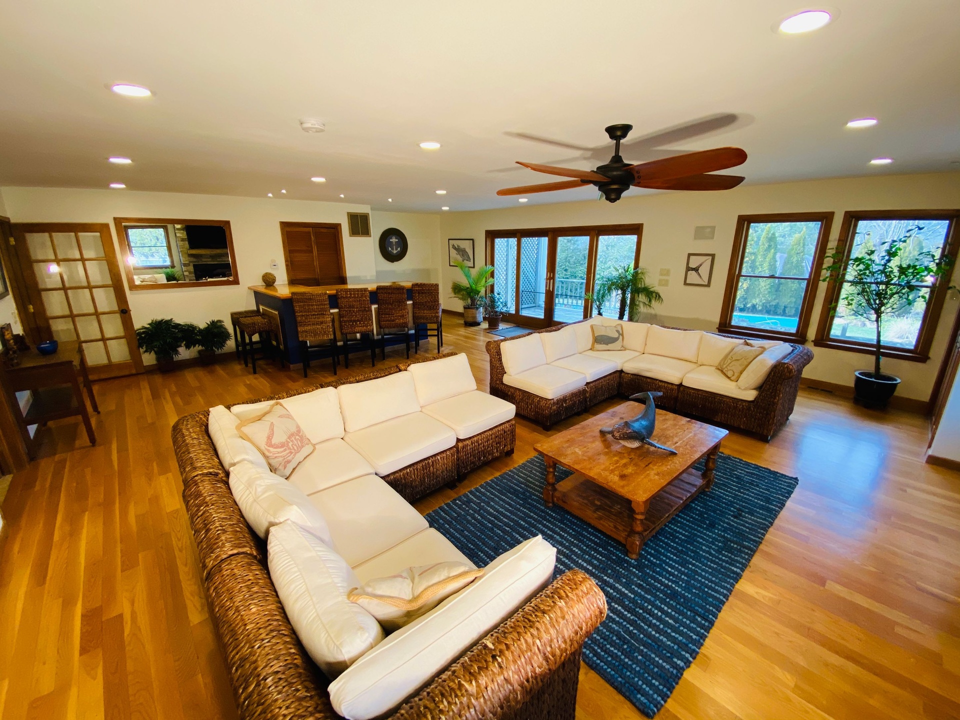 The Kitchen has a Large open concept with natural granite countertops, 2 Stainless wall ovens, Stainless refrigerator, Large center island, Breakfast seating at countertop, and Natural gas stainless 5 burner stove. There are built in speaker system in common areas and first floor central vacuum. The Built in early 1960s renovated in 1994 and 2006. There's a Custom 44x22 ft Saltwater pool w/ 60ft lap lane a pool auto vac system and a high efficiency natural gas pool heat. Wooden decks with outdoor hot/cold shower. Multi- car pea gravel stone driveway lined with Belgian block secluded rear property stone driveway. The property has a small fish pond with ornamental gardens natural privacy barriers with a outdoor sprinkler system. The best part is it's a short walk to the village and south shore beaches! Inground Pool coming summer 2025