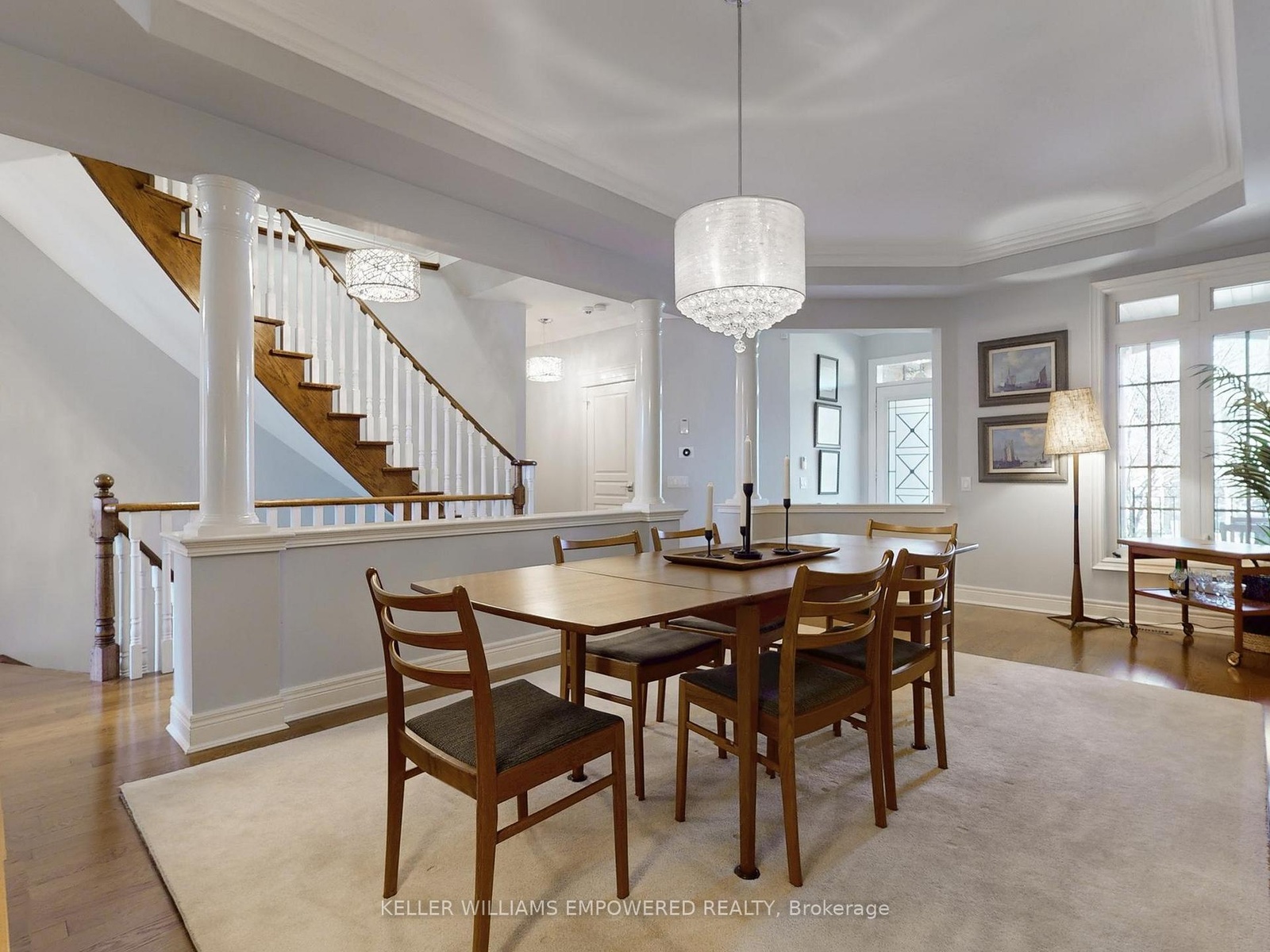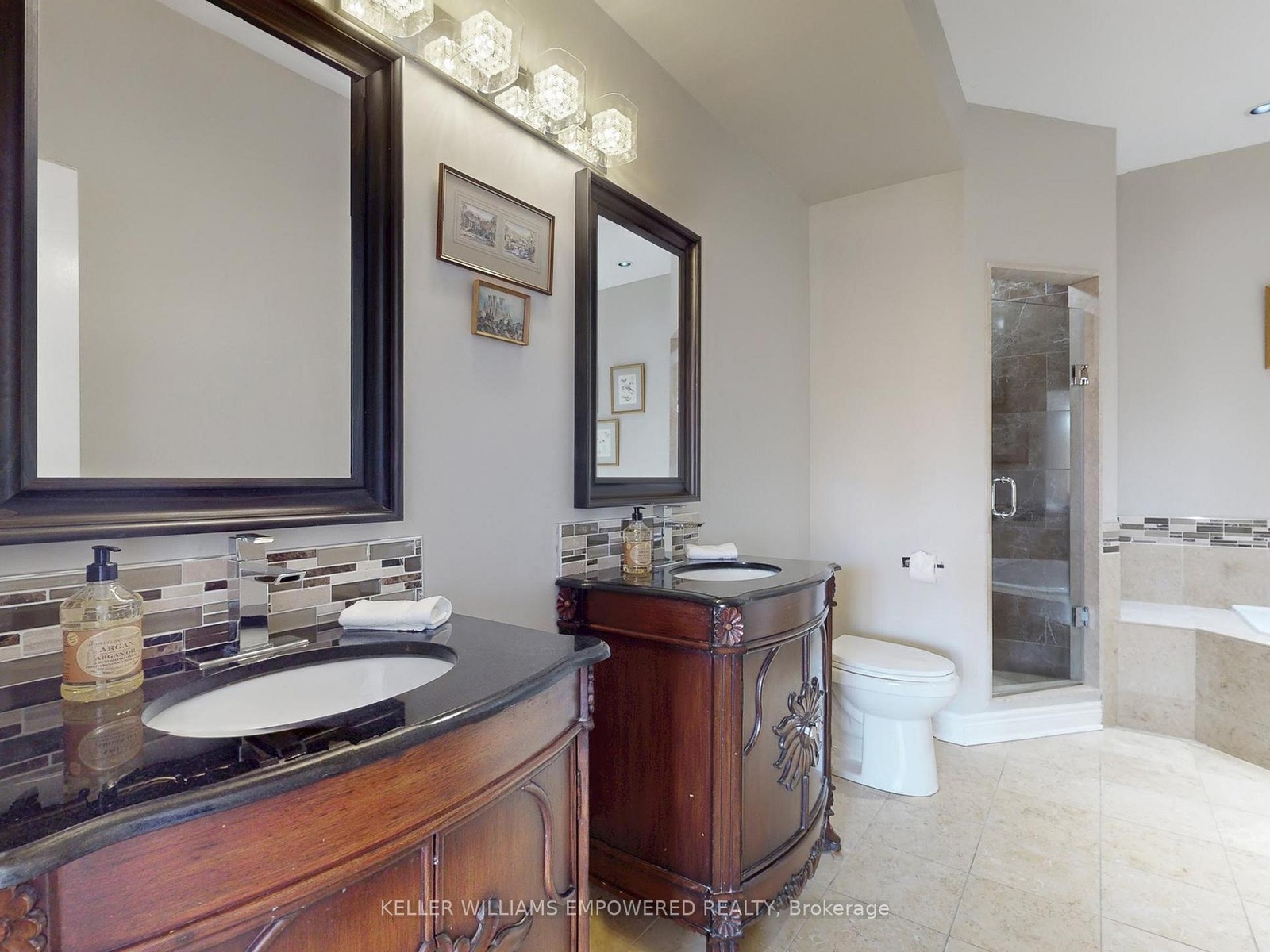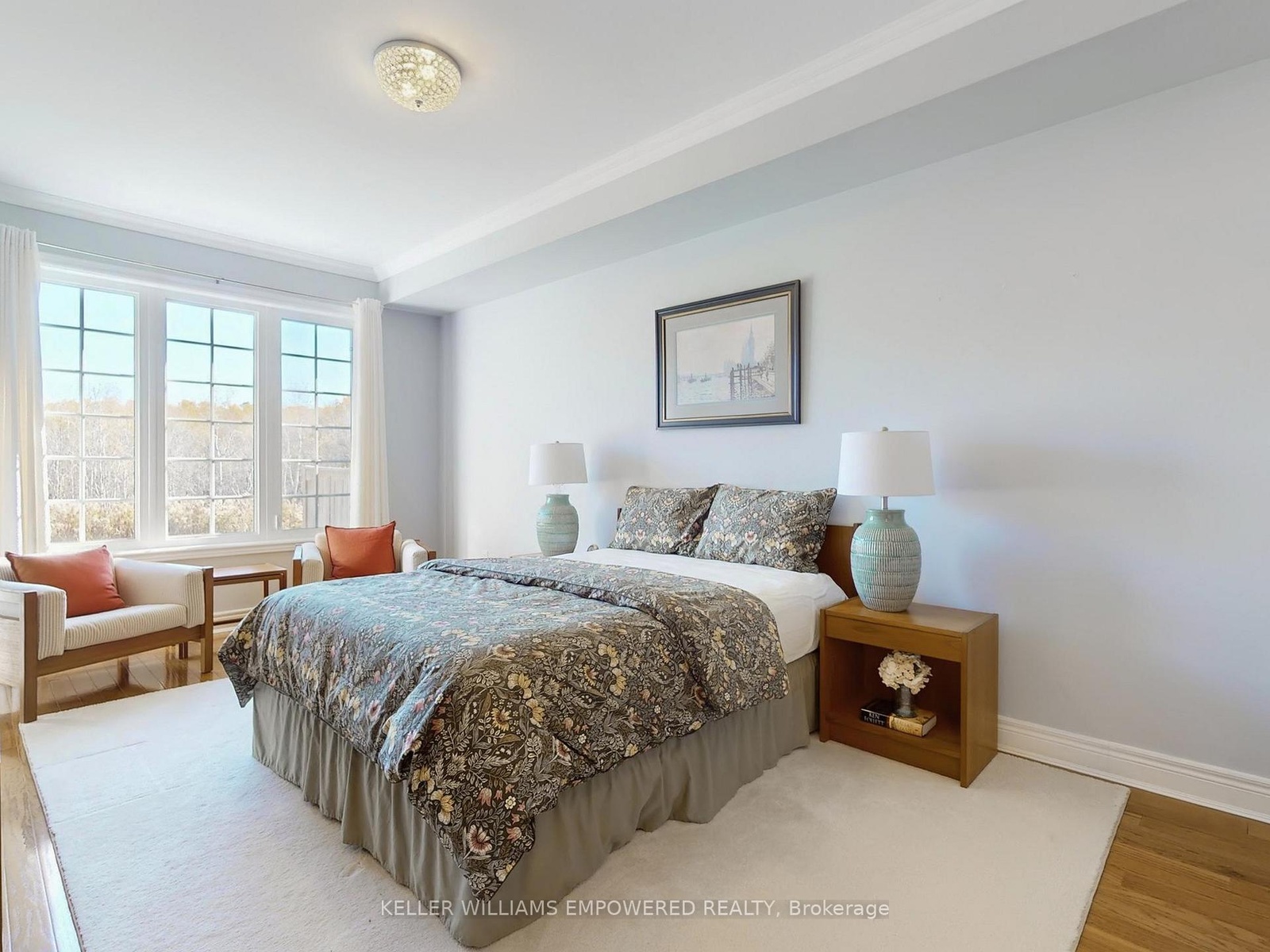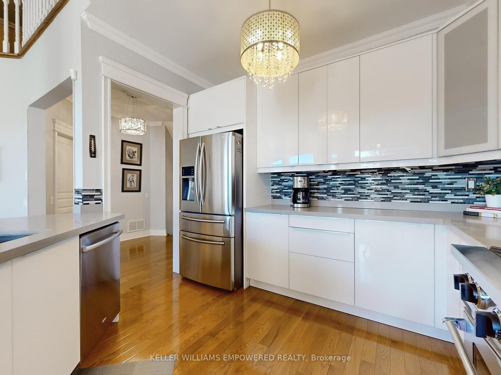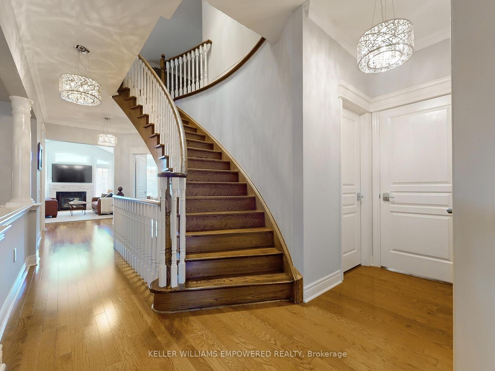 Tucked away in a gated community backing onto serene, forested views! Elegance, comfort, and logistical ease blended into 2,318 sq. ft. of above-ground living space with finished lower level. A charming interlocking driveway, with space for two cars, leads to a spacious front porch-perfect for morning coffees or an evening beverage. Step inside to a grand double-door entry and spacious foyer highlighted by a stunning stone accent wall. The open-concept living area boasts cathedral 17-foot ceilings, a stone feature gas fireplace, oversized windows with southeastern views filling the space with natural light. Overlooking the living room is a stylish kitchen complete with stone countertops, stainless-steel appliances, a centre island with breakfast seating, and a bright eating area with a walk-out to the backyard deck. The dining room with crown moldings is the perfect opportunity to host large gatherings and intimate dinners. The main floor features the spacious primary bedroom flooded with natural light, 5-piece ensuite bathroom retreat, and walk-in closet for logistical ease. Upstairs, you are greeted by an open area that can be transformed into a space that suits your lifestyle as an office space or convert to a fourth bedroom with its own ensuite bathroom. The second and third bedrooms offer plenty of natural light and both share a 4-piece ensuite bathroom. The fully finished lower level can be utilized in a wide variety of ways, offering potential for recreation, games, and office space. This home is the perfect spot in Aurora for tranquility, offering a multitude of amenities within a 10-minute drive, and only 20 minutes within shops and restaurants in the neighbouring areas of Richmond Hill, Newmarket, and King City.