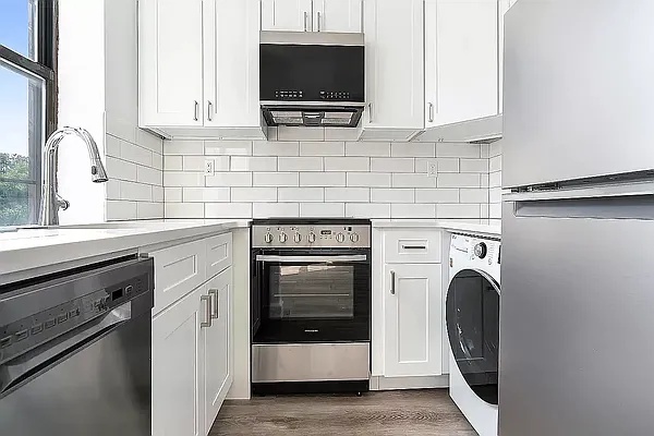 Step inside to discover a home that has been thoughtfully renovated with contemporary living in mind. The kitchen is a chef’s dream, outfitted with brand-new stainless steel appliances including a dishwasher, microwave, and a convenient washer/dryer. The custom cabinetry, elegant stone countertops, and crisp white subway tiles add a touch of sophistication and style to the space.