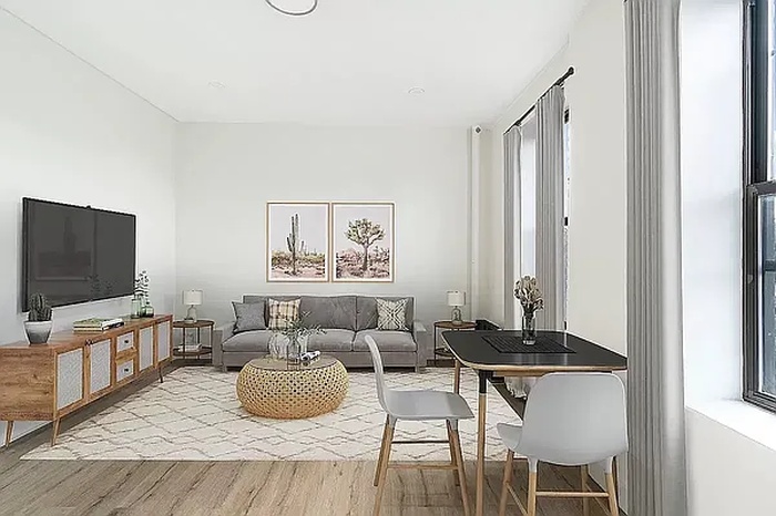The spacious living room is bathed in natural light, thanks to its oversized windows that offer views of the surrounding neighborhood and the park. It’s the perfect spot to relax or entertain friends and family.