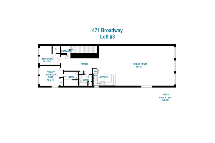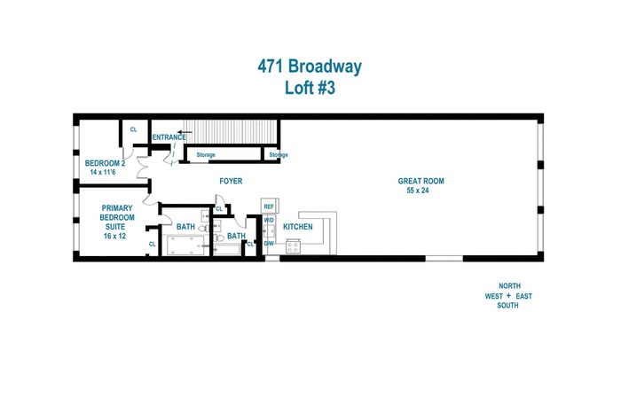 In the heart of the world renowned and most coveted SoHo, this oversized 2-bedroom, 2-bathroom loft offers nearly 2,500 square feet of interior space - including an impressive 55-foot living and dining expanse with five oversized windows facing east and south.