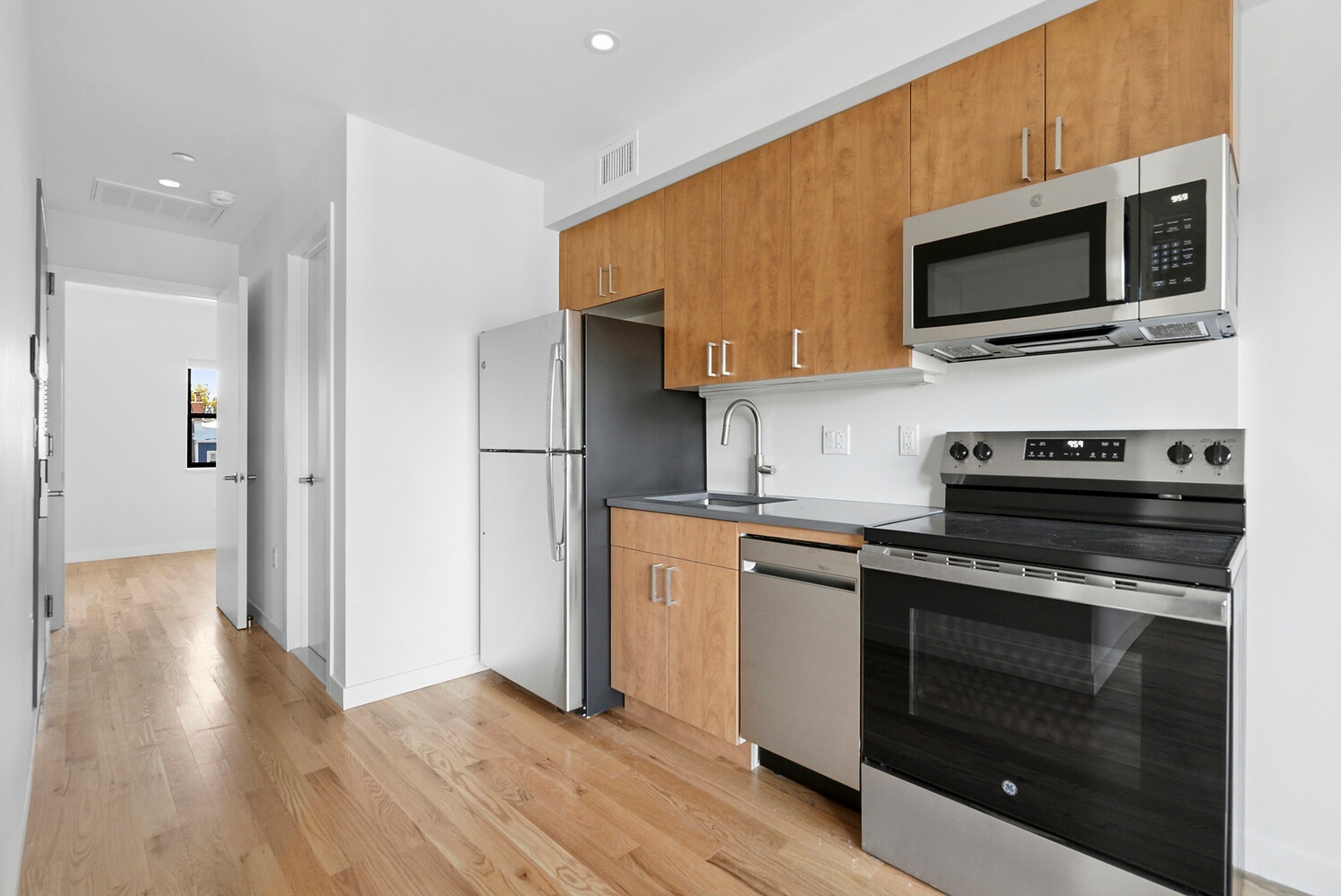 This newly finished one-bedroom, one-bath home welcomes you with an airy, open-concept layout featuring oversized windows, wide-plank flooring, and a seamless flow from living to dining. The modern kitchen is appointed with sleek GE stainless steel appliances-including a dishwasher-and complemented by an in-unit washer and dryer for everyday ease.