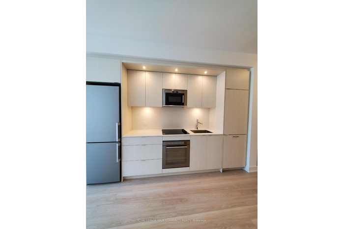 Welcome to Auberge! Built by Tridel, less than 2 years ago, enjoy luxurious living with five-star building amenities including a 24-hour concierge, "State of the Art" fitness centre, yoga & spin studio, grand terrace with gorgeous outdoor pool, lounge chairs, private cabanas, fire tables, BBQ area, doggy park, elegant party room & much more! The 1+1 bedroom suite offers 9ft ceilings, floor to ceiling windows, and a large balcony. The modern kitchen boasts fully integrated top of the line energy efficient modern appliances, granite countertops, undermount sink, under-cabinet lighting, and plenty of storage to keep everything in its place. Quality laminate floors run throughout, adding warmth and style. The versatile den is ideal for a home office or quiet study, while the bedroom features a large closet to keep you perfectly organized. In-suite laundry adds everyday convenience. One parking and one locker included in the rent! Internet included in the rent! Tenant pays for hydro and water. Location can't be beat being minutes from the DVP, 401, Crosstown LRT, and TTC transit! Close to all amenities, restaurants, and groceries.