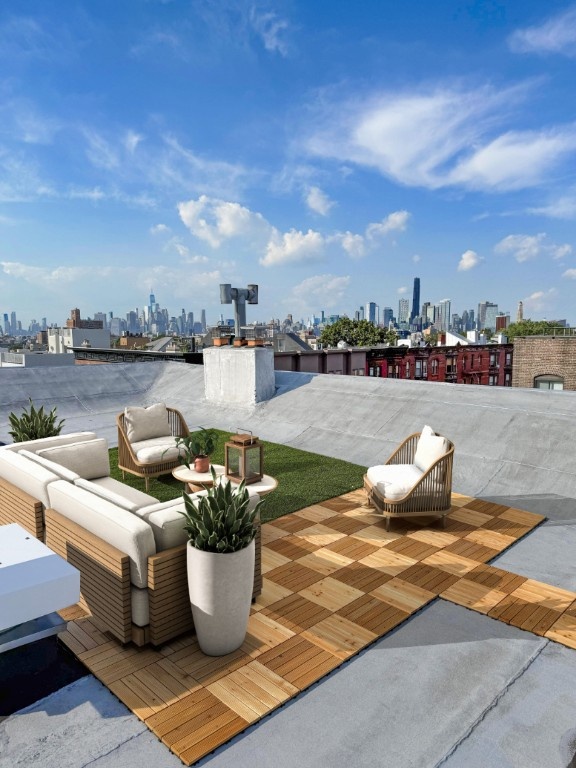 Half footprint roof-rights with an established deck/ turf entertaining space with views of the Statue of Liberty and Manhattan.