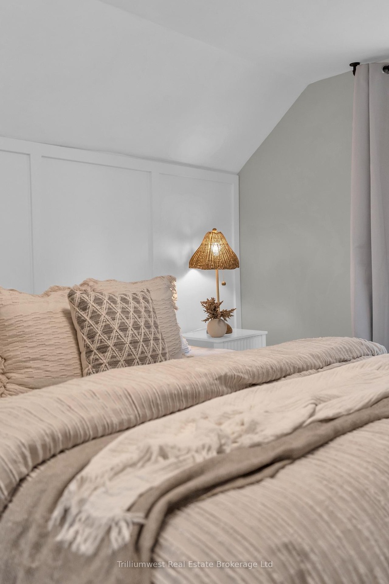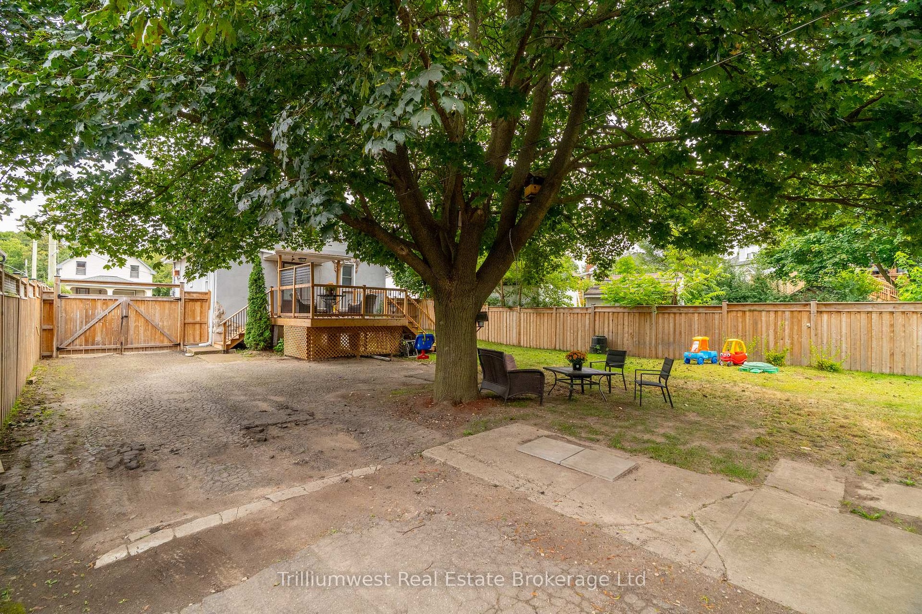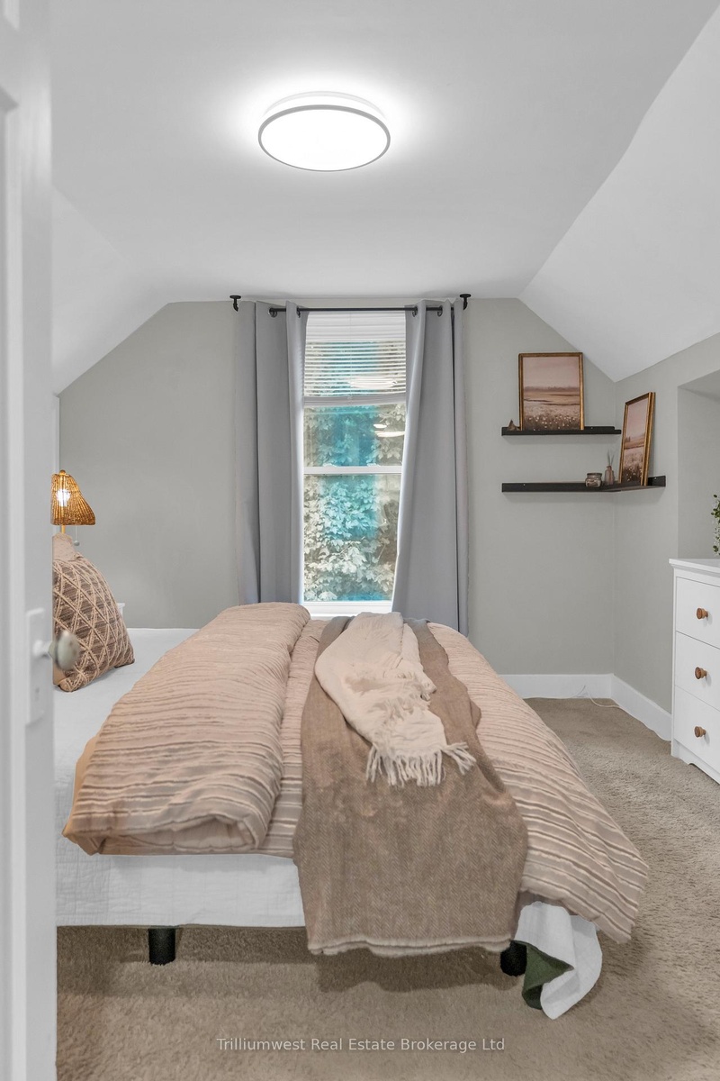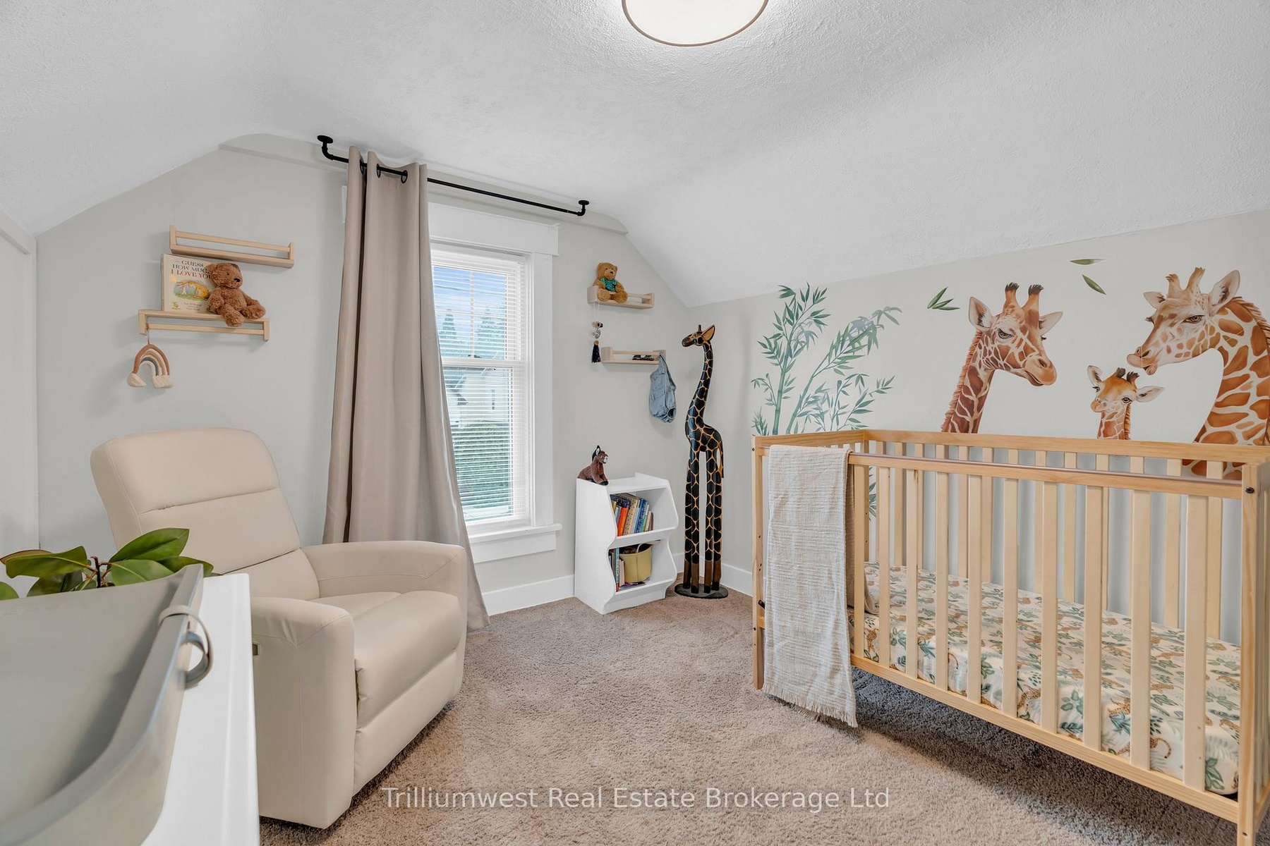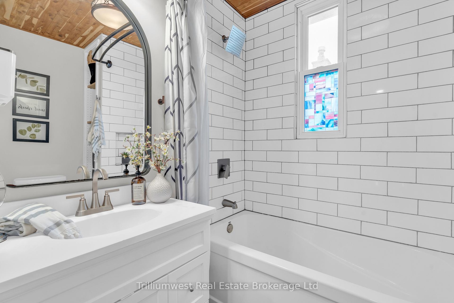 This beautifully updated cottage-style home in desirable East Galt seamlessly blends timeless character with contemporary finishes. The inviting exterior showcases modern stucco paired with expertly crafted stonework, setting the tone for what awaits inside. Step onto the spacious covered front porch and enter a home where every detail has been thoughtfully updated. The stunning fireplace in the front room echoes the homes exterior, featuring a unique stucco and stone façade with a vintage electric log insertadding both warmth and charm. This versatile space can serve as a formal dining area or a cozy sitting room. Elegant arched doorways and new laminate flooring lead to an open-concept living room and an updated kitchen complete with white cabinetry, stainless appliances, ample storage, under-cabinet lighting, a built-in fridge, beveled subway tile backsplash, and a Silgranit sink. Just off the kitchen, a new rear deck provides ideal space for outdoor dining and entertaining. The main floor also includes a spacious bedroom with a large window and a stunning modern farmhouse bathroom featuring a wood-accented ceiling, subway tile tub surround with dark grout, and a sleek vanity with an integrated sink. Upstairs, you'll find two additional well-appointed bedrooms with stylish accent walls and ample storage. The basementwith a separate entranceoffers potential for an in-law suite, income property, or extended living space. Situated on a generous 132-foot deep lot, the property offers parking for 8+ vehicles, plus an oversized two-car garage/workshop with electricalperfect for hobbyists or trades. The new fully fenced backyard includes a custom rolling gate, a new deck with privacy screens, and plenty of room for entertaining or play. Additional upgrades include newer windows, furnace, electrical, and plumbing making this home truly move-in ready. Ideally located near parks, trails, schools, and major amenities, this is East Galt living at its finest