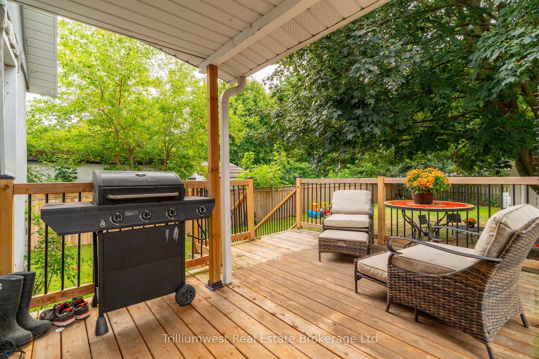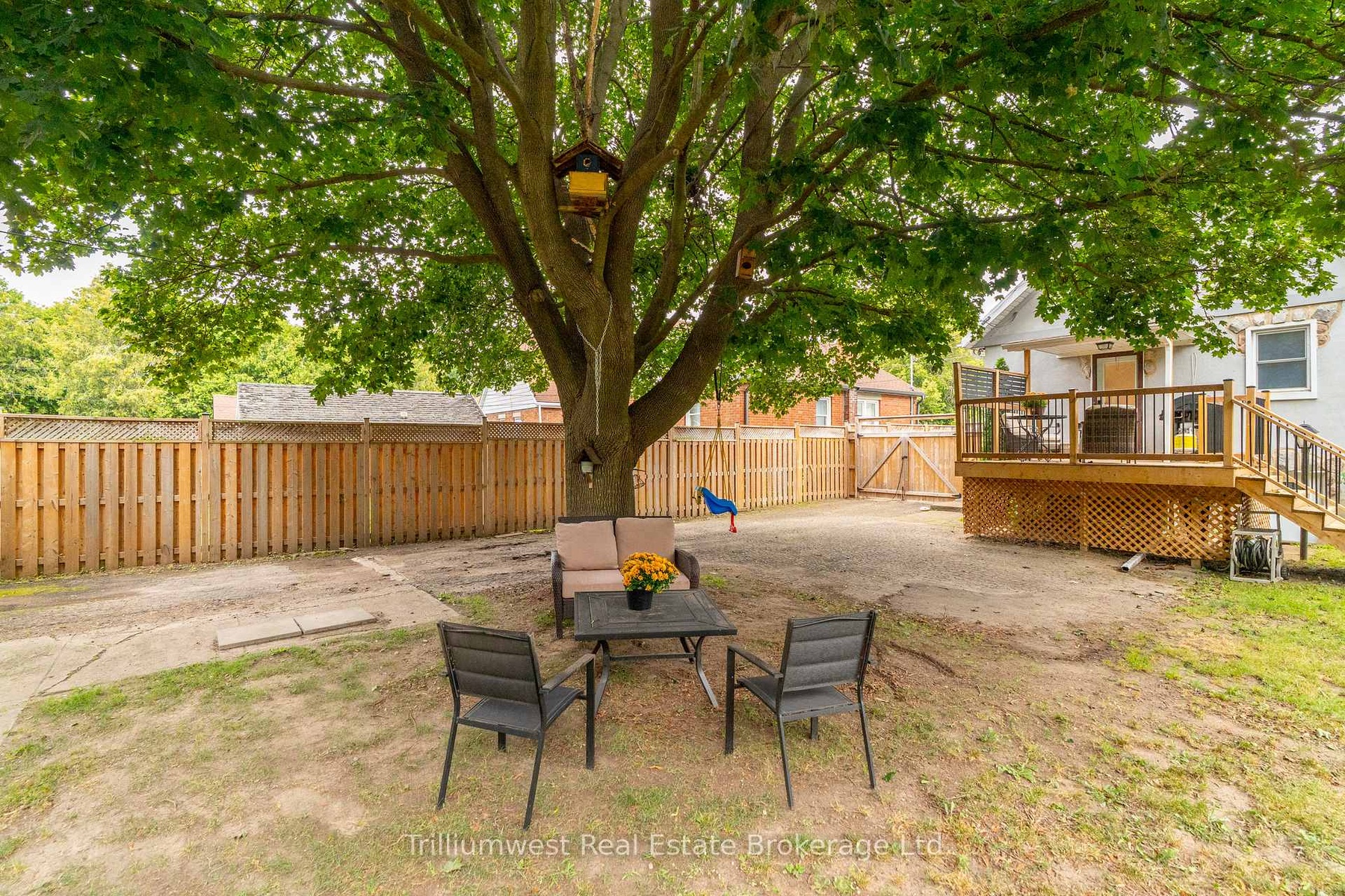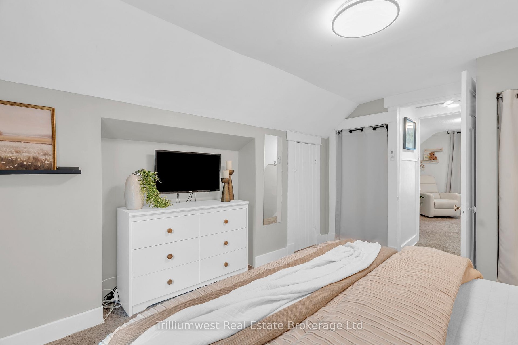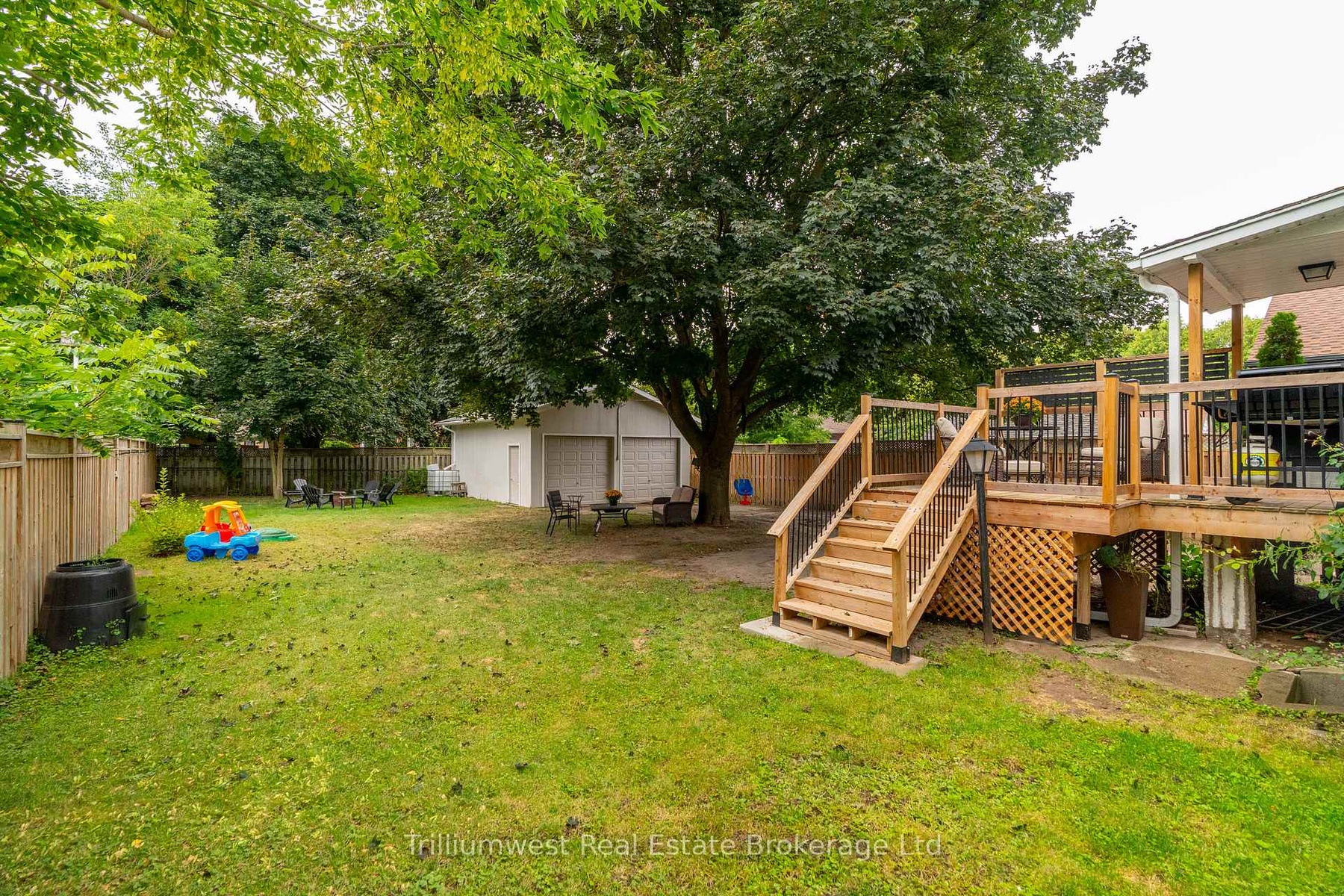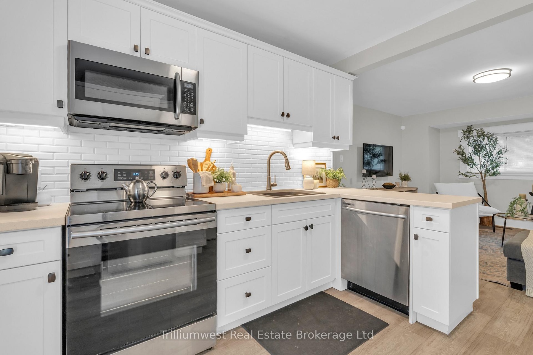 This beautifully updated cottage-style home in desirable East Galt seamlessly blends timeless character with contemporary finishes. The inviting exterior showcases modern stucco paired with expertly crafted stonework, setting the tone for what awaits inside. Step onto the spacious covered front porch and enter a home where every detail has been thoughtfully updated. The stunning fireplace in the front room echoes the homes exterior, featuring a unique stucco and stone façade with a vintage electric log insertadding both warmth and charm. This versatile space can serve as a formal dining area or a cozy sitting room. Elegant arched doorways and new laminate flooring lead to an open-concept living room and an updated kitchen complete with white cabinetry, stainless appliances, ample storage, under-cabinet lighting, a built-in fridge, beveled subway tile backsplash, and a Silgranit sink. Just off the kitchen, a new rear deck provides ideal space for outdoor dining and entertaining. The main floor also includes a spacious bedroom with a large window and a stunning modern farmhouse bathroom featuring a wood-accented ceiling, subway tile tub surround with dark grout, and a sleek vanity with an integrated sink. Upstairs, you'll find two additional well-appointed bedrooms with stylish accent walls and ample storage. The basementwith a separate entranceoffers potential for an in-law suite, income property, or extended living space. Situated on a generous 132-foot deep lot, the property offers parking for 8+ vehicles, plus an oversized two-car garage/workshop with electricalperfect for hobbyists or trades. The new fully fenced backyard includes a custom rolling gate, a new deck with privacy screens, and plenty of room for entertaining or play. Additional upgrades include newer windows, furnace, electrical, and plumbing making this home truly move-in ready. Ideally located near parks, trails, schools, and major amenities, this is East Galt living at its finest