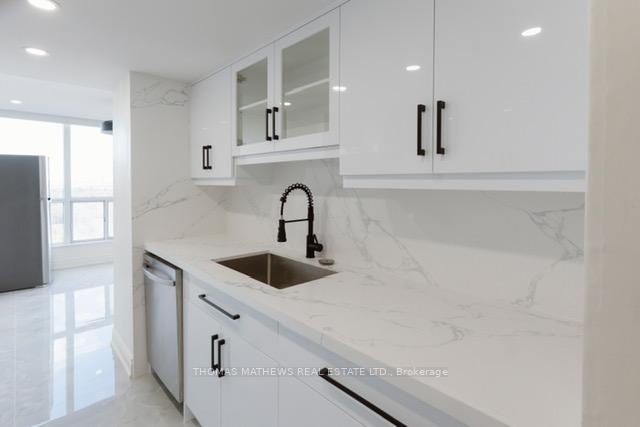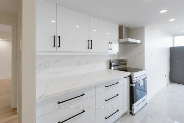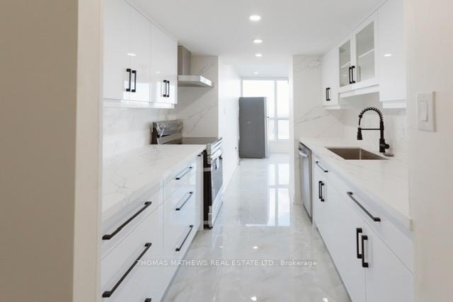 Welcome to this bright and spacious 2-bedroom, 2-bathroom condominium in one of West Toronto's most sought-after buildings. Recently renovated from top to bottom with over $50,000 in upgrades, this home offers a fresh, modern living experience with timeless appeal.The open and functional layout is complemented by new smooth ceilings, pot lighting, and vinyl flooring. The kitchen features brand-new stainless steel appliances, sleek cabinetry, quartz countertops, premium ceramic tiles and a modern sink and faucet. Both bathrooms have been updated with new tiles, fixtures, and a new contemporary standing shower in the main bathroom. Custom-built shelving in the foyer, bedrooms, and washroom provides excellent storage and organization.Enjoy abundant natural light and unobstructed views of the ravine from almost every room - a peaceful setting that's rare to find in the city.This well-managed building includes all utilities (hydro, heat, and water) in the maintenance fee, as well as 1 parking space and 1 locker. Amenities include 24-hour security, indoor and outdoor swimming pools, fitness centre, game and party rooms, squash and tennis courts, and more!