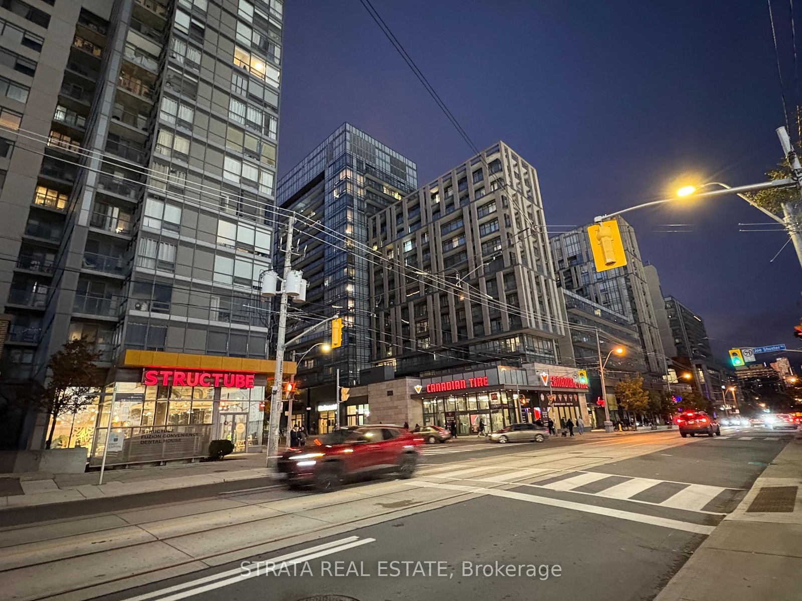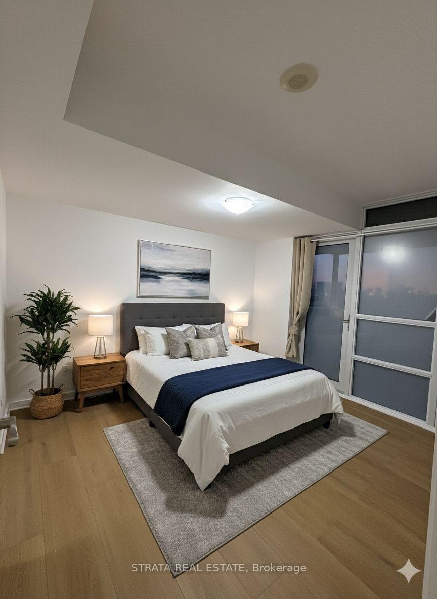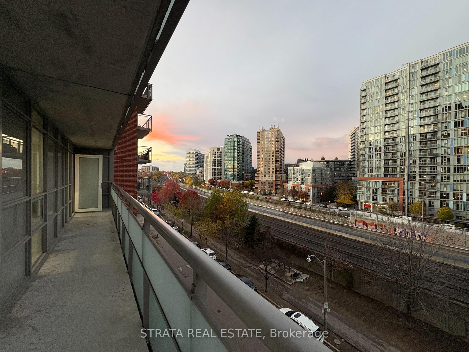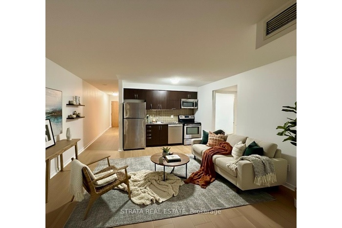 Freshly painted with newly installed laminate floors, this stylish 2-bedroom, 1-bath suite offers open-concept living with a modern kitchen featuring stainless steel appliances and granite countertops. Floor-to-ceiling windows fill the space with natural light and lead to a wrap-around balcony with city views. Steps to Queen & King streetcars, the Drake Hotel, Gladstone, FreshCo, and Metro. Bedroom and the Living room pictures are virtually staged.