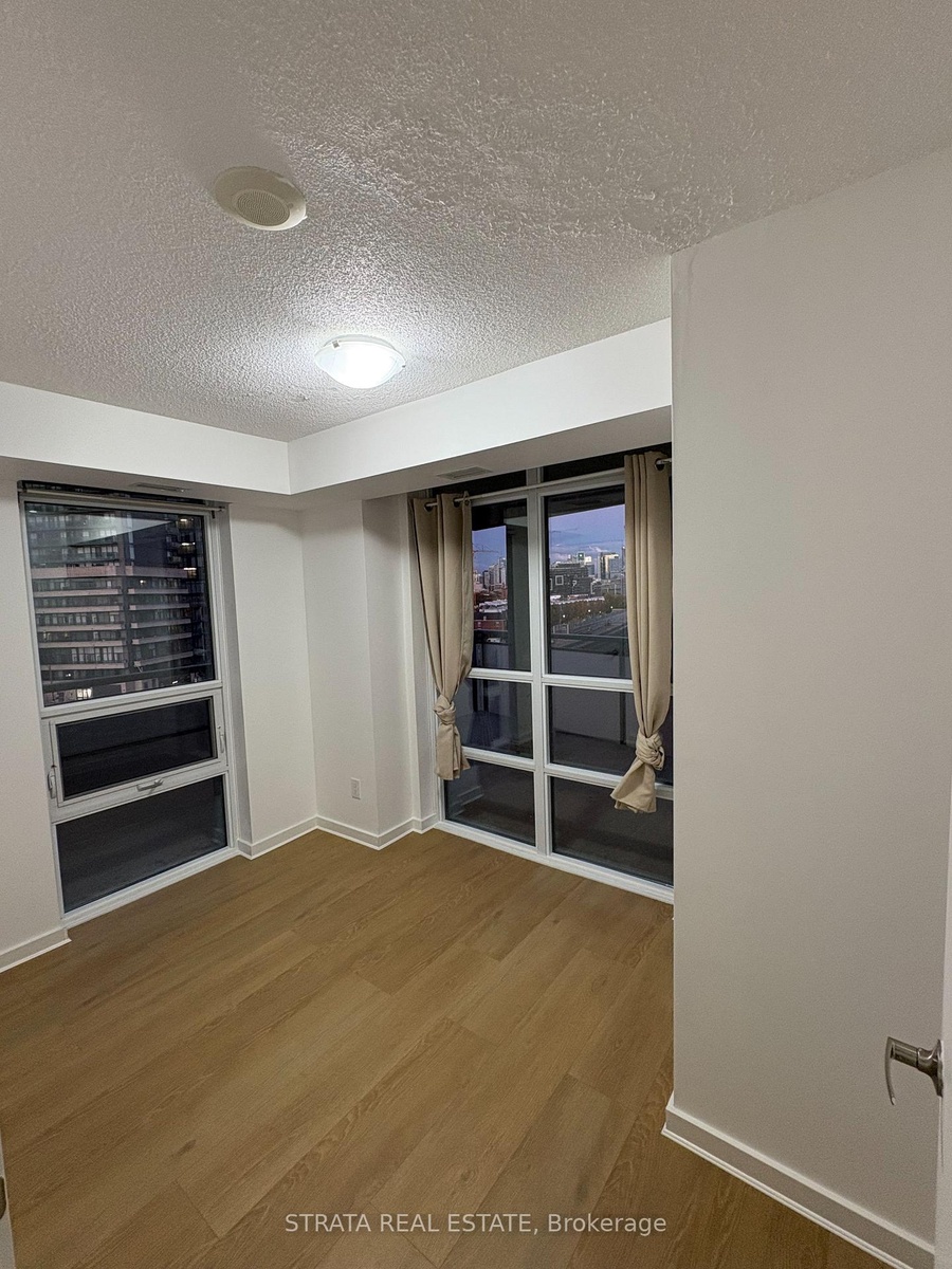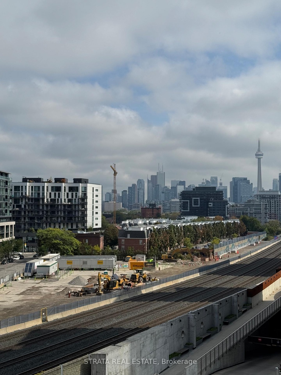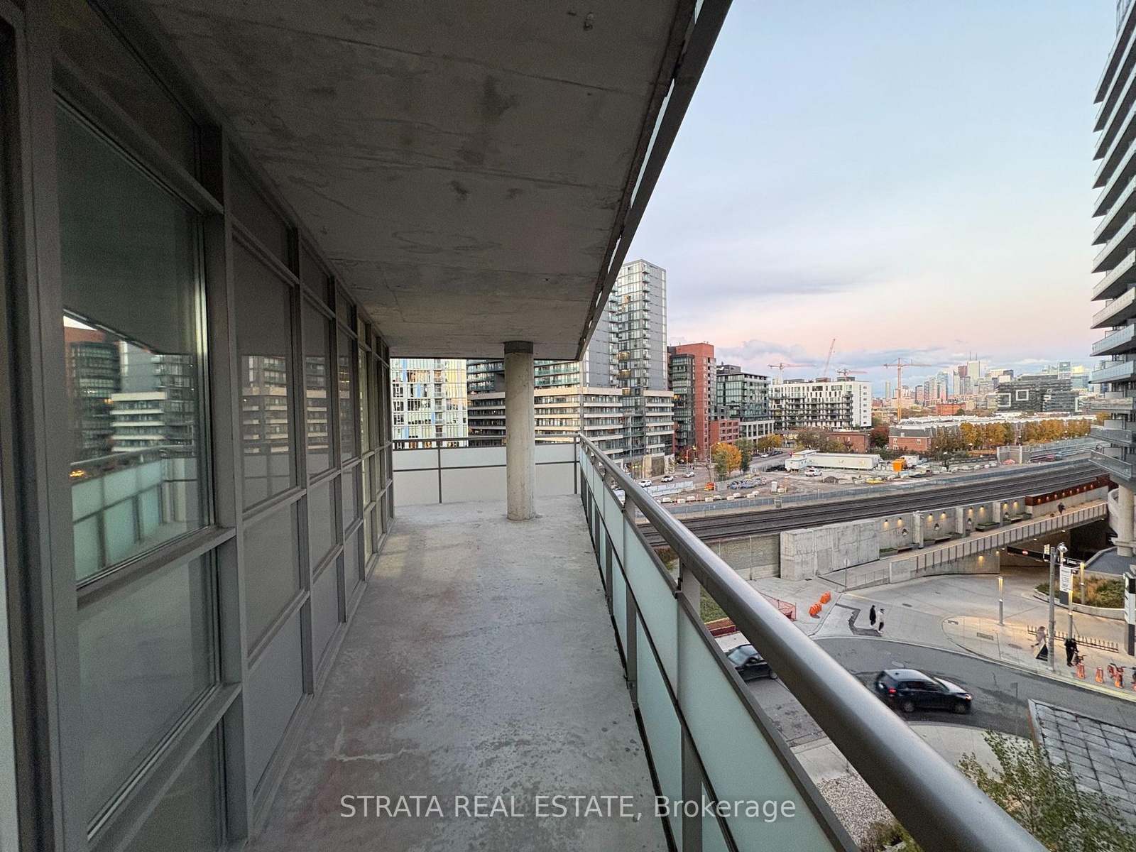Freshly painted with newly installed laminate floors, this stylish 2-bedroom, 1-bath suite offers open-concept living with a modern kitchen featuring stainless steel appliances and granite countertops. Floor-to-ceiling windows fill the space with natural light and lead to a wrap-around balcony with city views. Steps to Queen & King streetcars, the Drake Hotel, Gladstone, FreshCo, and Metro. Bedroom and the Living room pictures are virtually staged.
