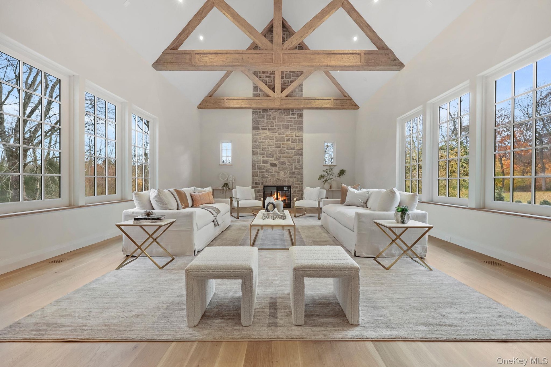 Tucked away on a quiet cul-de-sac, 2 Barry Court is more than a home — it’s a lifestyle defined by natural beauty, refined design, and everyday luxury. Set on four manicured acres surrounded by mature trees and open sky, this modern estate has been completely reimagined by architect Teo Siguenza and meticulously rebuilt by Grasso Development Corporation. The result is an 8,000 sq ft residence that blends classic character with the comforts of modern living — featuring five spacious bedrooms, six full and one half baths, and graciously scaled interiors filled with light and fine finishes. From the moment you enter the grand two-story foyer, you’re welcomed into a home designed for connection and serenity. The custom chef’s kitchen flows into a warm family room with vaulted ceiling and stone fireplace. An expansive bluestone terrace invites seamless indoor-outdoor living. Days unfold around the brand-new 20’ x 40’ gunite pool by Wagner Pools, or in the peaceful privacy of the lush backyard. Evenings can be spent fireside — with two masonry wood-burning fireplaces in the main living areas and a gas fireplace in the primary suite, which also features a sitting area, dual dressing rooms and spa-like baths. Additional highlights include a guest suite on the main floor, a fully finished lower level with office, gym or recreation space, a four-car garage, and a new slate roof for enduring style. Located just minutes from the charm of Bedford Village, this estate is a rare opportunity to embrace the best of Bedford — where elegance, comfort, and nature come together in perfect harmony.