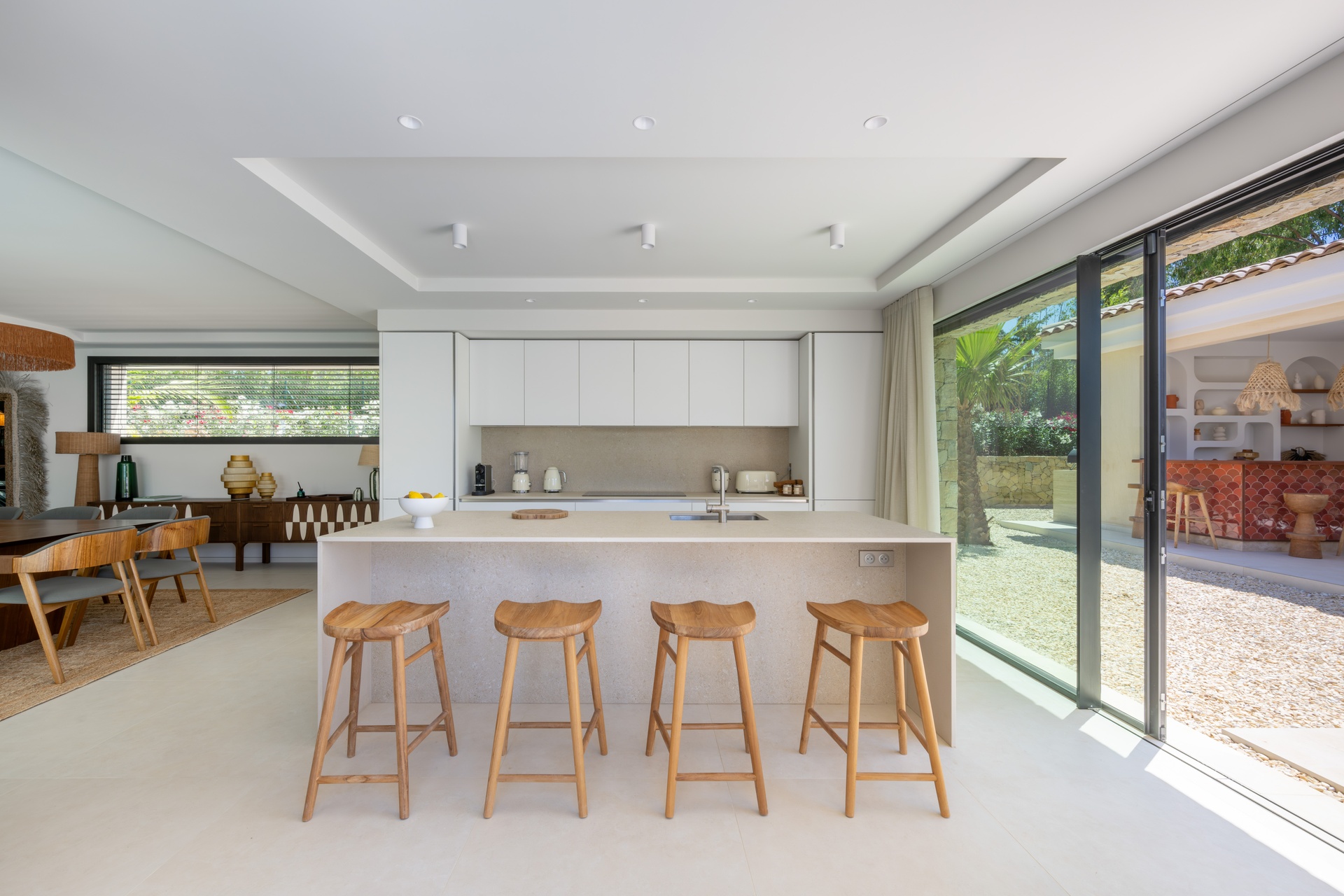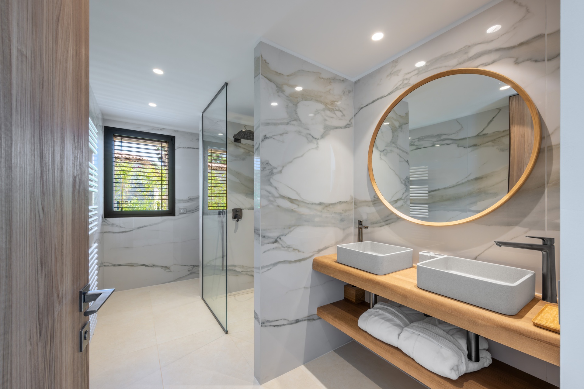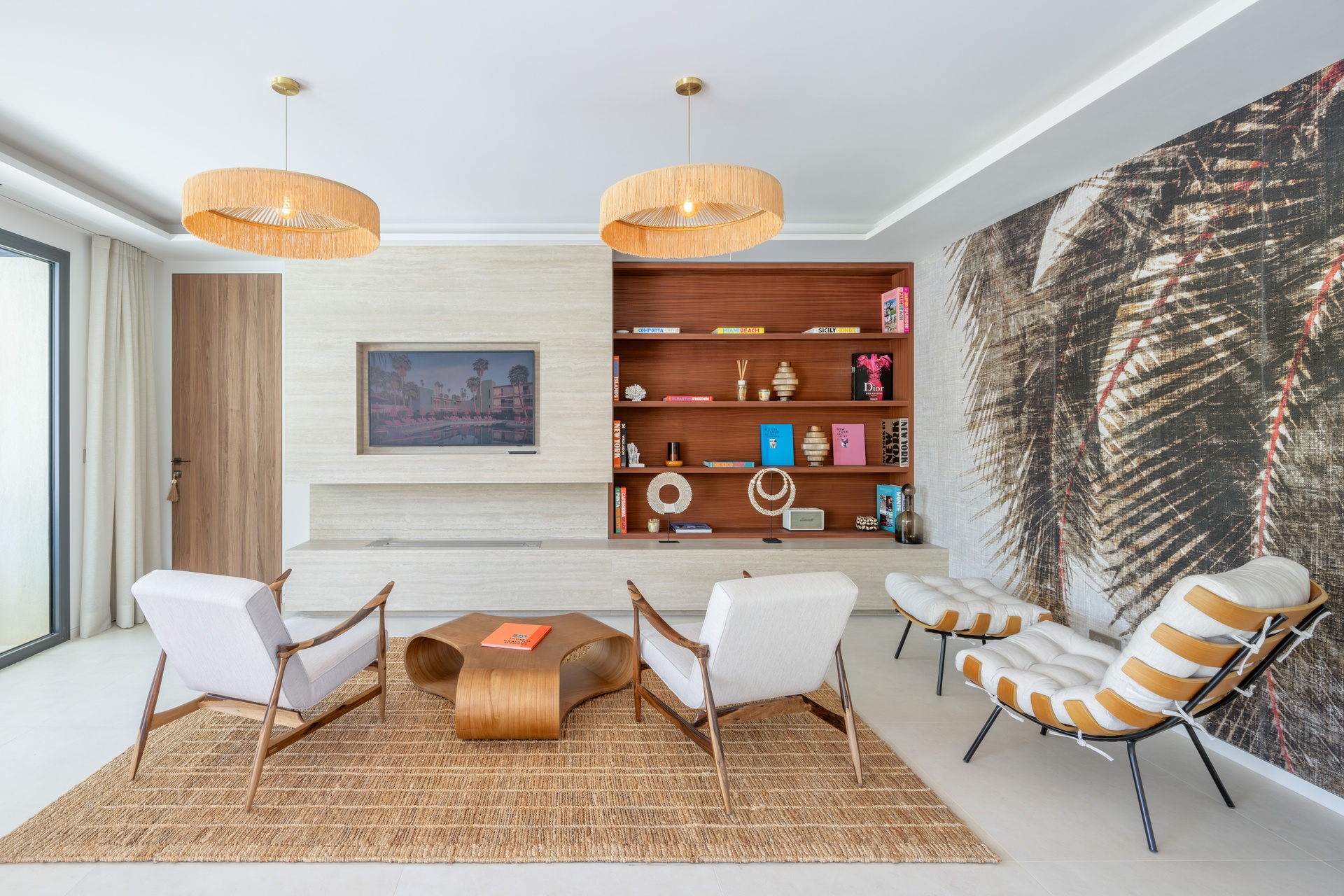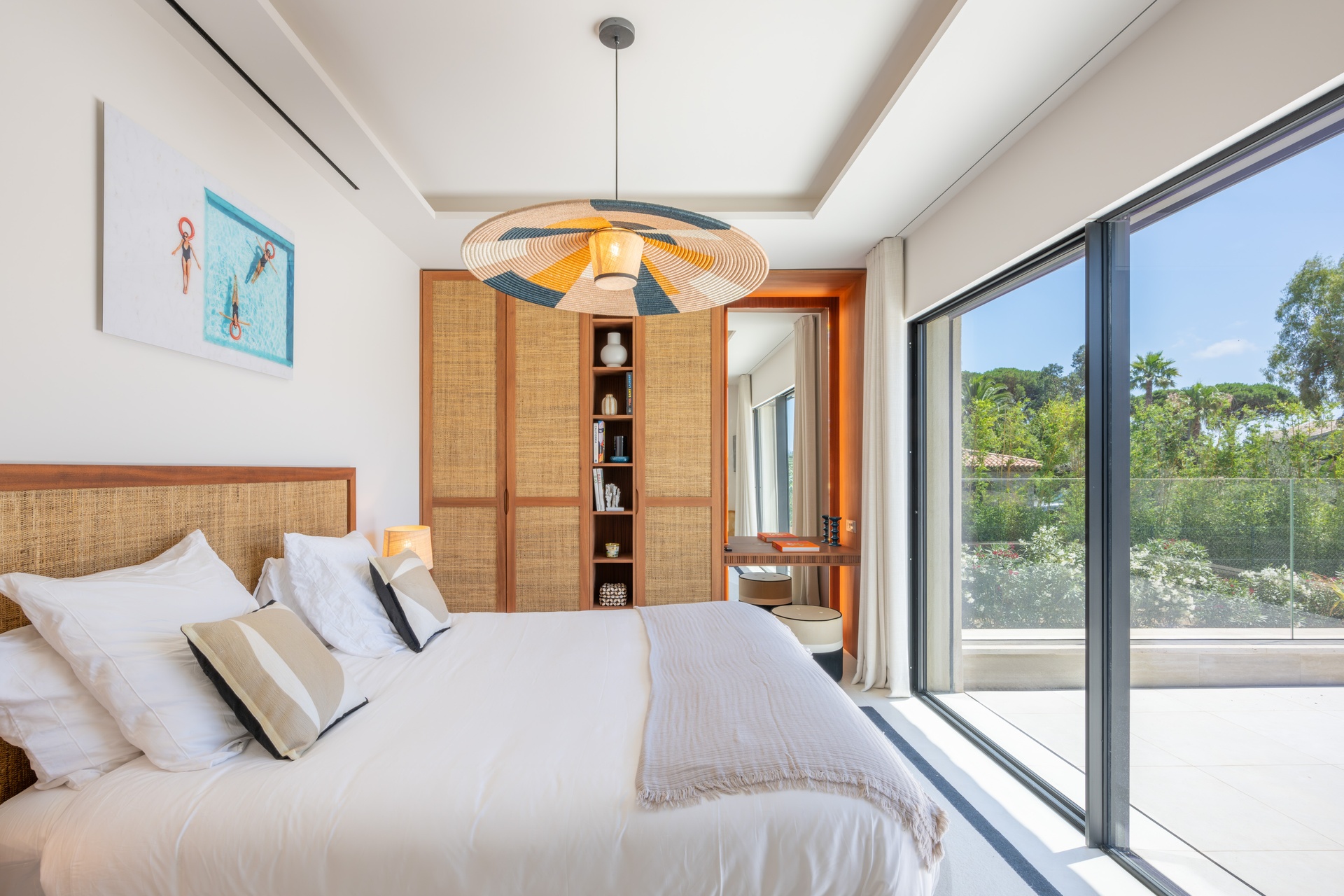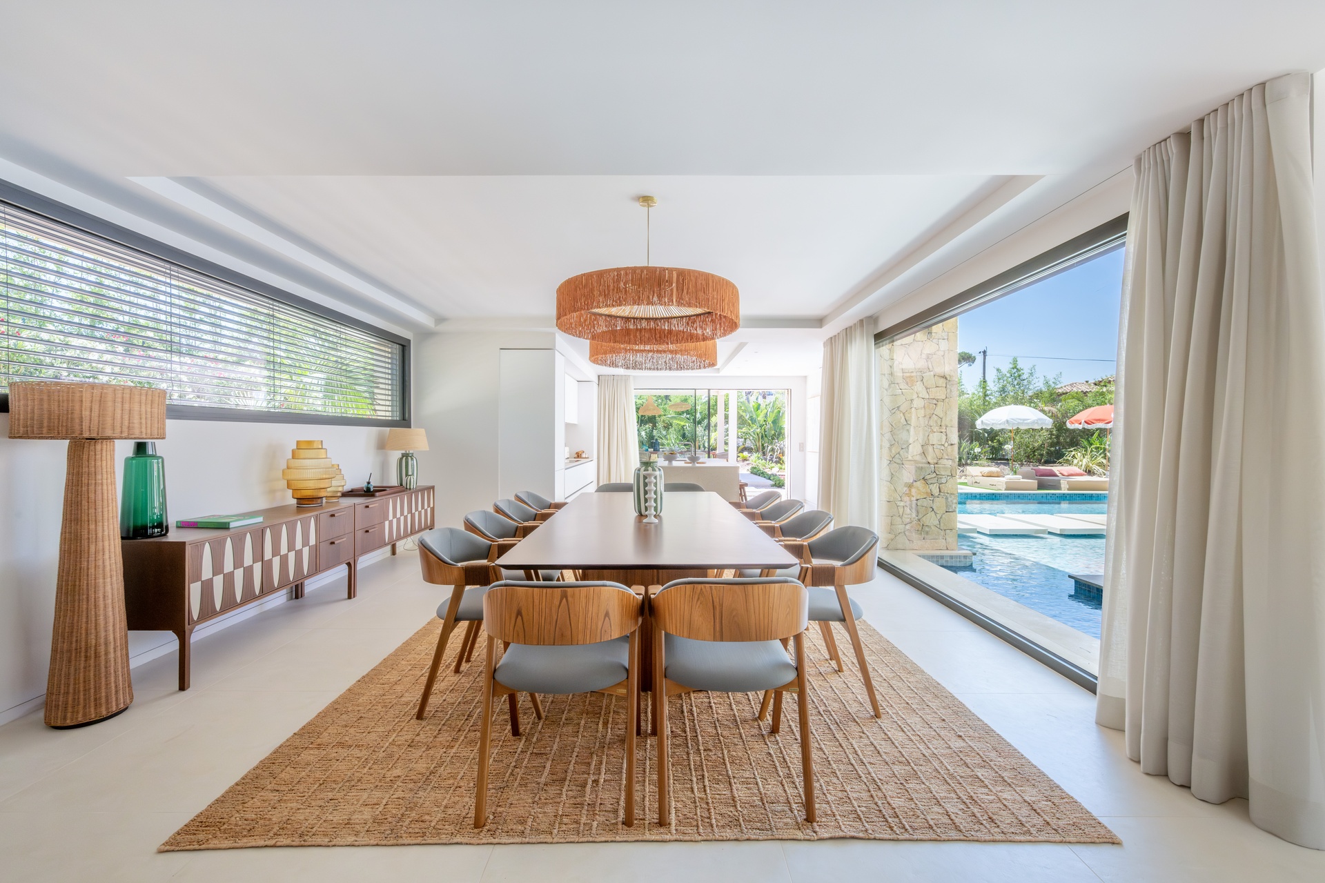 From the moment you enter, the architecture is reminiscent of a Californian villa, with its majestic palm trees and clean lines. Inside, the art-deco style reigns supreme, creating a warm, elegant ambience. The vast living room, adorned with carefully selected furnishings, opens onto the outside, where indoor-outdoor living takes on its full meaning thanks to the large picture windows. Upstairs, the bedrooms have terraces with uninterrupted views over the heated swimming pool. In the basement, a private cinema offers unrivalled entertainment.