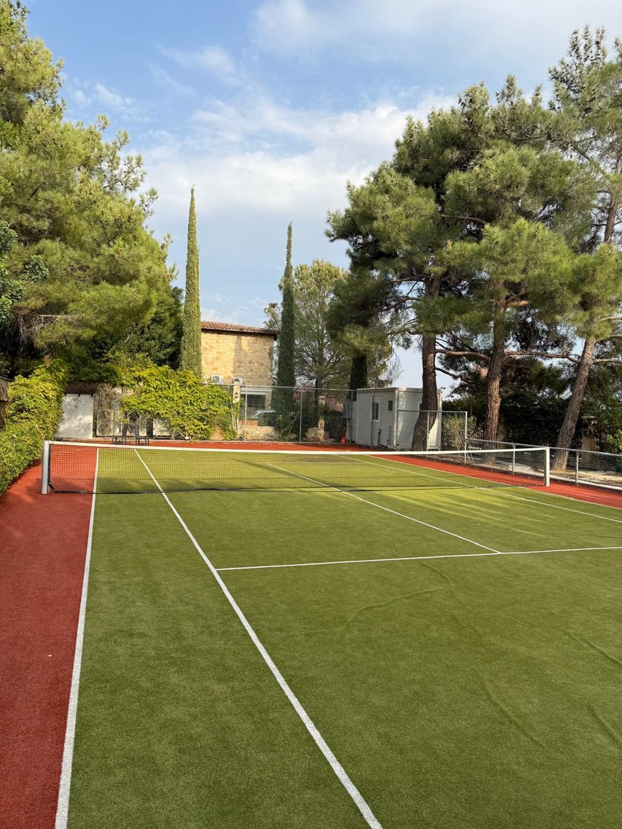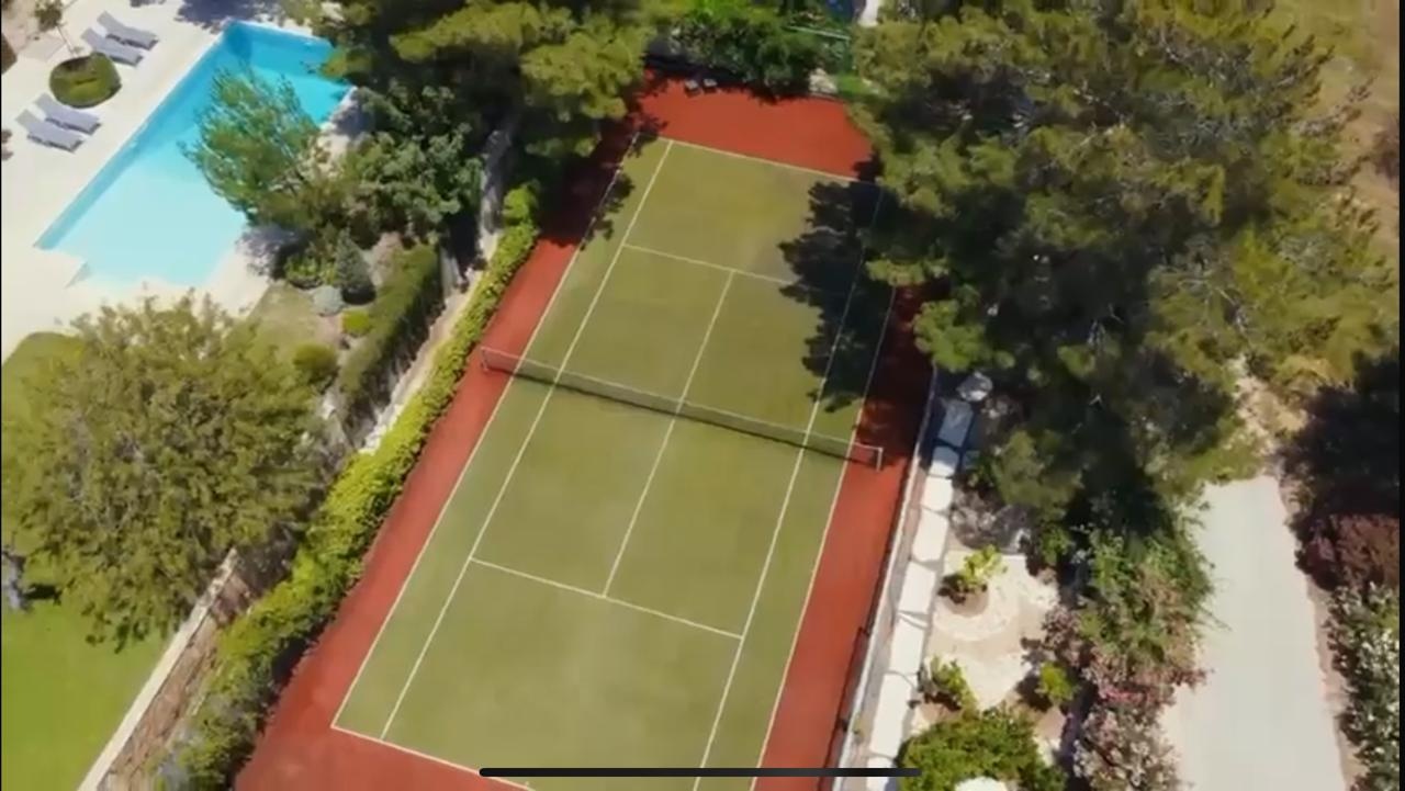 Outdoors, the property unfolds into a world of leisure — a 12m x 6m heated swimming pool (3m depth), a private tennis court, an outdoor gym and BBQ area, and three shaded verandas perfect for entertaining. A summer kitchen, outdoor shower, and automated irrigation and lighting systems complete the resort-like ambiance.
