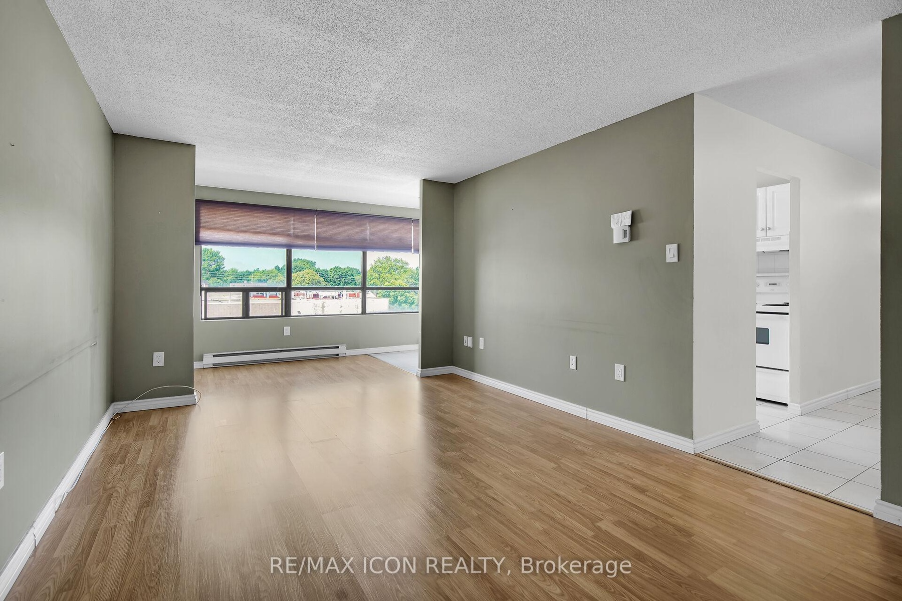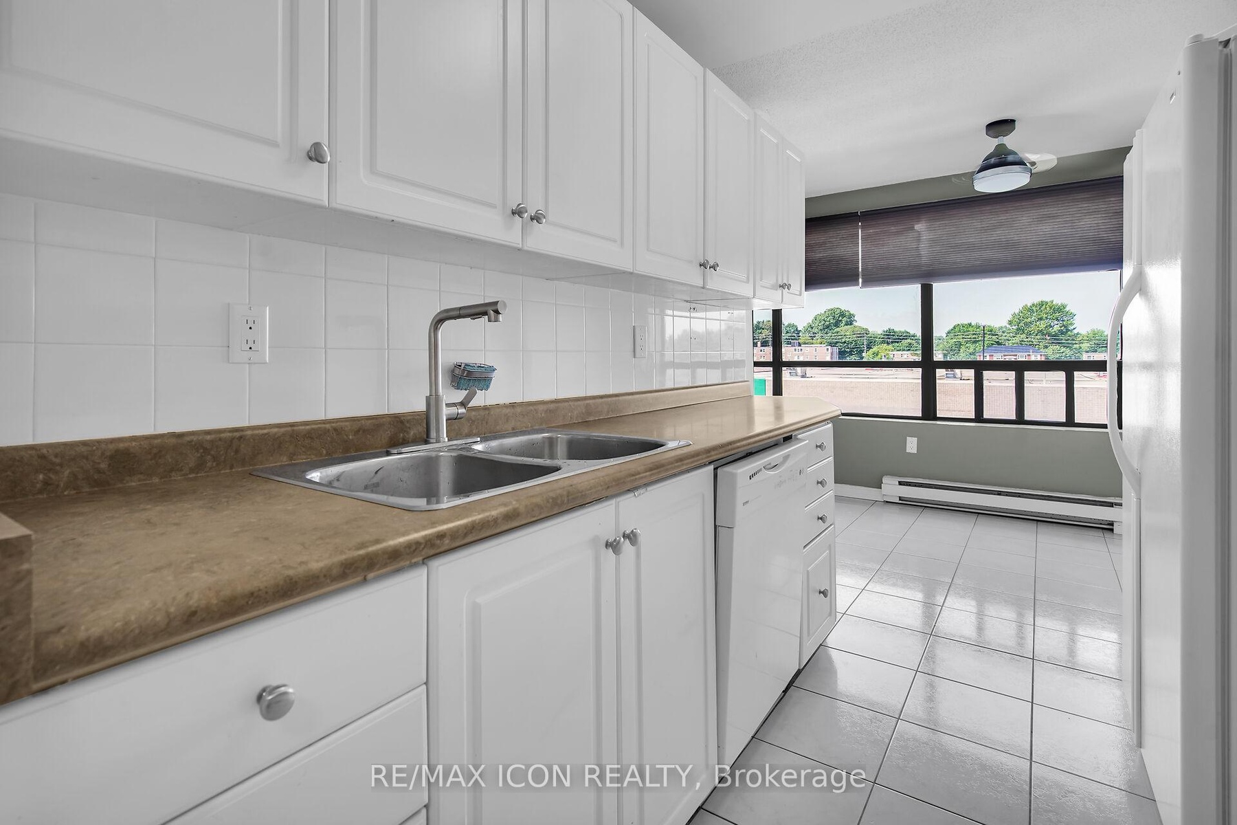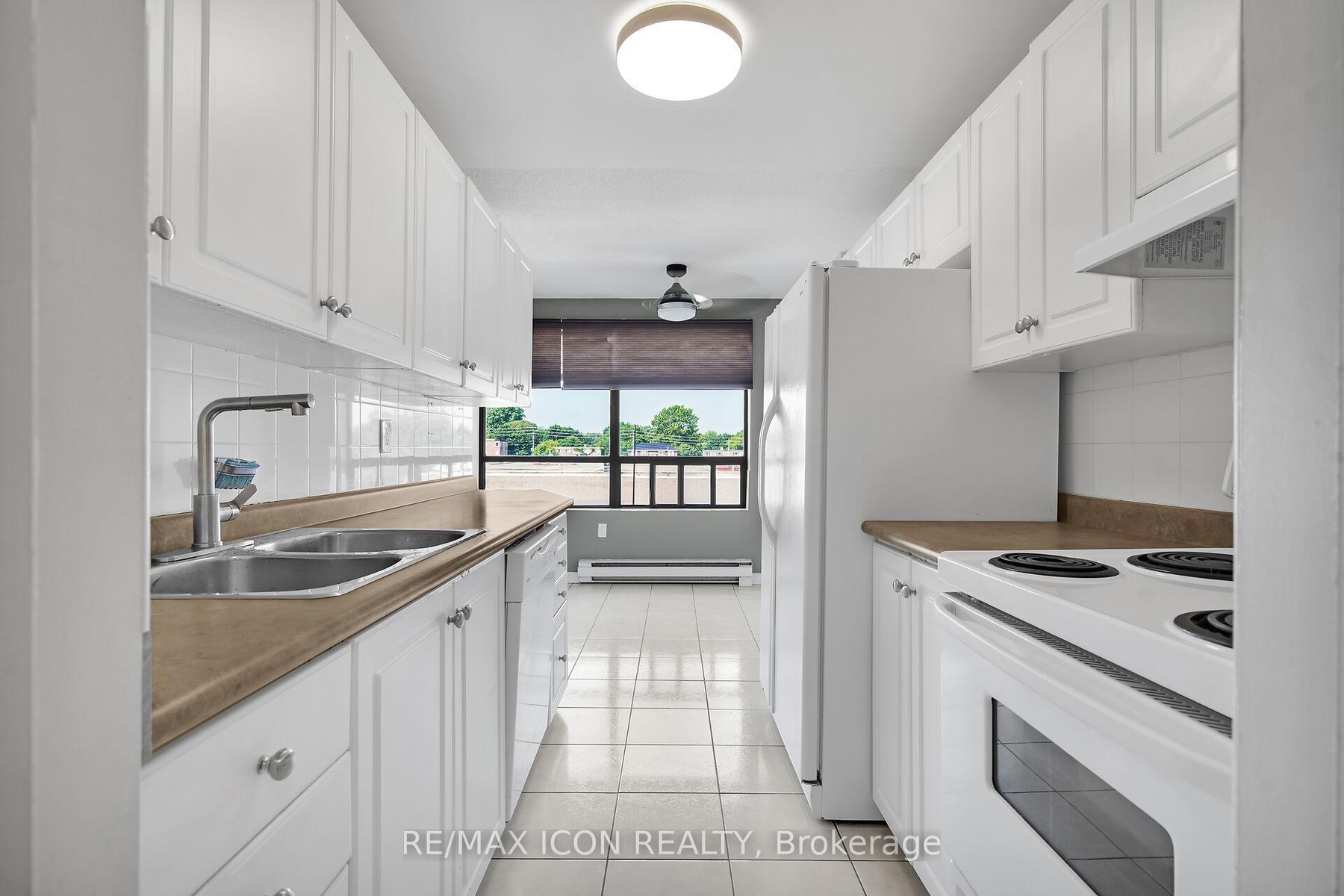 Welcome to 650 Cheapside Street, where convenience meets comfort in this bright 2-bedroom, 1-bathroom condo. Perfect for first-time buyers, downsizers, or investors, this unit offers low-maintenance living in a quiet, secure building with elevator access and plenty of natural light throughout. Step into a modern galley kitchen featuring crisp white cabinetry, ample counter space, and a double sink ideal for home cooking and entertaining. The open-concept living and dining area is filled with sunlight from large windows that offer expansive treetop views. Both bedrooms are generously sized with plenty of closet space, and the 4-piece bathroom is clean and functional. Enjoy fresh neutral tones, updated flooring, and tile work that make this home move-in ready. With assigned parking, on-site laundry, and a well-kept exterior, this condo ticks all the boxes. Located in a highly walkable area, you're just minutes to shopping, transit, Fanshawe College, parks, and all that London has to offer.