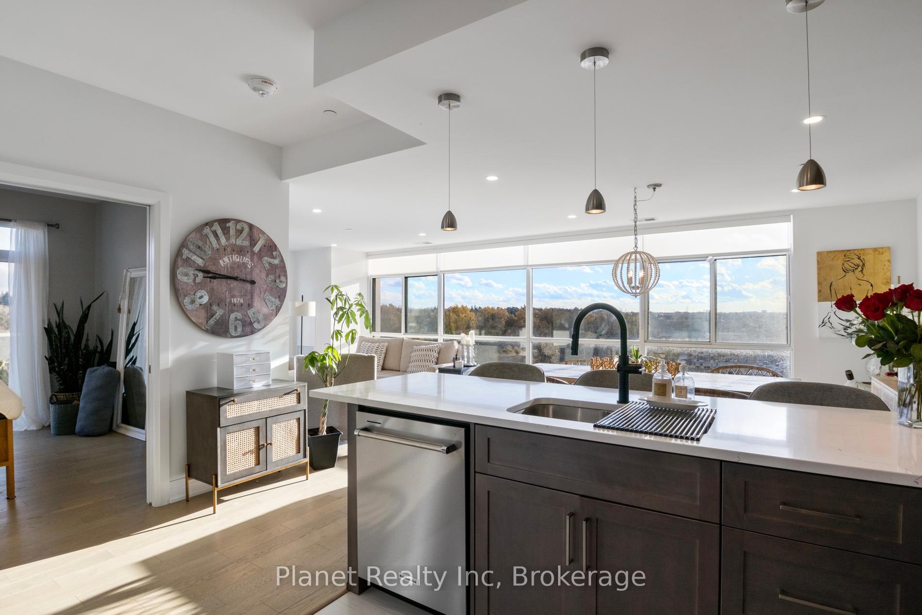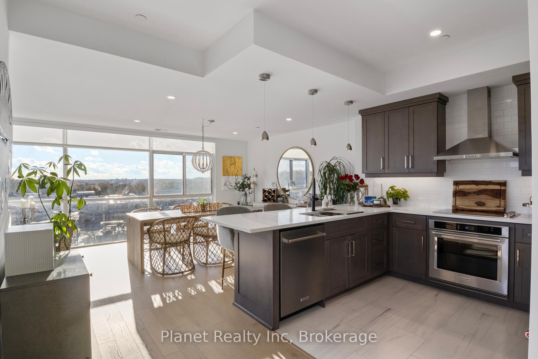 Beautiful 6th-floor corner suite offering 1,625 sq. ft. with 2 bedrooms, 2 full baths and a spacious den, complete with a private balcony overlooking the river. This open-concept layout features large windows, incredible natural light, and a central fireplace that enhances the living/dining/kitchen space. The primary bedroom retreat includes a walk-in closet and luxurious 5-piece ensuite, while the upgraded kitchen offers granite countertops and stainless steel appliances, ideal for those who love to cook and entertain. Heating, cooling, water and sewage are included for added convenience, plus the suite comes with 1 secure underground parking space and a locker. A rare opportunity to enjoy elevated condo living in one of Guelph's most desirable communities. Tenant is responsible for electricity, cable and internet. Available for move-in January 2026.
