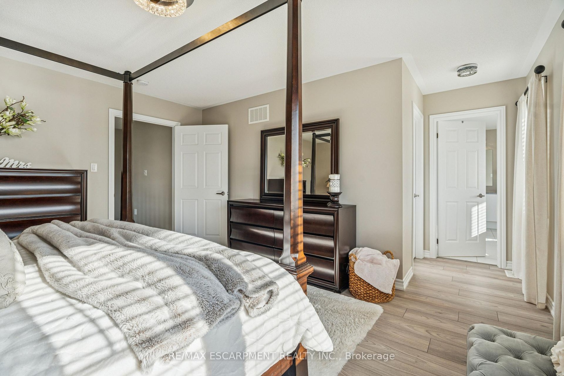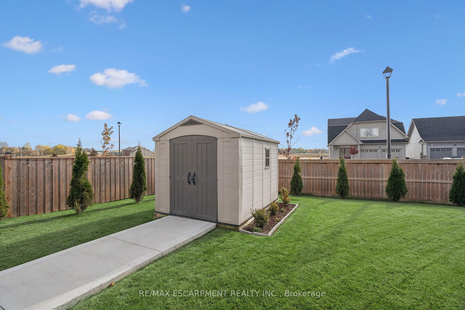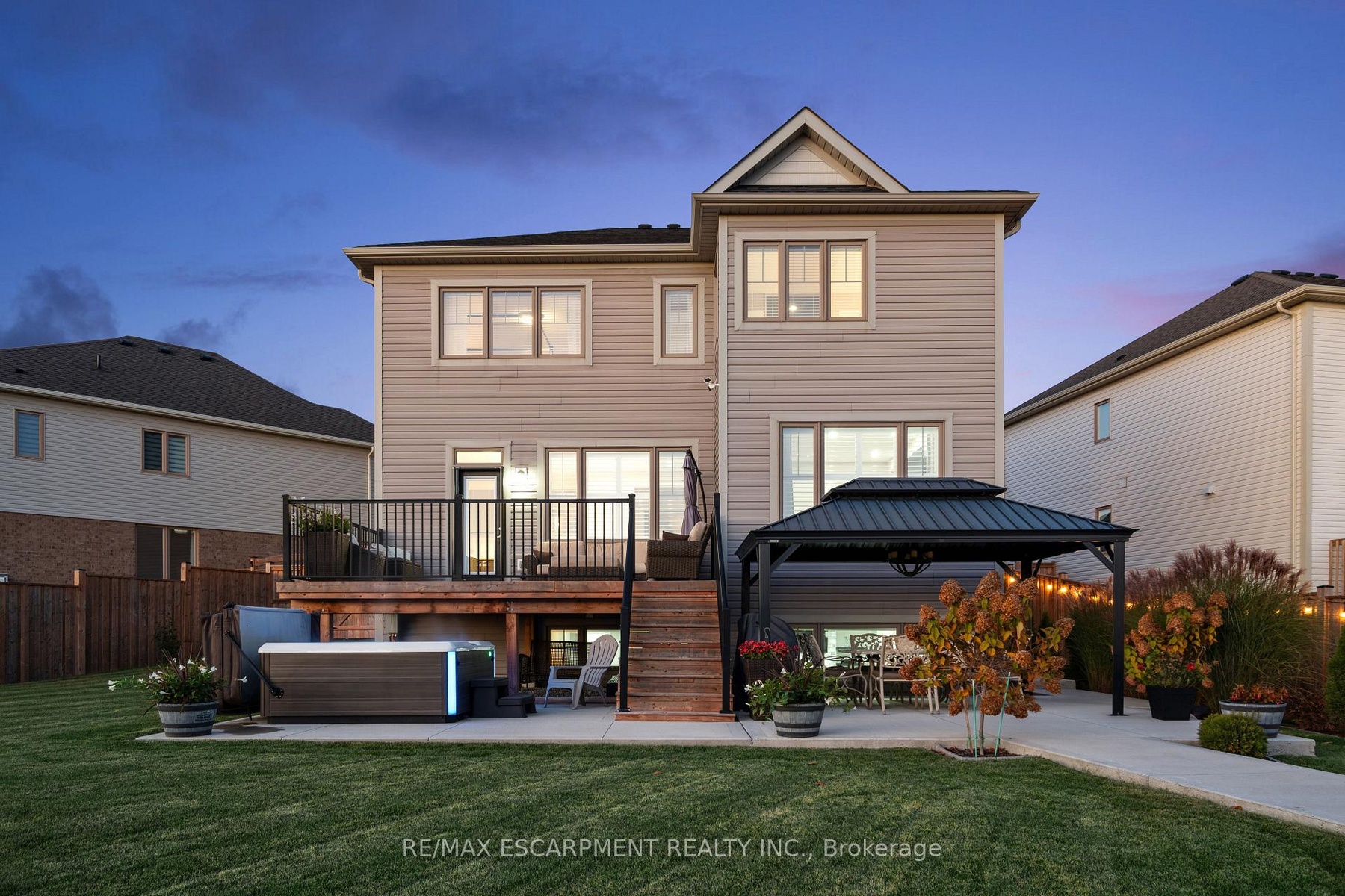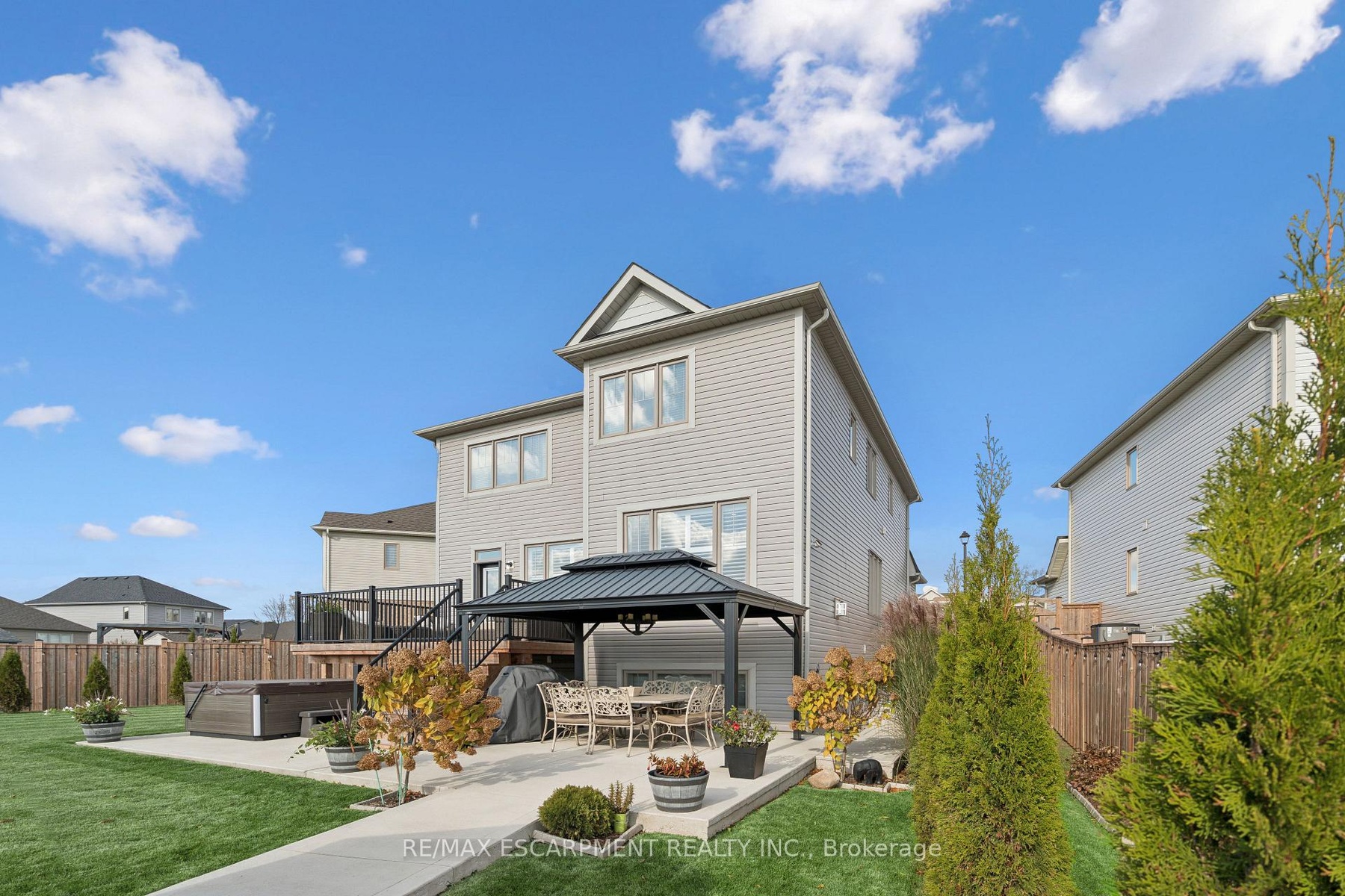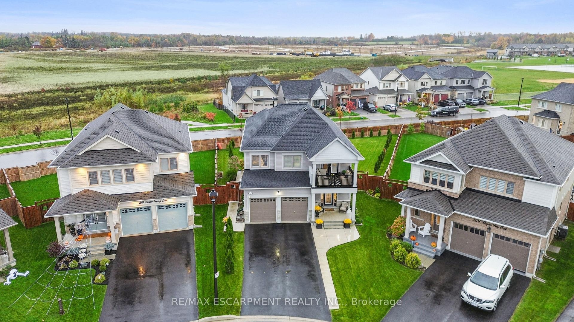 4 BEDROOMS! 4 BATHROOMS! PIE-SHAPED LOT! FINISHED BASEMENT! Welcome to 220 Harpin Way E - a beautifully appointed 4-bed, 4-bath detached home on a premium pie-shaped lot in the sought-after Storybrook subdivision of Fergus. Built in 2021 and designed with family comfort in mind, this home blends style and function across three spacious levels. Inside, 9-ft ceilings, wide-plank flooring, and California shutters set the tone. The gourmet kitchen features a large quartz island, gas stove, pot-filler, extended cabinetry, and walkout to a deck with gas BBQ hookup - perfect for entertaining. The living room includes a cozy gas fireplace and custom built-ins, complemented by a formal dining room and practical mudroom with inside garage entry. Upstairs, the luxurious primary suite boasts a walk-in closet and spa-like ensuite with a soaker tub and glass shower. Three additional spacious bedrooms, a 4-pc bath, and laundry room round out the second floor - including one room with its own private balcony, ideal for a home office. The finished basement adds a rec room with fireplace, bonus room for an office or gym, plus storage. Mechanical systems are near-new, offering peace of mind. Outside, enjoy a fully fenced, landscaped yard with room to roam - ideal for kids, pets, or future pool plans. The double garage and 4-car driveway make daily life easy. Located on a quiet cul-de-sac, you're close to parks, trails, the Grand River, brand-new Grand River Public School, and Groves Hospital. It's everything a growing family needs - in one move-in ready home.