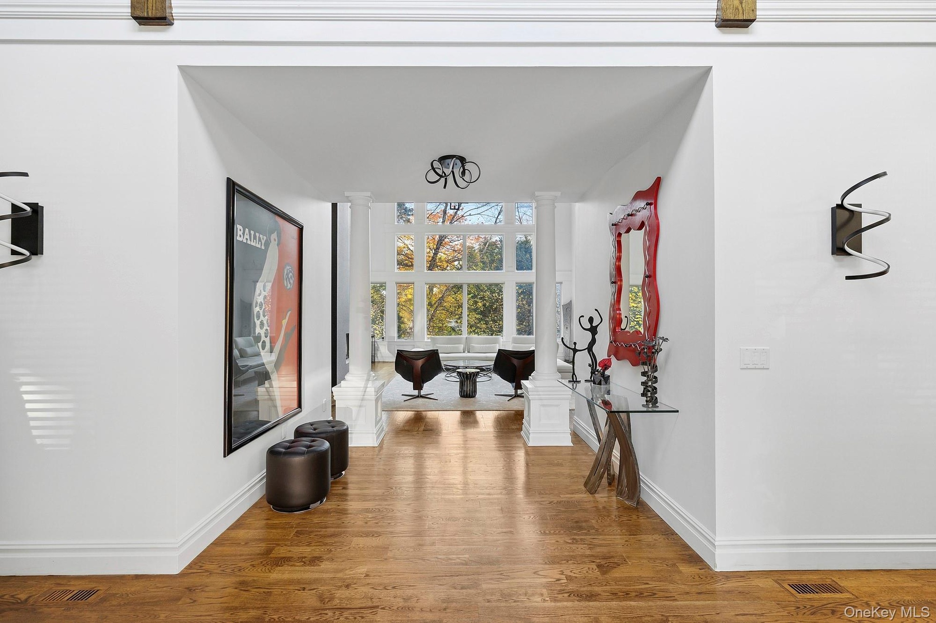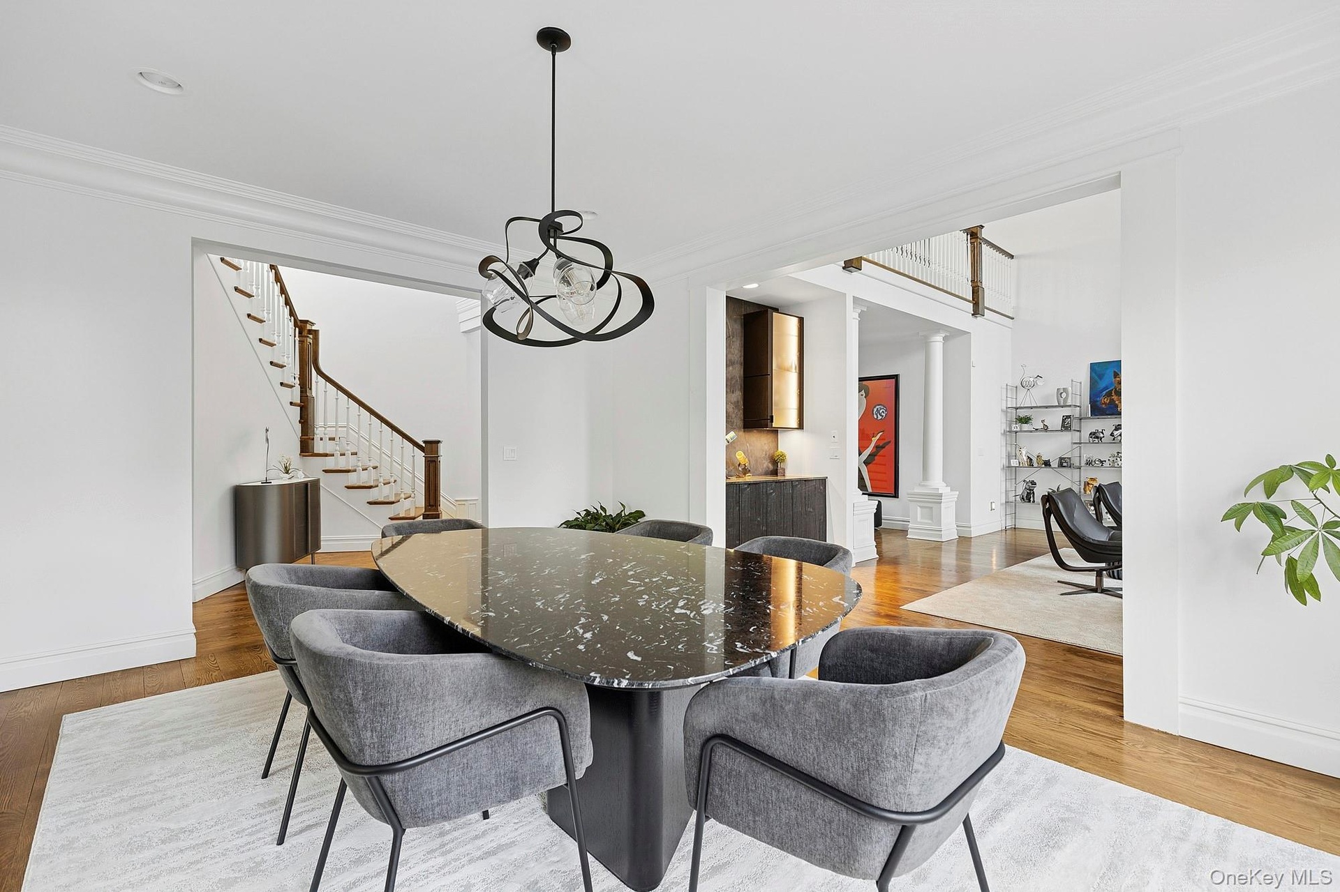Half Hollow Hills School District. Experience luxurious living across three levels in this beautifully renovated residence set on nearly two private acres in coveted West Hills. The dramatic Great Room features 20-foot ceilings and expansive windows framing serene property views, complemented by a newly renovated wet bar.