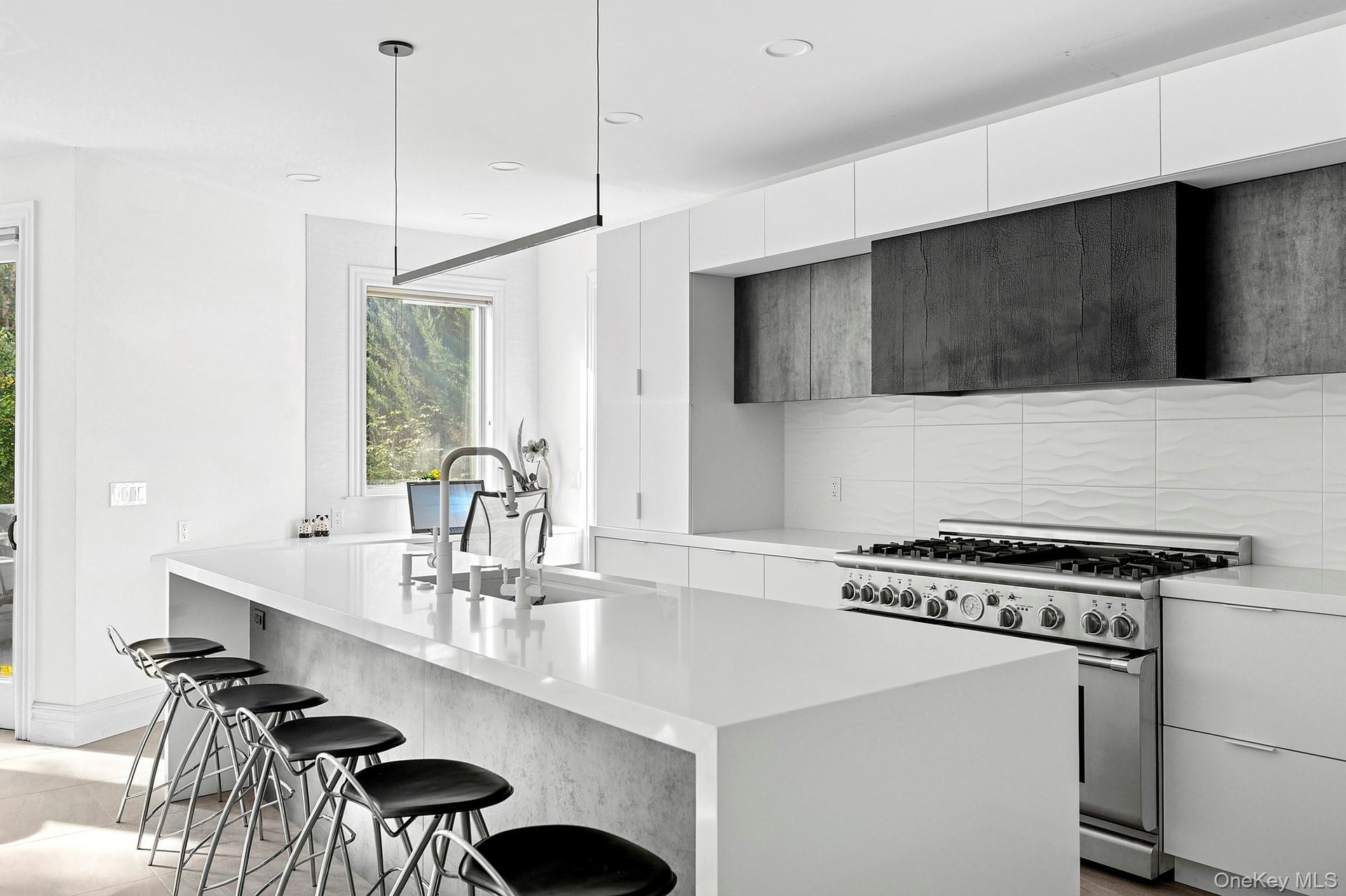 The stunning 2025 custom kitchen is a true showpiece, offering quartz countertops, handcrafted cabinetry, Waterstone fixtures, high-end appliances including a 72-inch built-in refrigerator/freezer, Miele dishwasher, Thermador convection oven, garbage compactor, instant hot water, and radiant heat flooring—one of five radiant-heat zones located throughout the kitchen and bathrooms. Lutron Lighting System. Additional 72” built in refrigerator/freezer located in the heated garage. Generator.