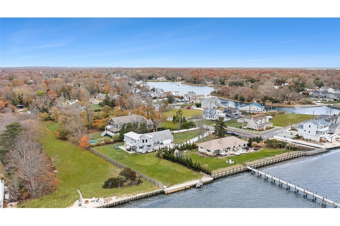 Experience the beauty of waterfront living in this stunning 3300+/- square-foot home perfectly positioned on .70 acres with direct access to Moriches Bay. This residence offers an ideal blend of timeless charm and modern updates, making it a true coastal retreat. Step inside to find an inviting and open floor plan featuring four spacious bedrooms. Sunlight pours through large windows, illuminating the beautifully proportioned living spaces and framing tranquil water views. At the heart of the home, two elegant fireplaces create a warm and welcoming ambiance—perfect for cozy evenings by the bay. The newly updated HVAC system and recently replaced roof ensure year-round comfort and peace of mind, allowing you to move in and enjoy carefree waterfront living. The kitchen and dining areas flow effortlessly into the great room, ideal for gatherings that transition seamlessly to the outdoors. Here, expansive lawns lead you to the water’s edge, where you can launch directly into Moriches Bay. For those dreaming of summer days poolside, an approved permit for an 18x36 pool is already in place—and installation is soon to be underway—creating the ultimate outdoor retreat for relaxation and entertaining. This property offers the best of both worlds: the tranquility of a private waterfront setting and the convenience of nearby beaches, shops, and dining in the charming community of Center Moriches. Whether you’re seeking a year-round residence or a serene weekend escape, this waterfront gem delivers Hamptons-style luxury less than 75 miles from NYC.