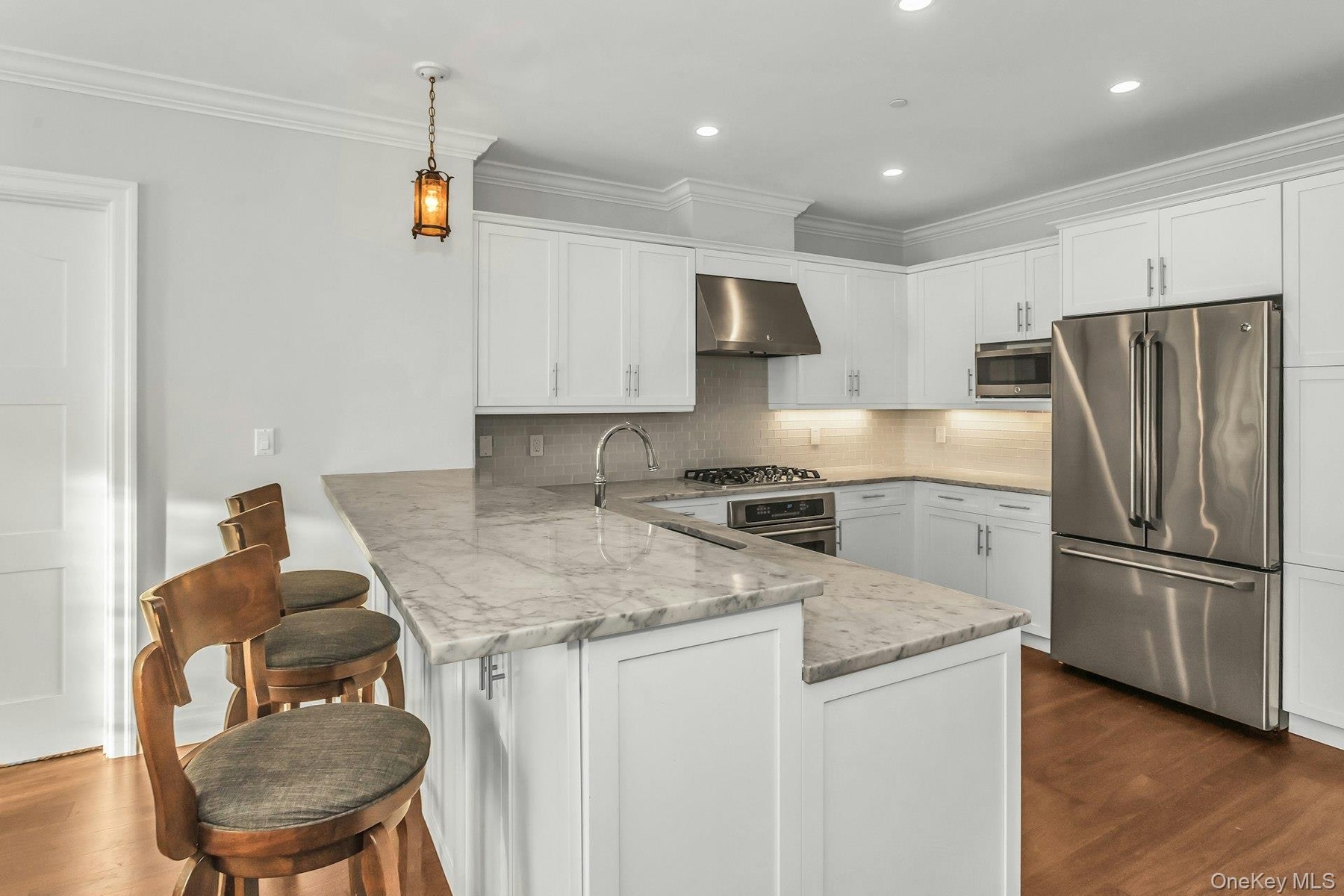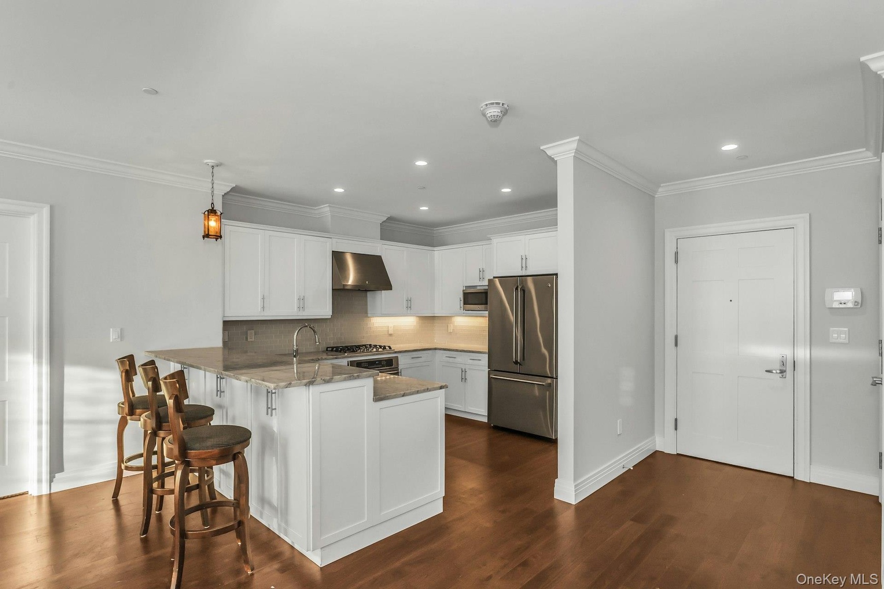 Luxury Living at Double Day Court. Experience elegant, carefree living in this beautiful and bright top-floor residence at Double Day Court. This private 2-bedroom, 2-bath luxury condo offers an open floor plan designed for modern comfort and effortless entertaining. The gourmet kitchen features a peninsula with marble countertops and stainless-steel appliances -perfect for those who love to cook and entertain. The spacious living room flows seamlessly to a private terrace, also accessible from the primary suite. The primary en-suite offers a peaceful sanctuary, complete with ample closet space and a beautifully appointed bath. Additional highlights include crown molding, recessed lighting, and the convenience of an in-unit laundry. Residents enjoy amenities including a beautifully welcoming lobby with 24-hour concierge service, a fitness center, rooftop pool, lounge with BBQ area, and secure underground heated parking with a dedicated space and private locked storage bin, plus an additional storage unit and a dog park. Located close to transportation, shopping, dining, parks, and schools.