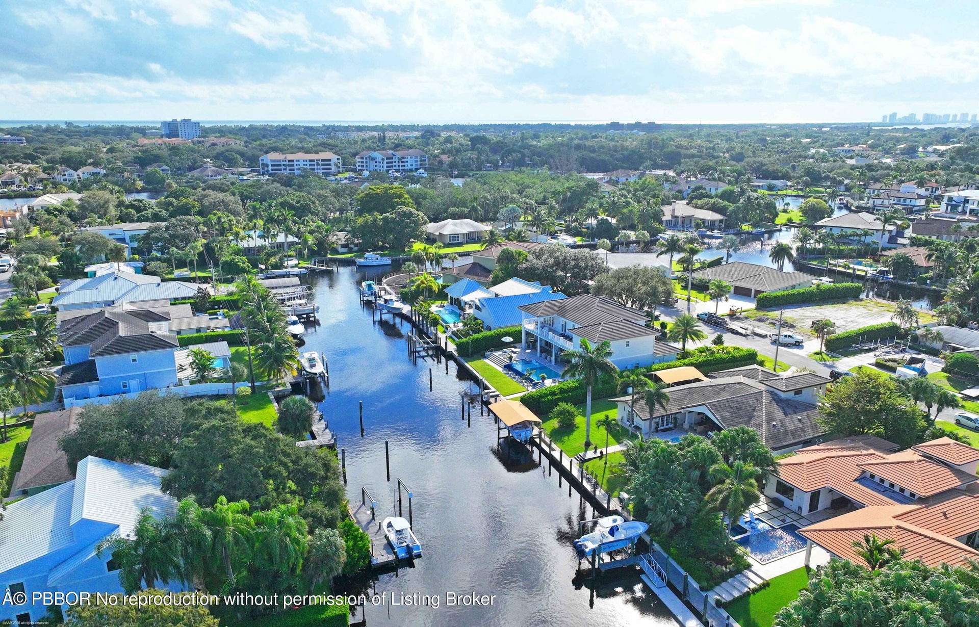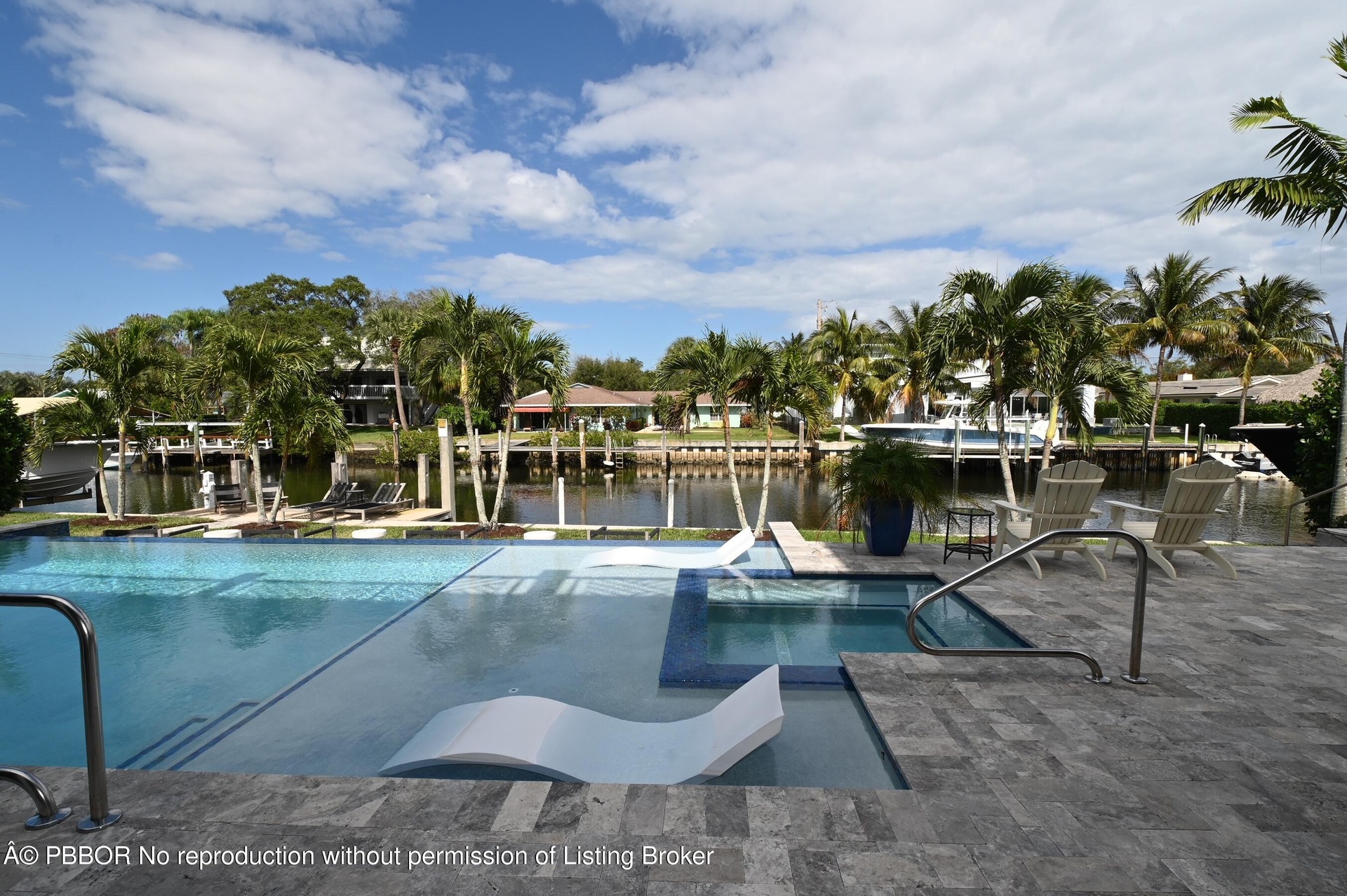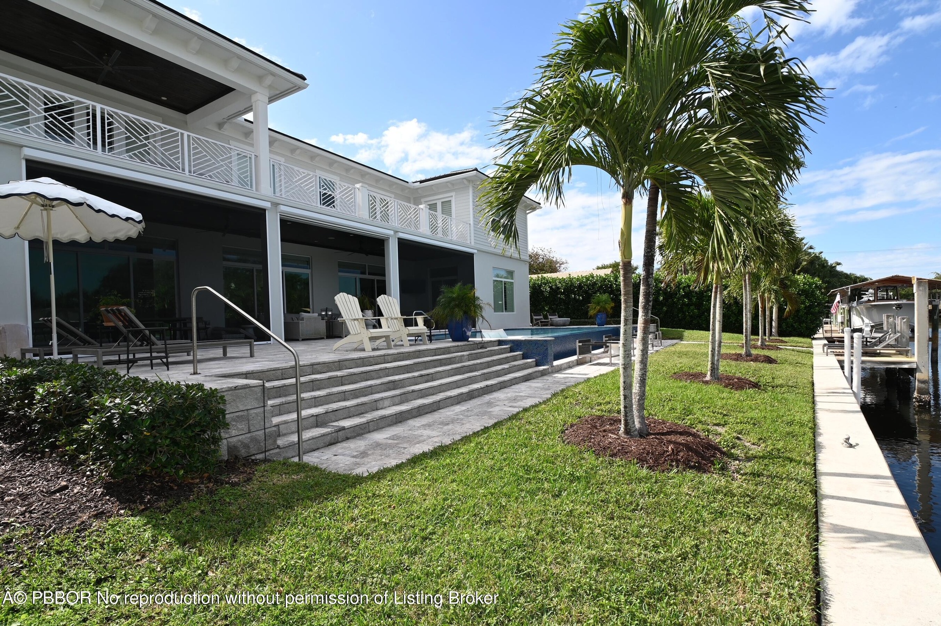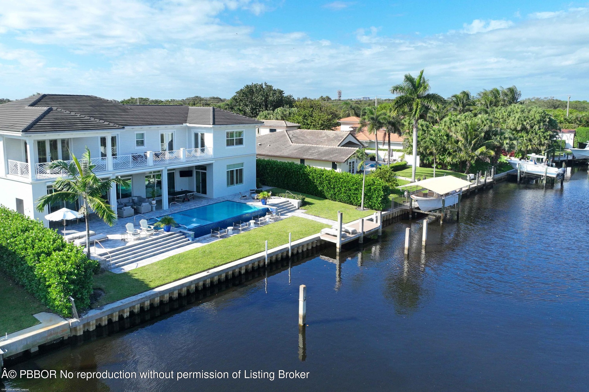 Built new in 2020, this fabulous Palm Beach Gardens Modern Island Smart Home boasts 5 bedrooms and 5.5 baths and over 7900 of total sq ft! The open floor plan includes a Gourmet Chef's kitchen with 2 large islands and a huge pantry! A wall of French Doors all open to a massive covered and screened patio with a summer kitchen and a beautiful heated infinity pool/spa and 100' of waterfront including a boat dock! The primary suite is stunning with a massive bath and huge closets. All the bedrooms upstairs access a large open balcony to capture the water views or to watch a sunrise or sunset. The home has high ceilings with recessed lighting, Plantation Shutters, an elevator and a whole house generator. It's a boaters paradise yet just minutes away from everything.