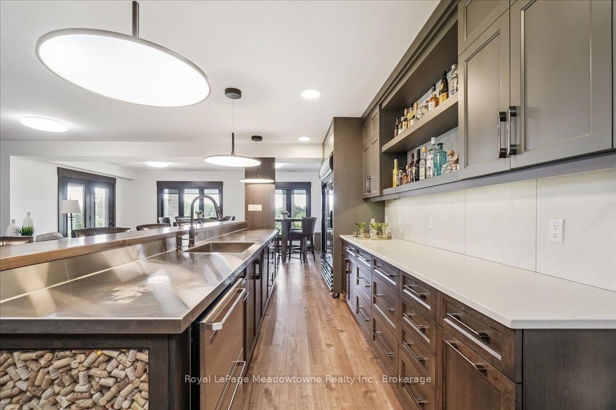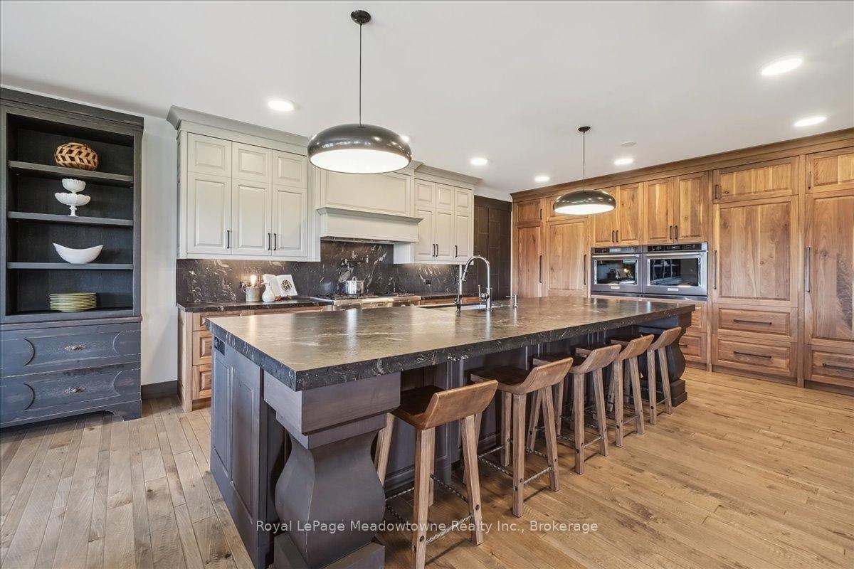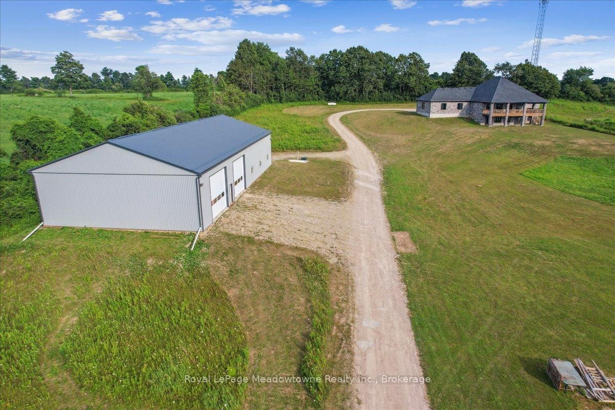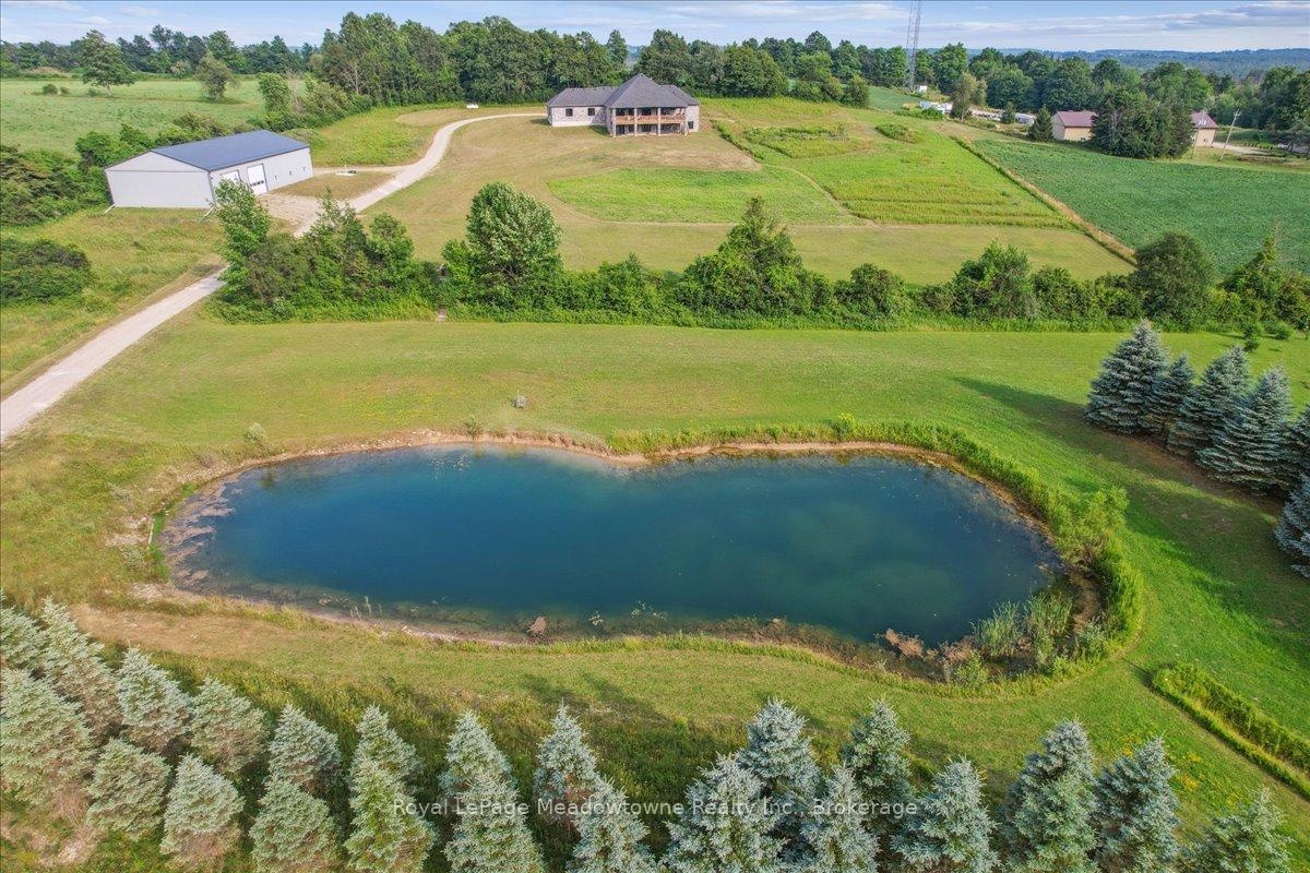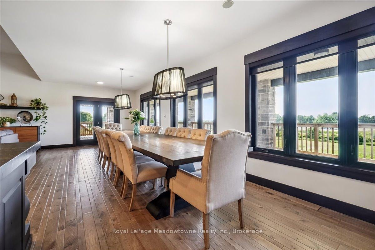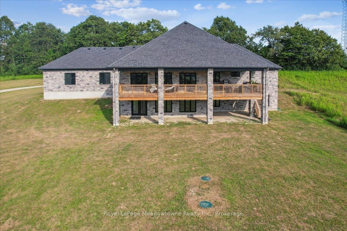 This custom-built country bungalow, where craftsmanship meets comfort is an exceptional family home nestled in the rolling hills of Erin. Set on just under 9 acres of gently sloping lawns, a spring-fed pond, and endless outdoor beauty. From the moment you step inside, you'll feel the care and quality that went into this cabinetmakers personal residence. Striking details, soaring ceilings, and an open-concept layout set the stage, while over 200+ custom-built storage drawers keep family life beautifully organized. The heart of the home is a chefs dream kitchen, featuring solid wood cabinetry, high-end appliances, a massive quartz island with breakfast bar, and endless cupboard space. Gather in the great room around the fireplace, or share meals in the dining room as you soak in panoramic views of the countryside through the windows. Step outside to the elevated, covered balcony and catch unforgettable sunsets, your new favourite place to unwind. The main-floor primary suite is your own private retreat, with a coffered ceiling, spa-inspired ensuite, and a walk-in closet with built-ins that maximize both function and style. Two additional bedrooms offer the same high-quality finishes and thoughtful design. Head downstairs to discover the ultimate entertainment zone, a fully finished walk-out lower level with a large wet bar, cozy fireplace, theatre room, home office, and even a sauna. And then there's the workshop, an incredible 5,000 sq. ft. heated building with three 16x16 insulated doors, ideal for car enthusiasts, hobbyists, or entrepreneurs. Add in a 3-car garage, geo-thermal heating and cooling, in-floor heating throughout the basement and shop, fire pit & your family has found a forever home. This property doesn't just offer a place to live, it offers a lifestyle. From peaceful birdwatching by the pond to hosting unforgettable gatherings, this is country living reimagined for the modern family. This is where your family story continues.