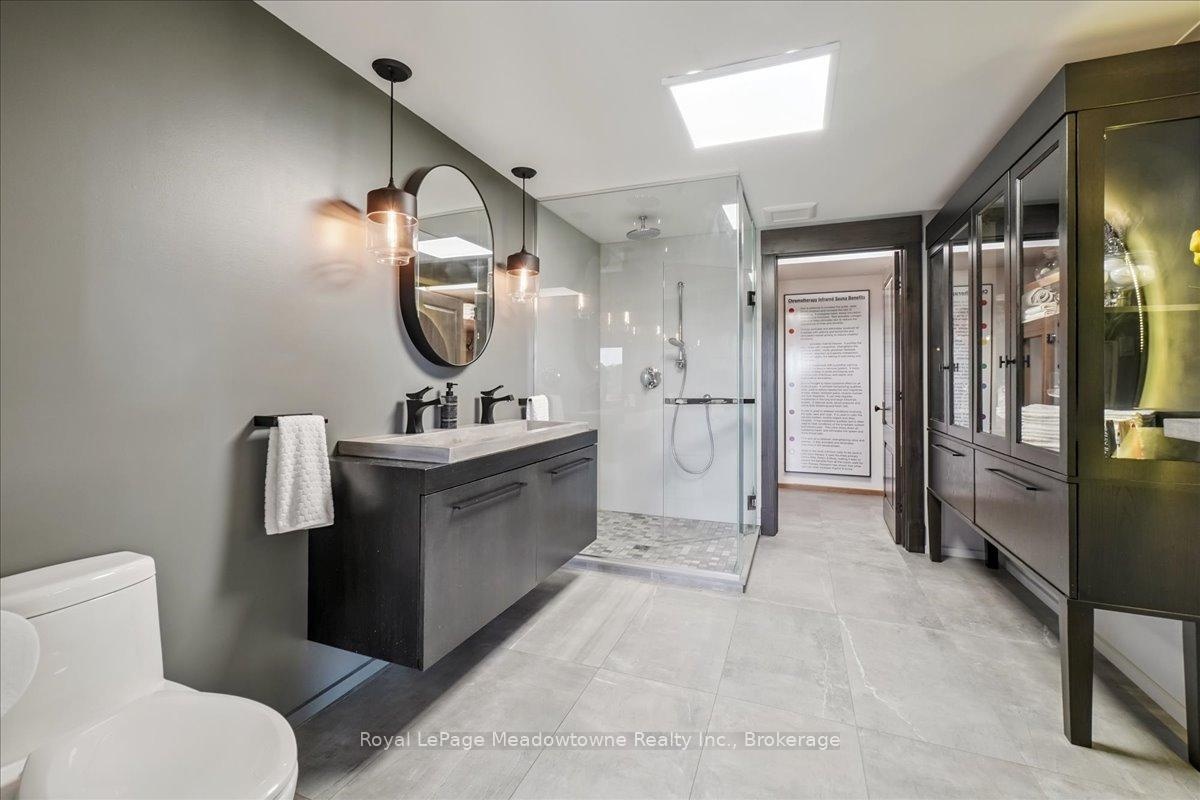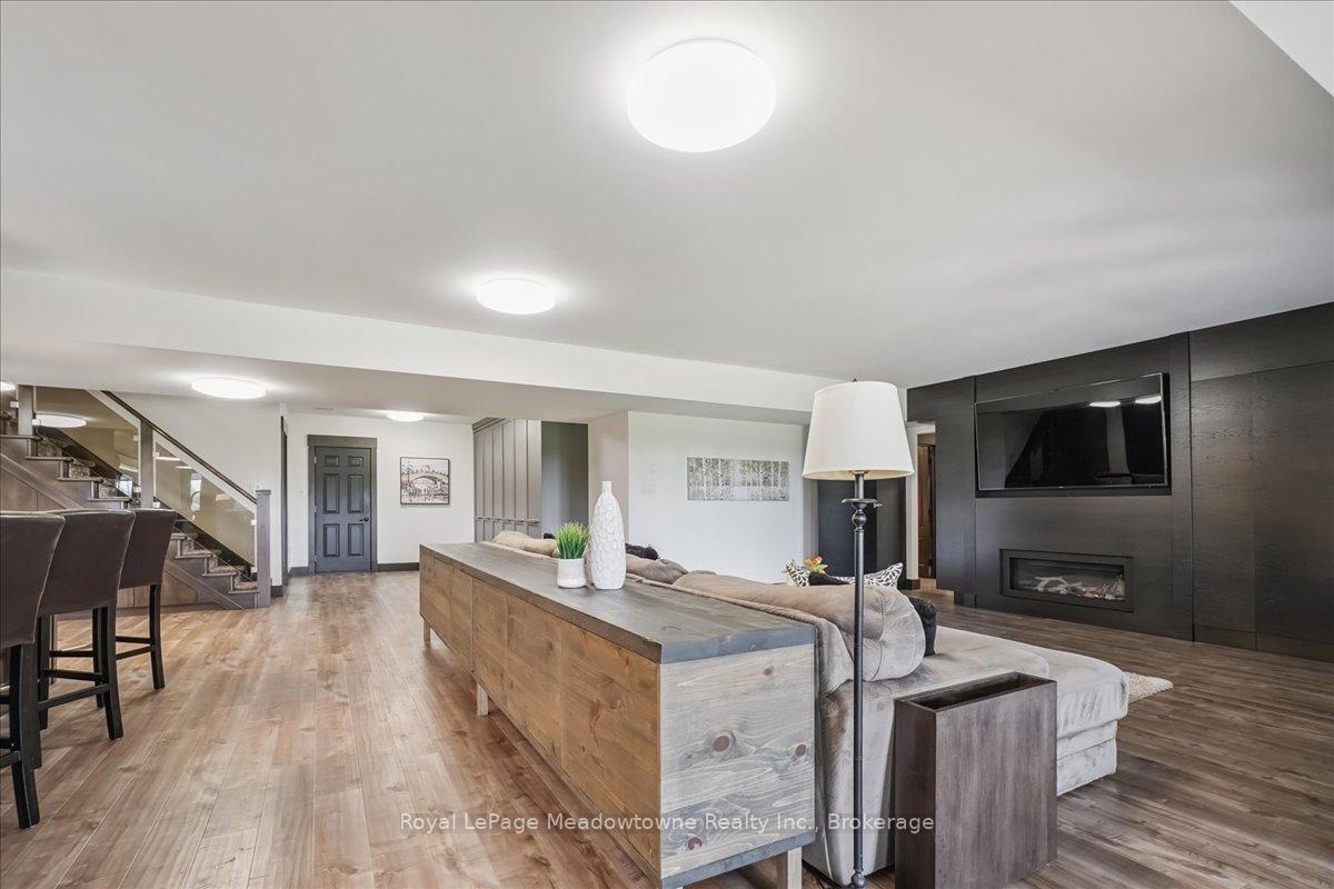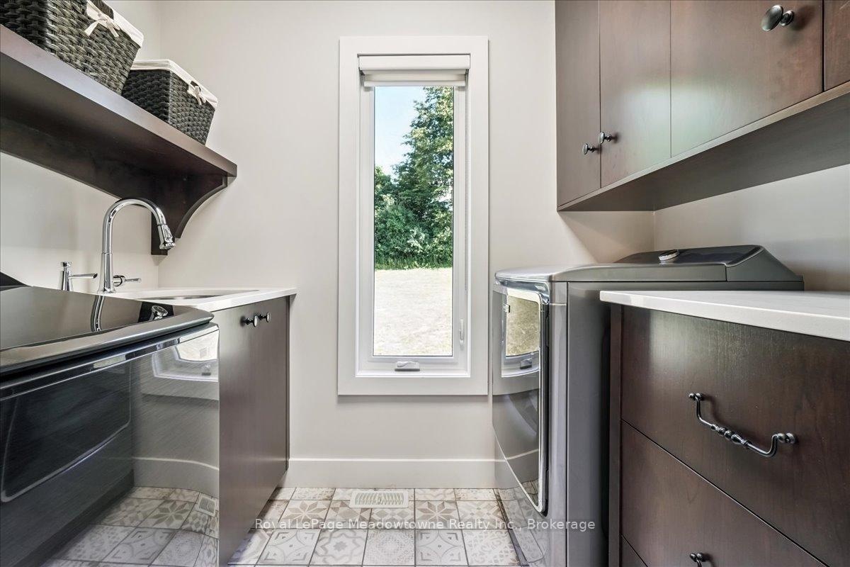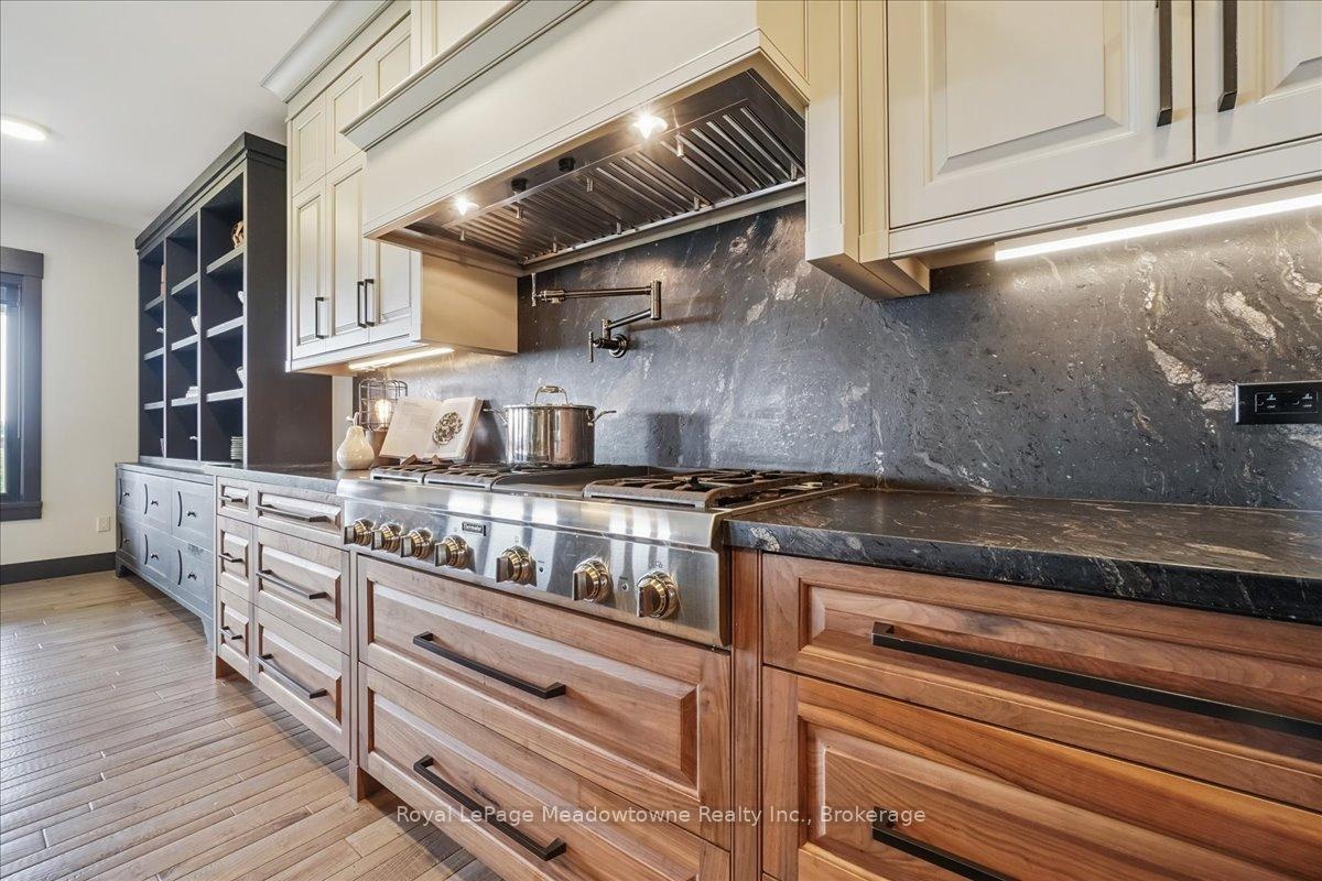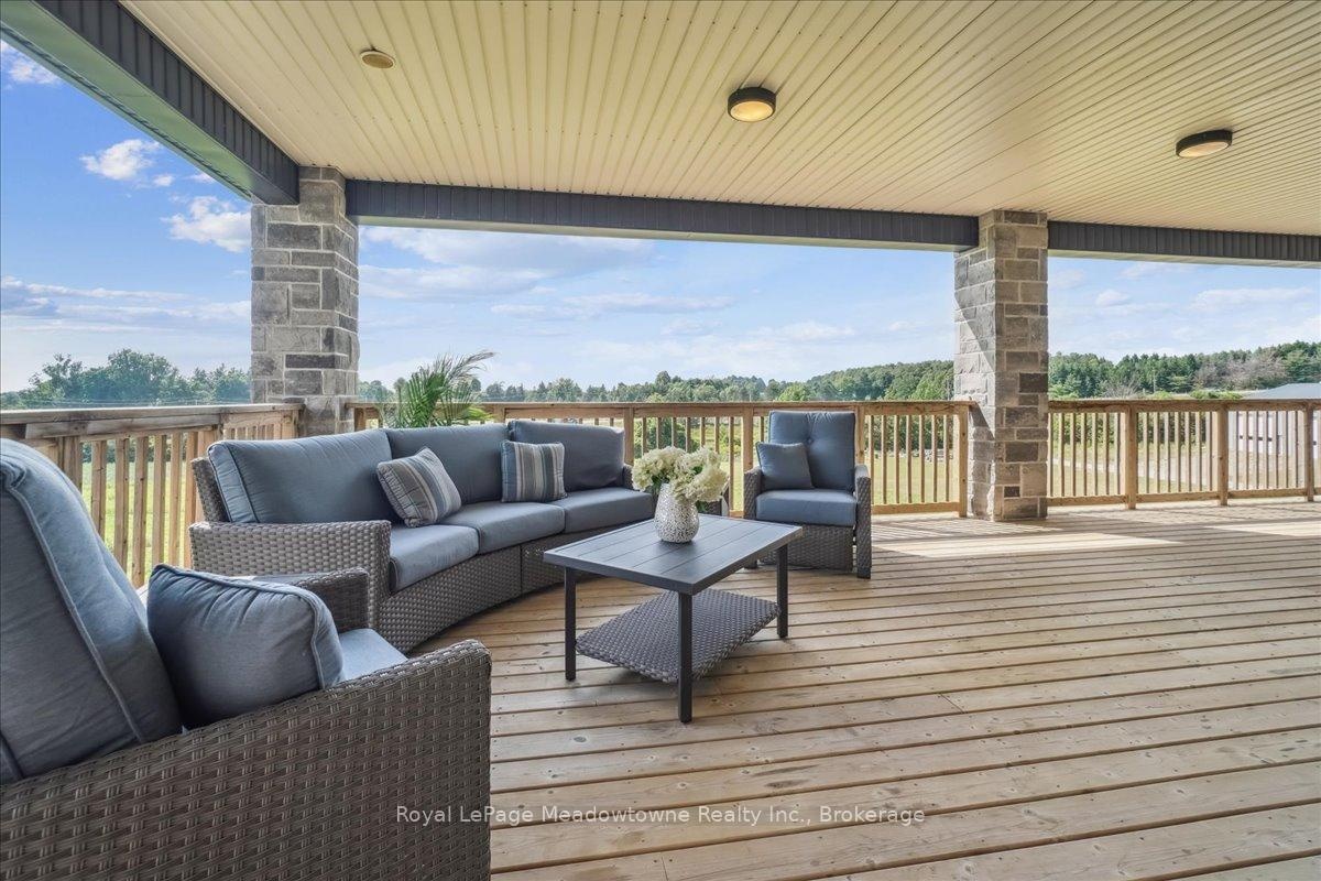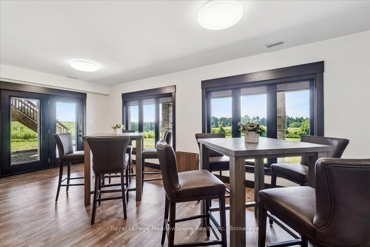 This custom-built country bungalow, where craftsmanship meets comfort is an exceptional family home nestled in the rolling hills of Erin. Set on just under 9 acres of gently sloping lawns, a spring-fed pond, and endless outdoor beauty. From the moment you step inside, you'll feel the care and quality that went into this cabinetmakers personal residence. Striking details, soaring ceilings, and an open-concept layout set the stage, while over 200+ custom-built storage drawers keep family life beautifully organized. The heart of the home is a chefs dream kitchen, featuring solid wood cabinetry, high-end appliances, a massive quartz island with breakfast bar, and endless cupboard space. Gather in the great room around the fireplace, or share meals in the dining room as you soak in panoramic views of the countryside through the windows. Step outside to the elevated, covered balcony and catch unforgettable sunsets, your new favourite place to unwind. The main-floor primary suite is your own private retreat, with a coffered ceiling, spa-inspired ensuite, and a walk-in closet with built-ins that maximize both function and style. Two additional bedrooms offer the same high-quality finishes and thoughtful design. Head downstairs to discover the ultimate entertainment zone, a fully finished walk-out lower level with a large wet bar, cozy fireplace, theatre room, home office, and even a sauna. And then there's the workshop, an incredible 5,000 sq. ft. heated building with three 16x16 insulated doors, ideal for car enthusiasts, hobbyists, or entrepreneurs. Add in a 3-car garage, geo-thermal heating and cooling, in-floor heating throughout the basement and shop, fire pit & your family has found a forever home. This property doesn't just offer a place to live, it offers a lifestyle. From peaceful birdwatching by the pond to hosting unforgettable gatherings, this is country living reimagined for the modern family. This is where your family story continues.