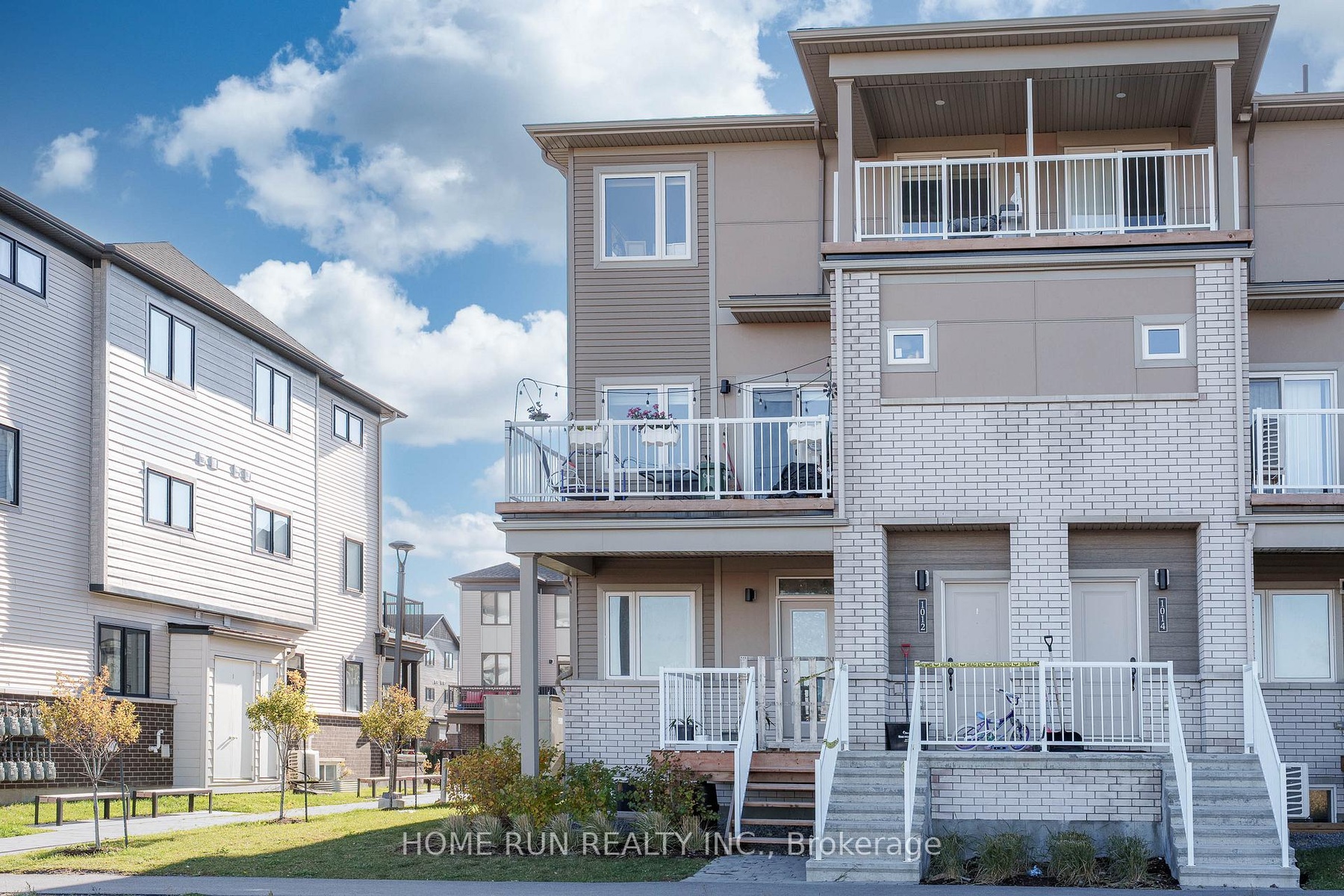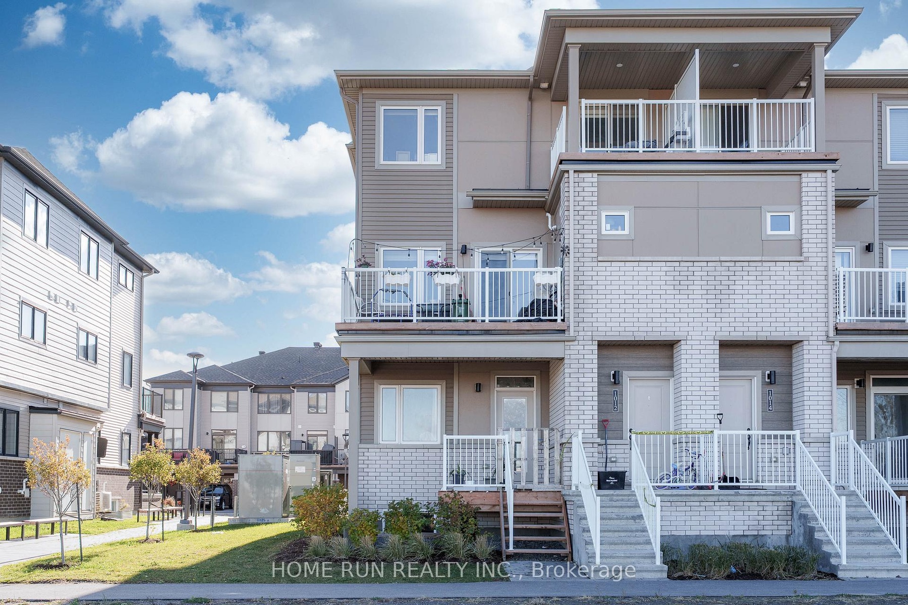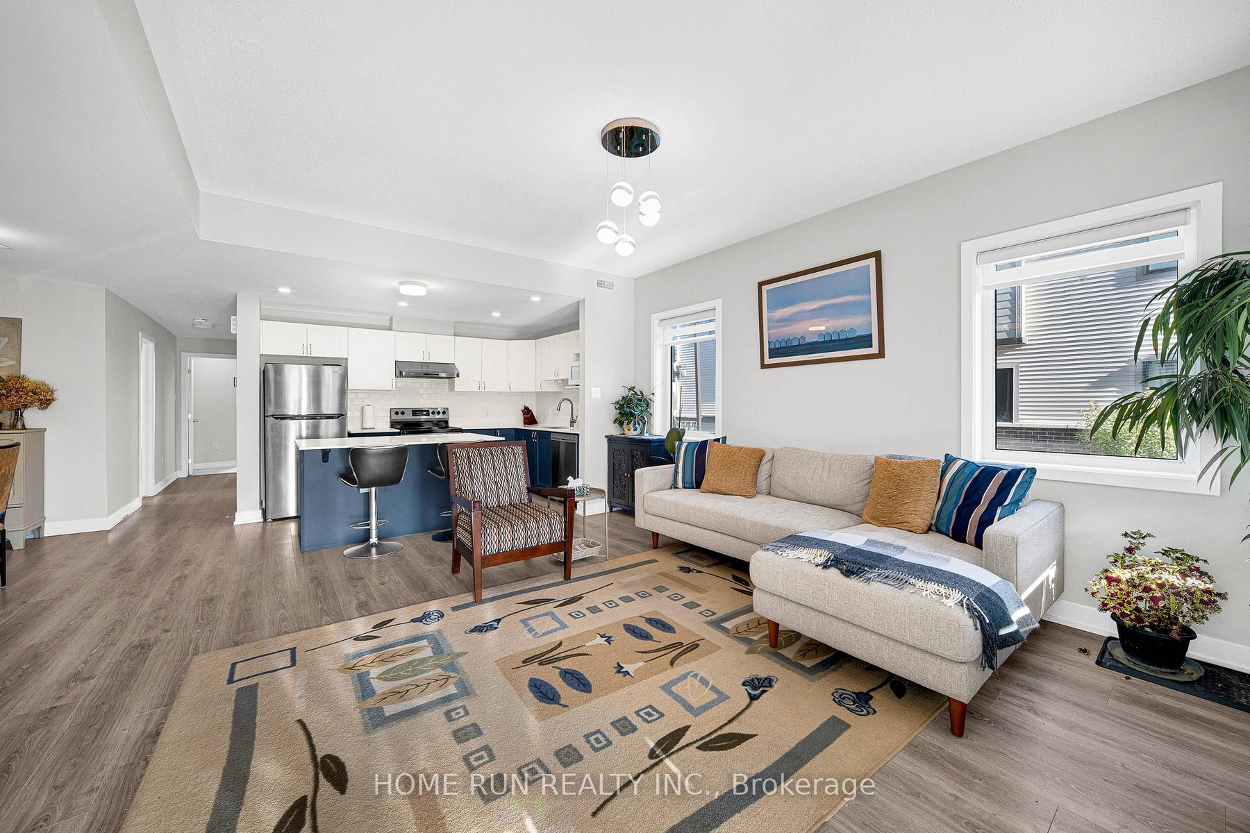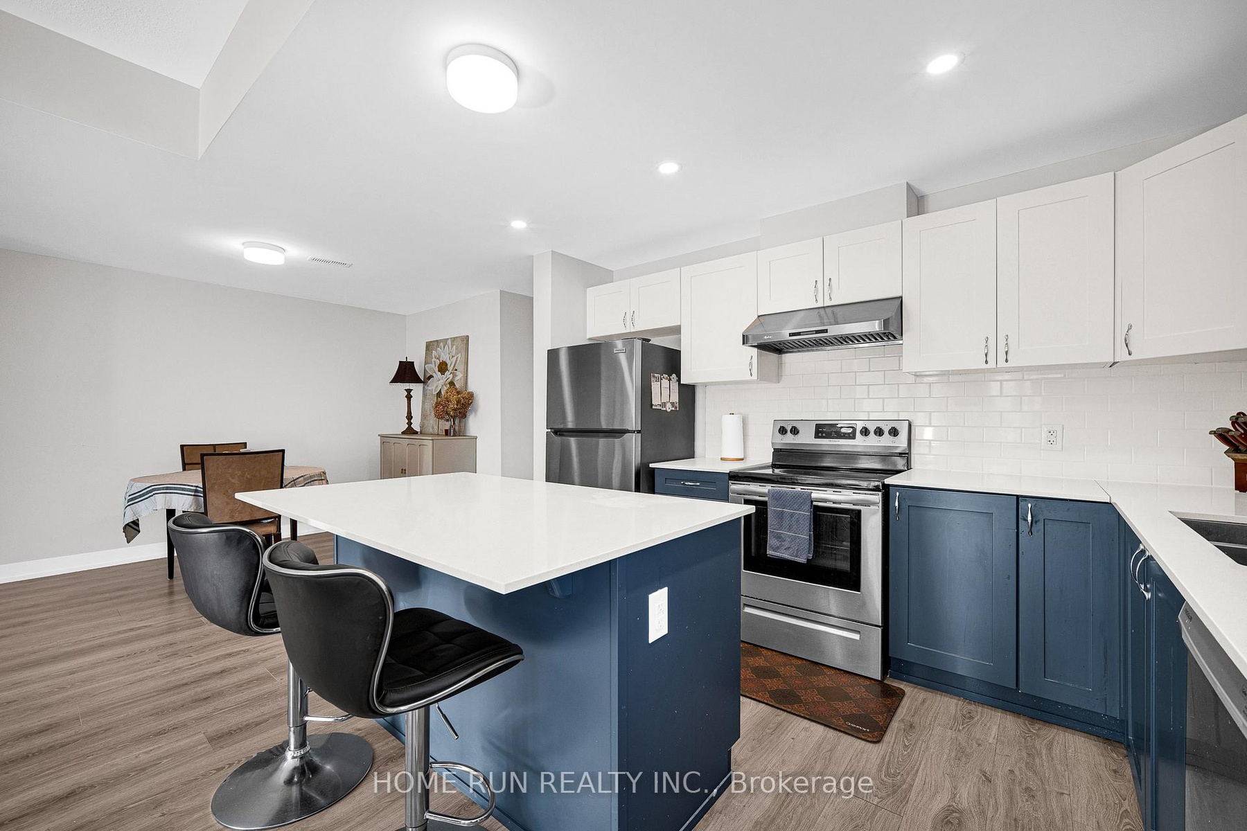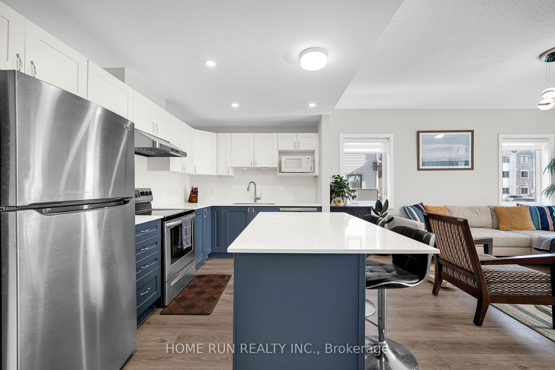 Location, location, location! This like-new end-unit stacked townhouse (Poppy model) offers over 1,800 sq.ft. of beautifully finished living space and is truly move-in ready. The main level features a bright open-concept layout with 9 ft ceilings, a spacious living and dining area, a versatile den, two bedrooms, and a full bathroom. The modern L-shaped kitchen showcases upgraded quartz countertops, stainless steel appliances, stylish cabinetry, and an island with a breakfast bar.The primary bedroom includes both his and her closets and provides potential for an ensuite conversion. The second bedroom is bright and airy with plenty of natural light. The fully finished lower level adds exceptional living space with large windows, a generous recreation room, a full bathroom with walk-in shower, and a third bedroom-ideal for guests, a home office, or additional family space.Additional features include in-unit laundry on the main level, ample storage, upgraded flooring throughout, and designated parking (Space #22). Conveniently located just minutes from schools, parks, transit, shopping, and everyday amenities.