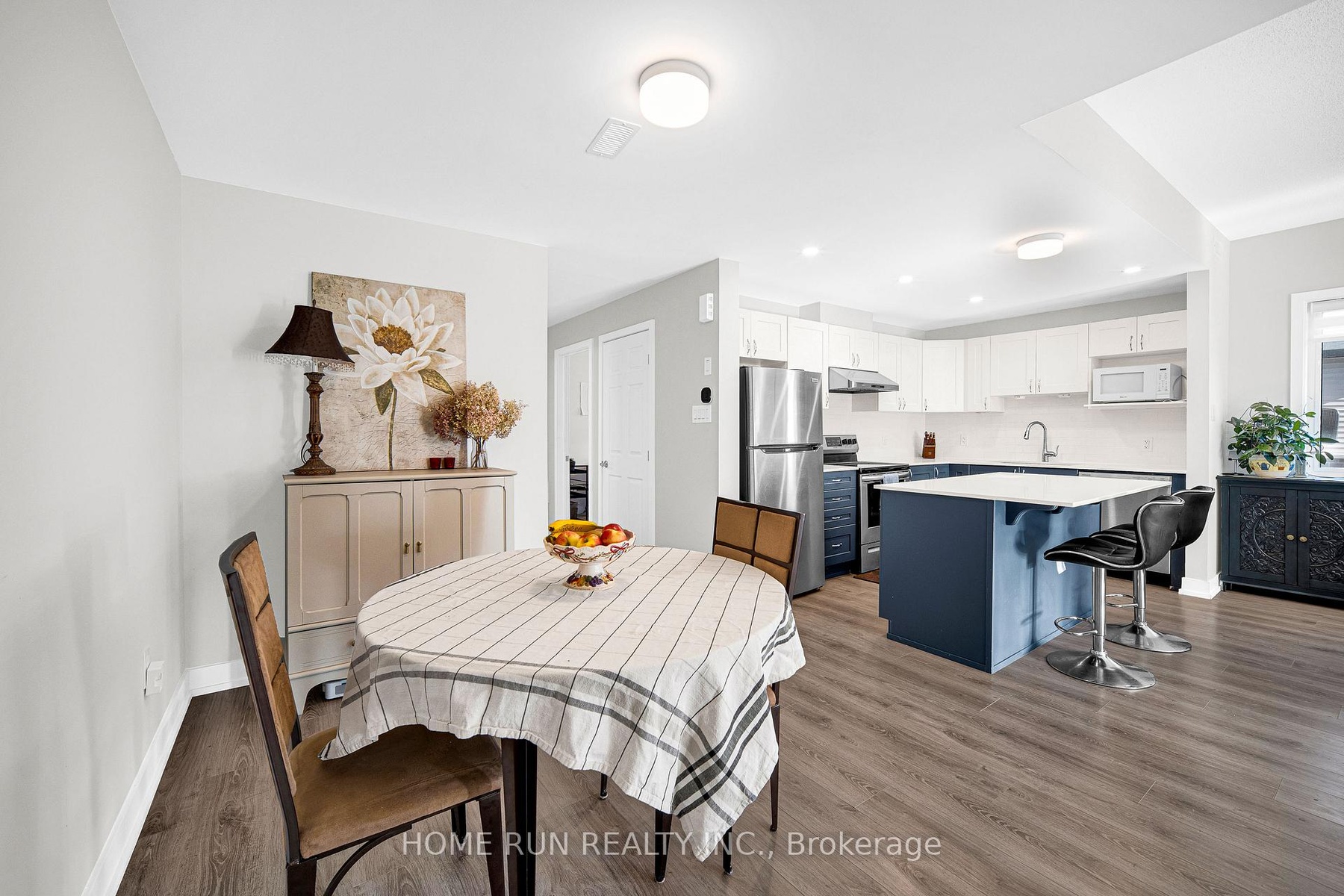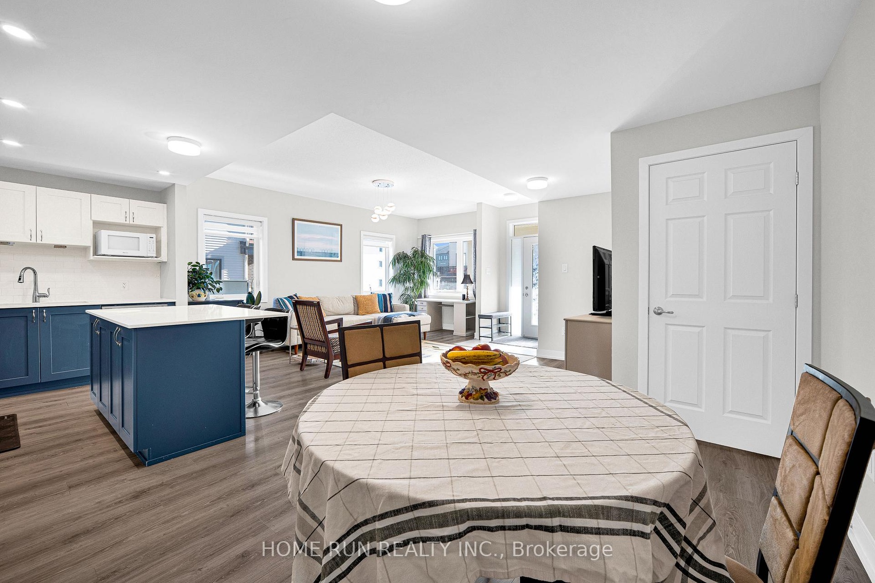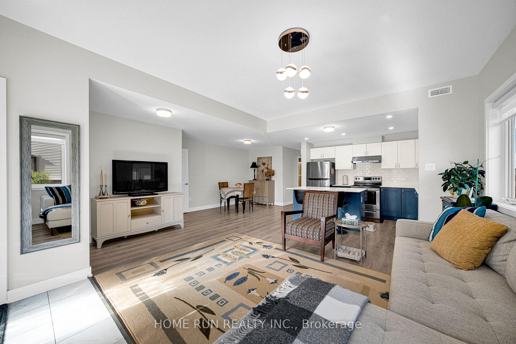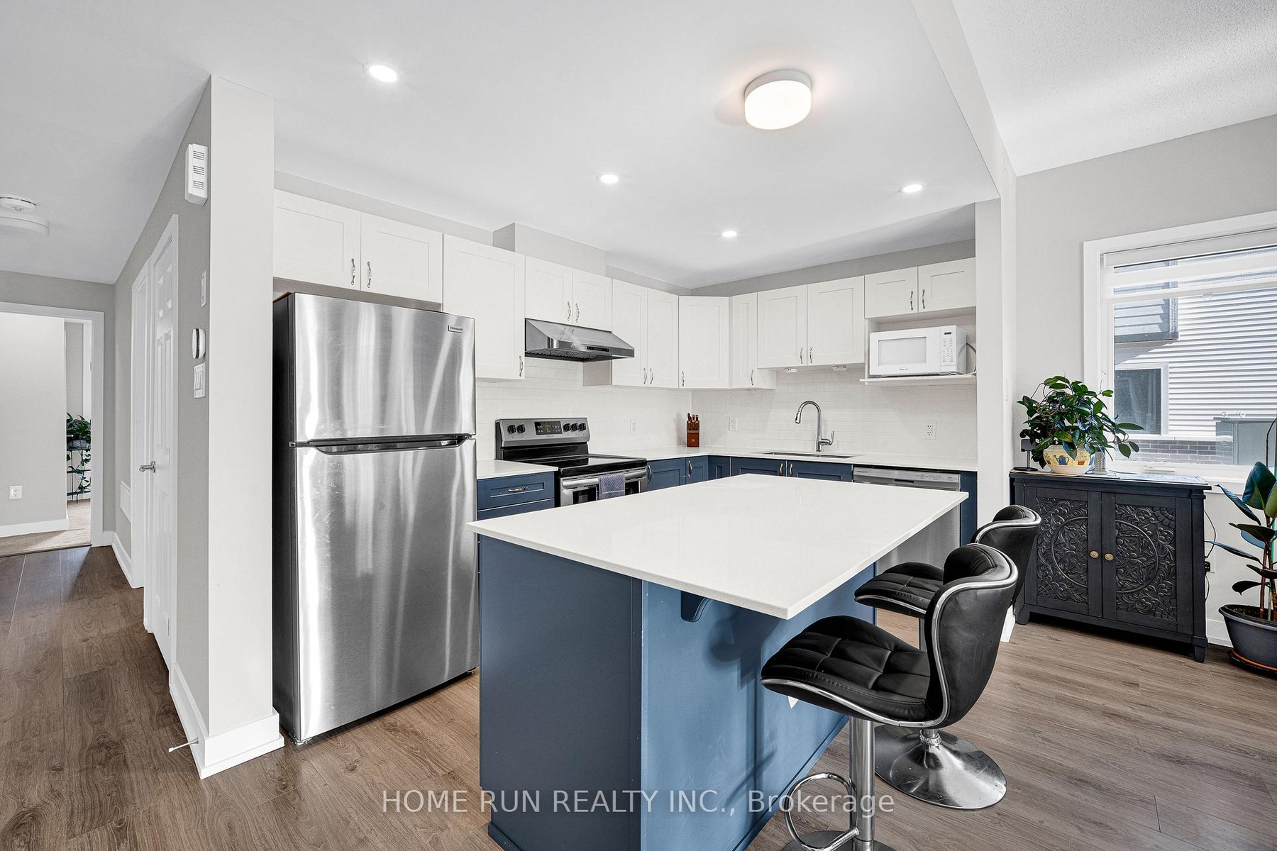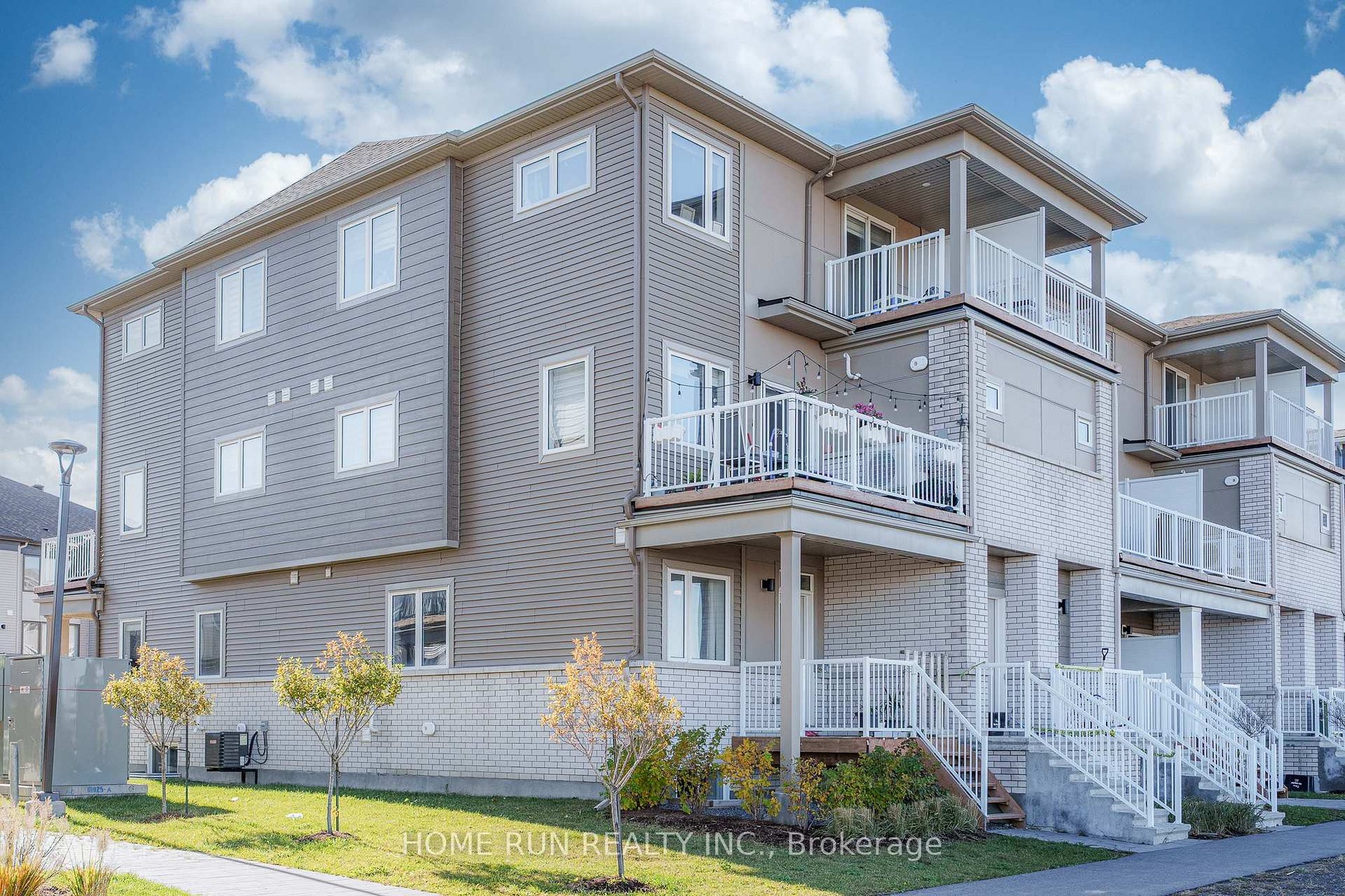 Location, location, location! This like-new end-unit stacked townhouse (Poppy model) offers over 1,800 sq.ft. of beautifully finished living space and is truly move-in ready. The main level features a bright open-concept layout with 9 ft ceilings, a spacious living and dining area, a versatile den, two bedrooms, and a full bathroom. The modern L-shaped kitchen showcases upgraded quartz countertops, stainless steel appliances, stylish cabinetry, and an island with a breakfast bar.The primary bedroom includes both his and her closets and provides potential for an ensuite conversion. The second bedroom is bright and airy with plenty of natural light. The fully finished lower level adds exceptional living space with large windows, a generous recreation room, a full bathroom with walk-in shower, and a third bedroom-ideal for guests, a home office, or additional family space.Additional features include in-unit laundry on the main level, ample storage, upgraded flooring throughout, and designated parking (Space #22). Conveniently located just minutes from schools, parks, transit, shopping, and everyday amenities.