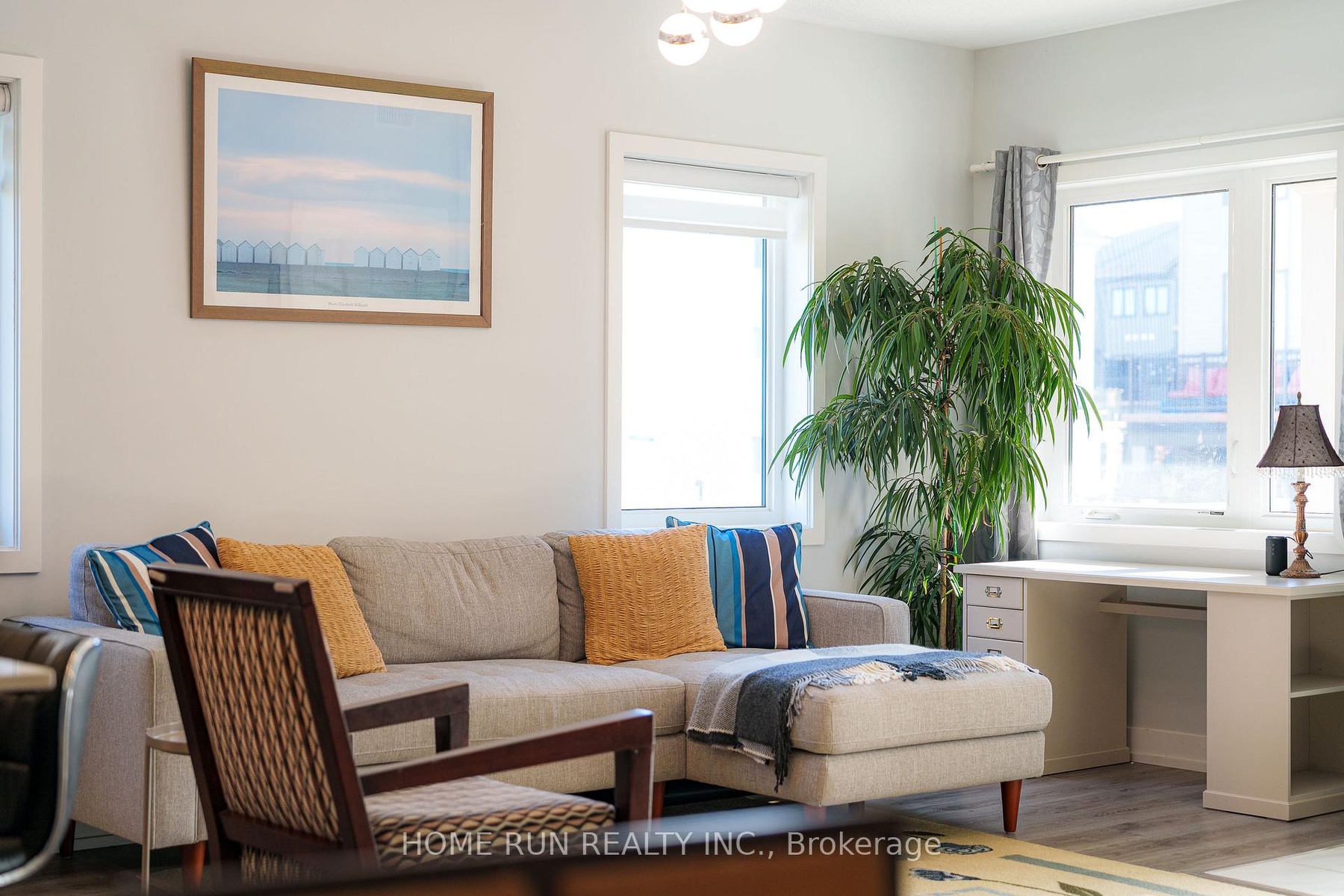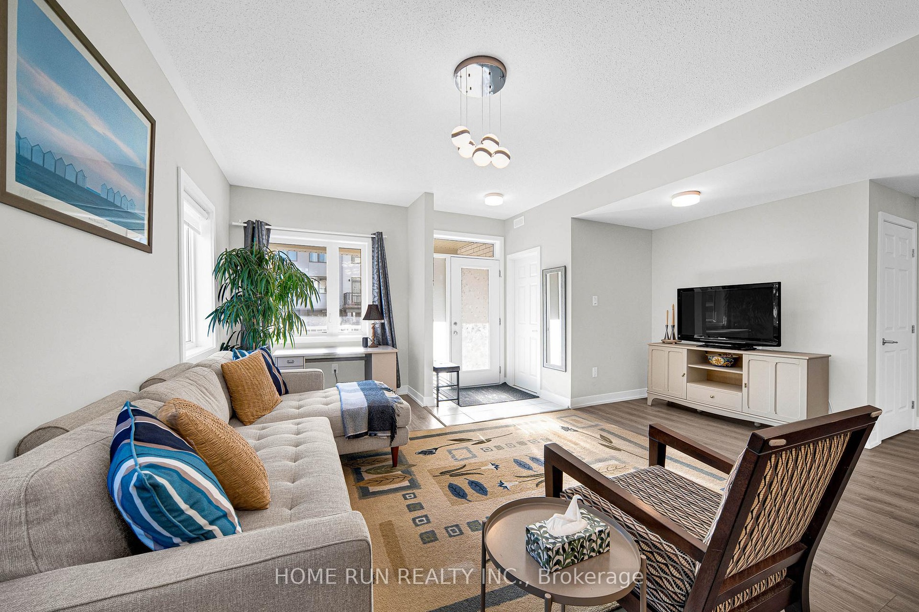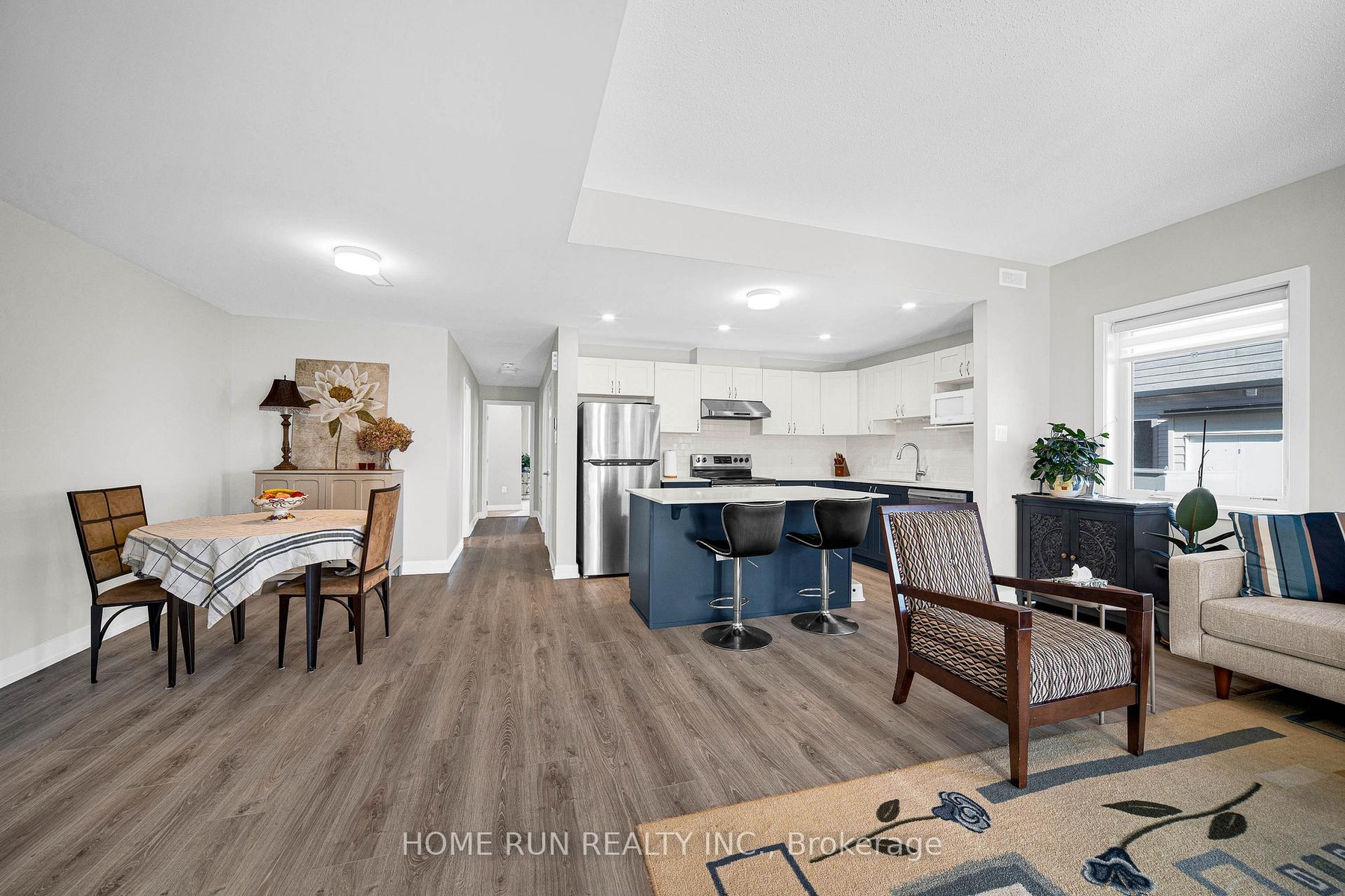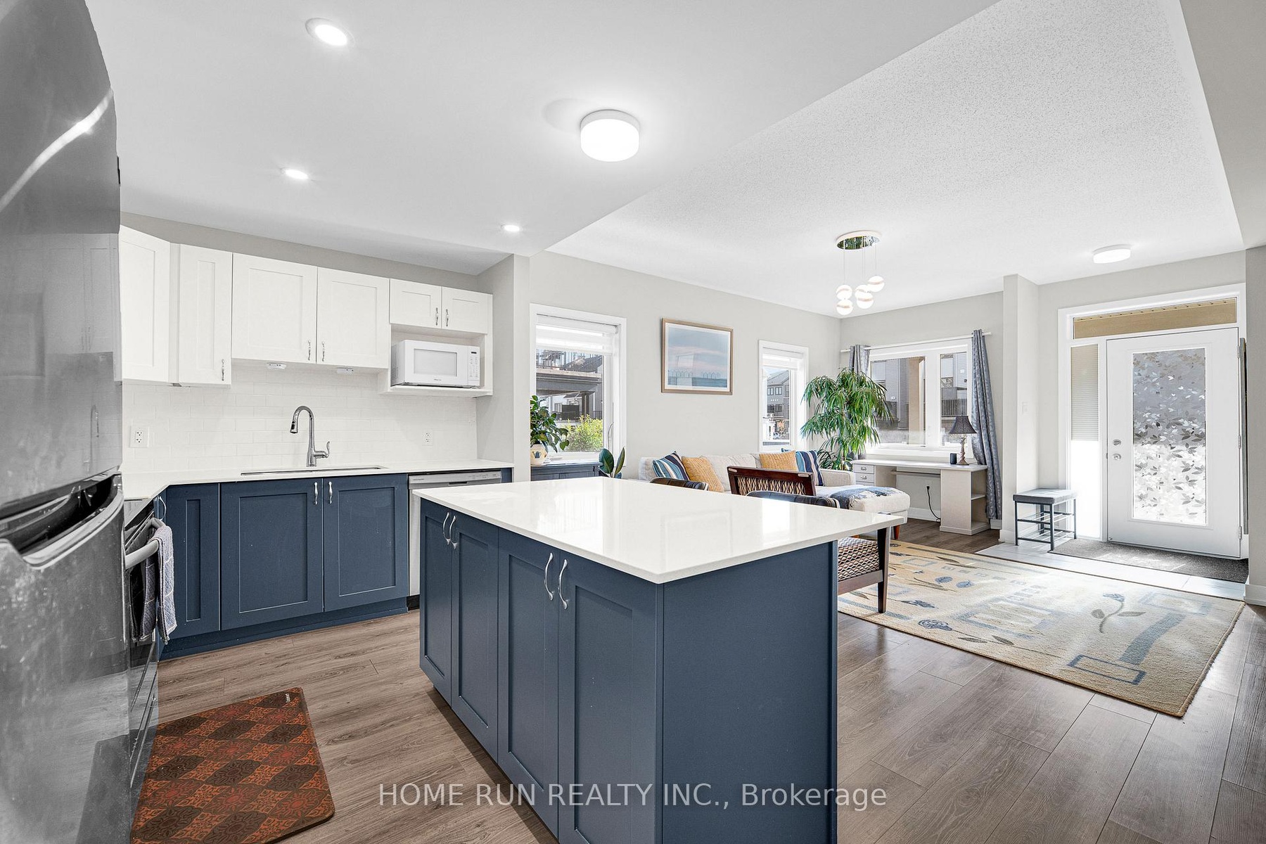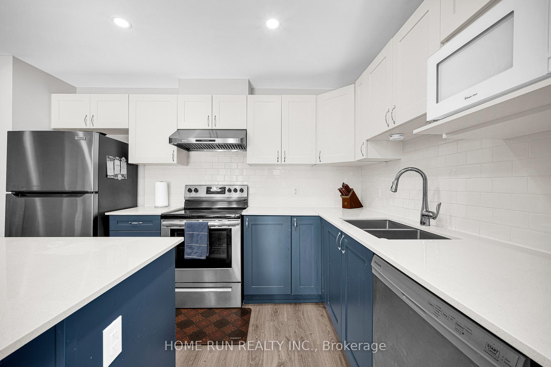 Location, location, location! This like-new end-unit stacked townhouse (Poppy model) offers over 1,800 sq.ft. of beautifully finished living space and is truly move-in ready. The main level features a bright open-concept layout with 9 ft ceilings, a spacious living and dining area, a versatile den, two bedrooms, and a full bathroom. The modern L-shaped kitchen showcases upgraded quartz countertops, stainless steel appliances, stylish cabinetry, and an island with a breakfast bar.The primary bedroom includes both his and her closets and provides potential for an ensuite conversion. The second bedroom is bright and airy with plenty of natural light. The fully finished lower level adds exceptional living space with large windows, a generous recreation room, a full bathroom with walk-in shower, and a third bedroom-ideal for guests, a home office, or additional family space.Additional features include in-unit laundry on the main level, ample storage, upgraded flooring throughout, and designated parking (Space #22). Conveniently located just minutes from schools, parks, transit, shopping, and everyday amenities.