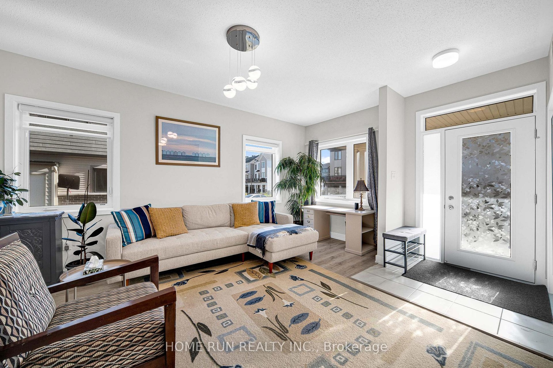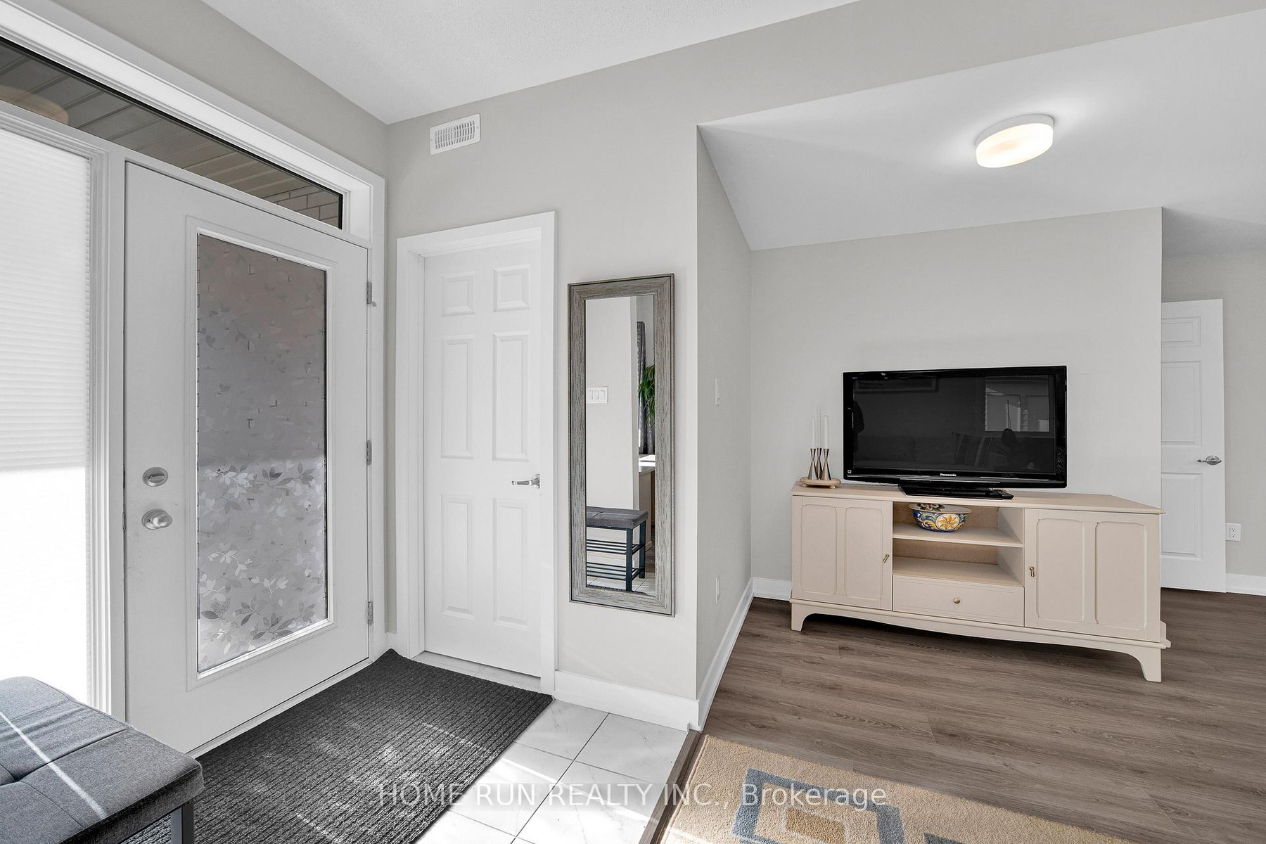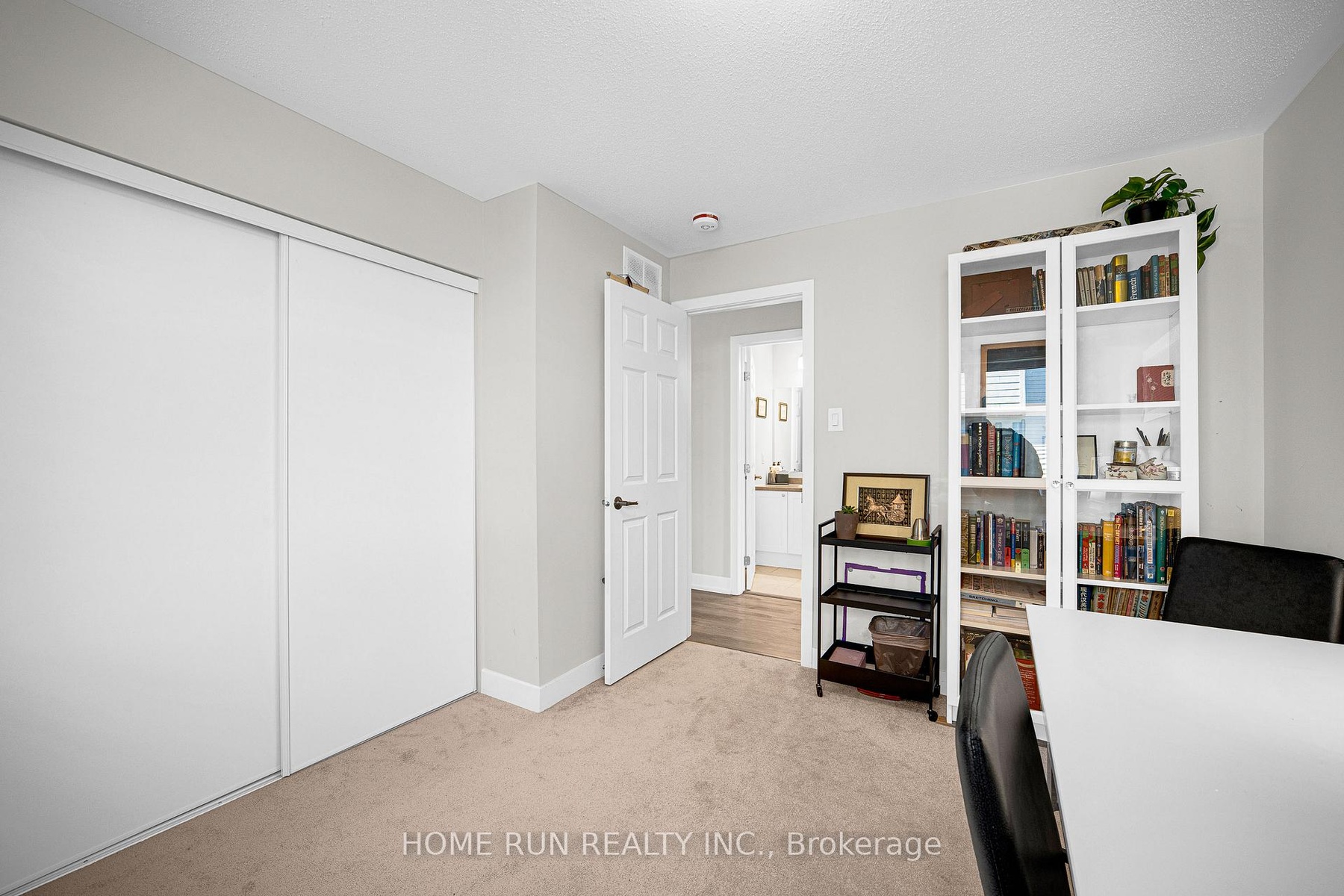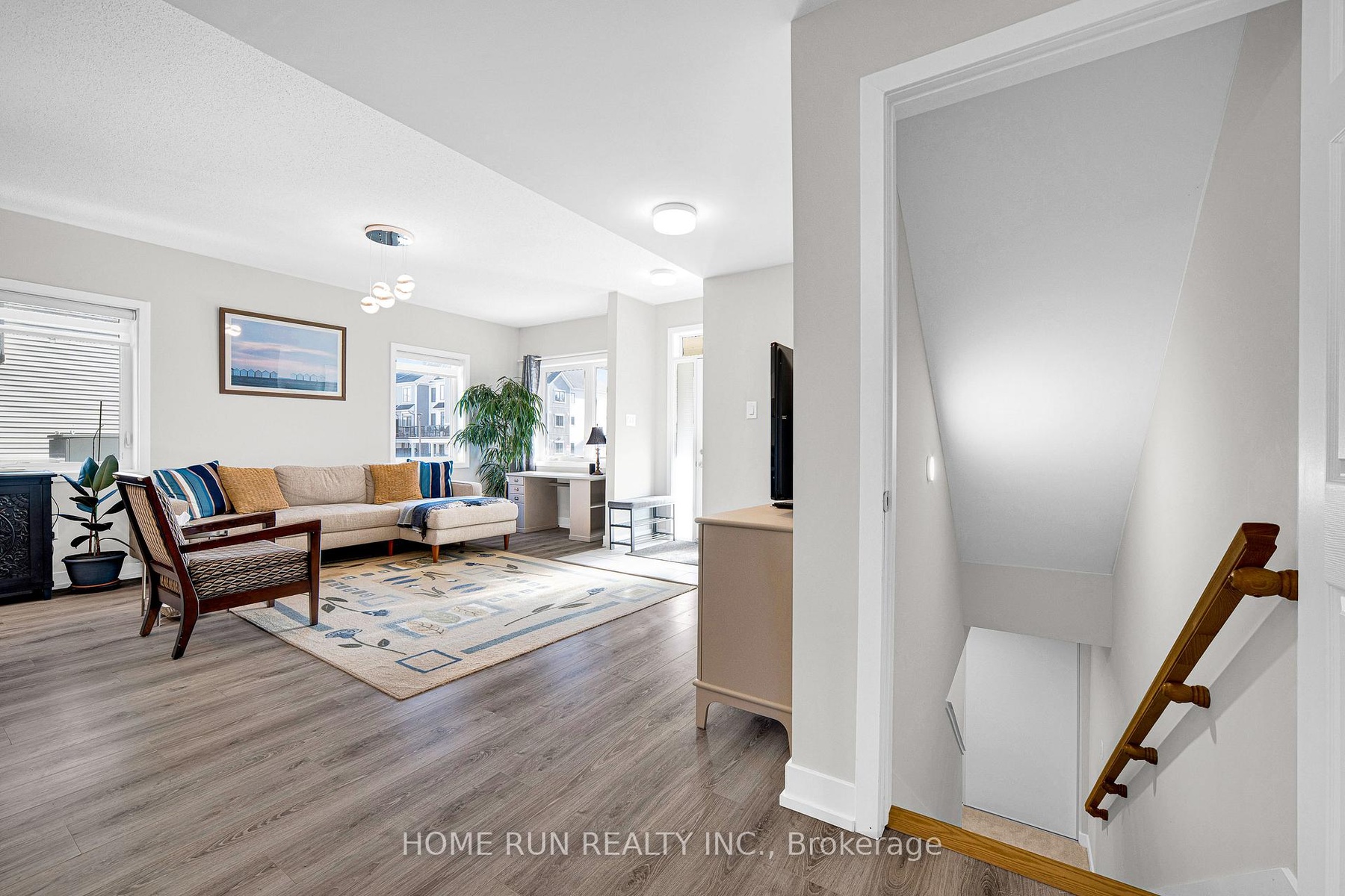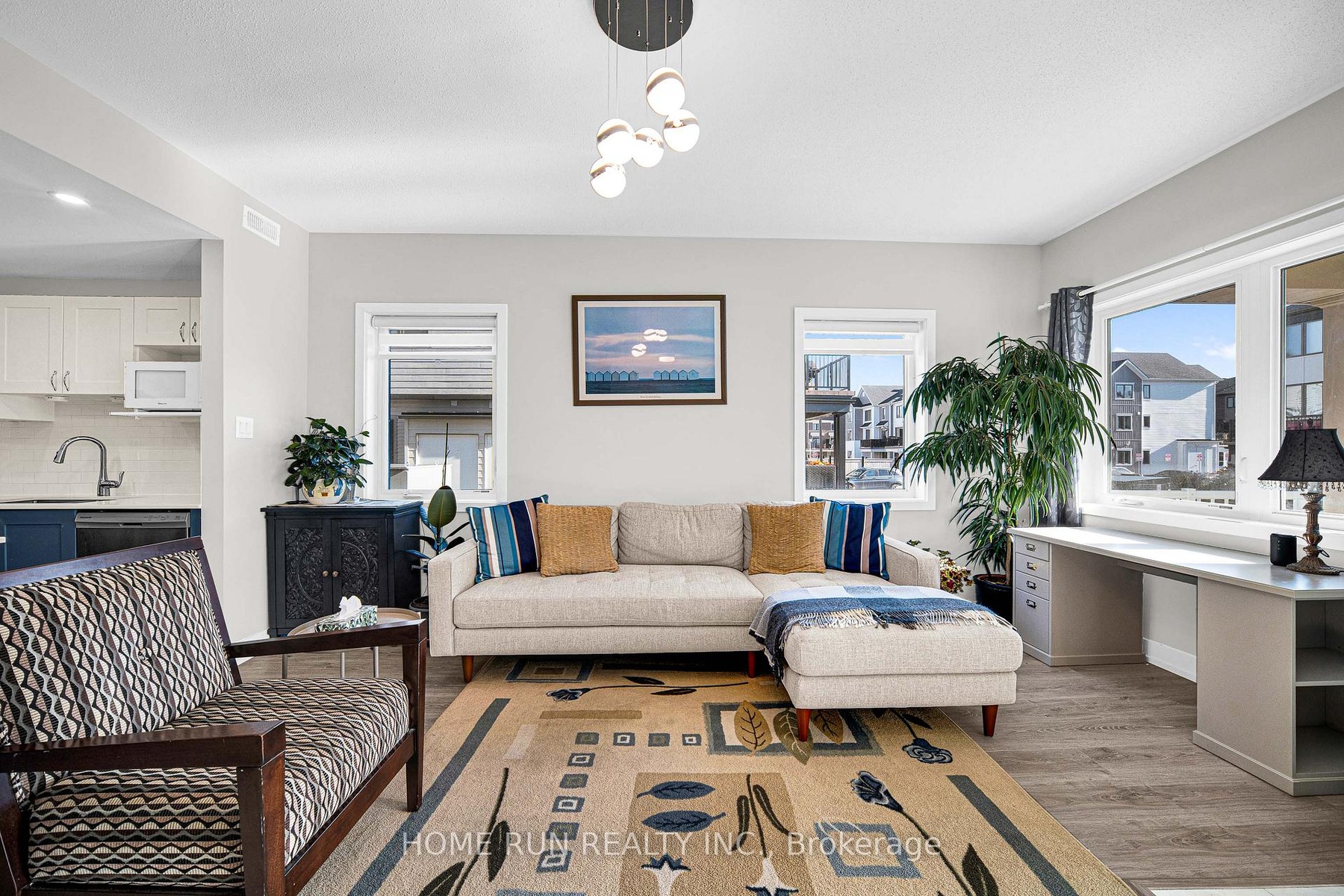 Location, location, location! This like-new end-unit stacked townhouse (Poppy model) offers over 1,800 sq.ft. of beautifully finished living space and is truly move-in ready. The main level features a bright open-concept layout with 9 ft ceilings, a spacious living and dining area, a versatile den, two bedrooms, and a full bathroom. The modern L-shaped kitchen showcases upgraded quartz countertops, stainless steel appliances, stylish cabinetry, and an island with a breakfast bar.The primary bedroom includes both his and her closets and provides potential for an ensuite conversion. The second bedroom is bright and airy with plenty of natural light. The fully finished lower level adds exceptional living space with large windows, a generous recreation room, a full bathroom with walk-in shower, and a third bedroom-ideal for guests, a home office, or additional family space.Additional features include in-unit laundry on the main level, ample storage, upgraded flooring throughout, and designated parking (Space #22). Conveniently located just minutes from schools, parks, transit, shopping, and everyday amenities.