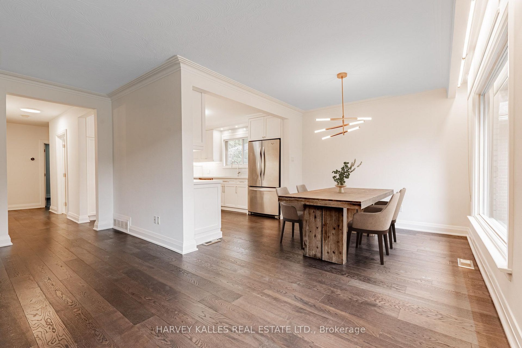 Welcome to this beautifully renovated 3-bedroom bungalow nestled in the highly sought-after Bathurst Manor neighbourhood. This charming home sits on a spacious lot with a large, fully fenced backyard - perfect for family gatherings and outdoor entertaining. The main floor features elegant hardwood floors, crown moulding, and designer paint throughout. The bright and open-concept living and dining area is enhanced by large windows that fill the space with natural sunlight. The modern kitchen offers pot lights, a stylish tiled backsplash, quartz countertops, pot drawers, a pantry, and stainless steel appliances - ideal for any home chef. Convenient main-floor laundry adds to the home's functionality. The lower level boasts a separate entrance, two additional bedrooms, a large great room, and a second kitchen - offering excellent potential for an in-law suite. Located just steps from public transit and close to parks, top-rated schools, shopping, and dining, this home perfectly combines comfort, style, and convenience.