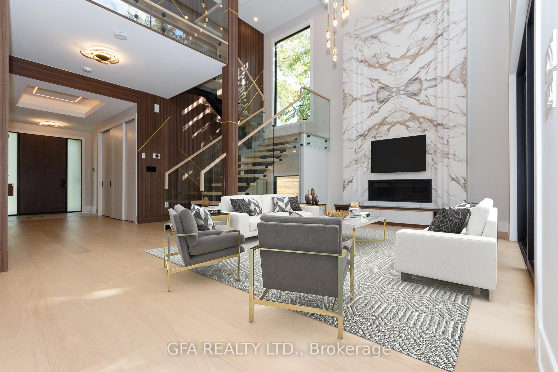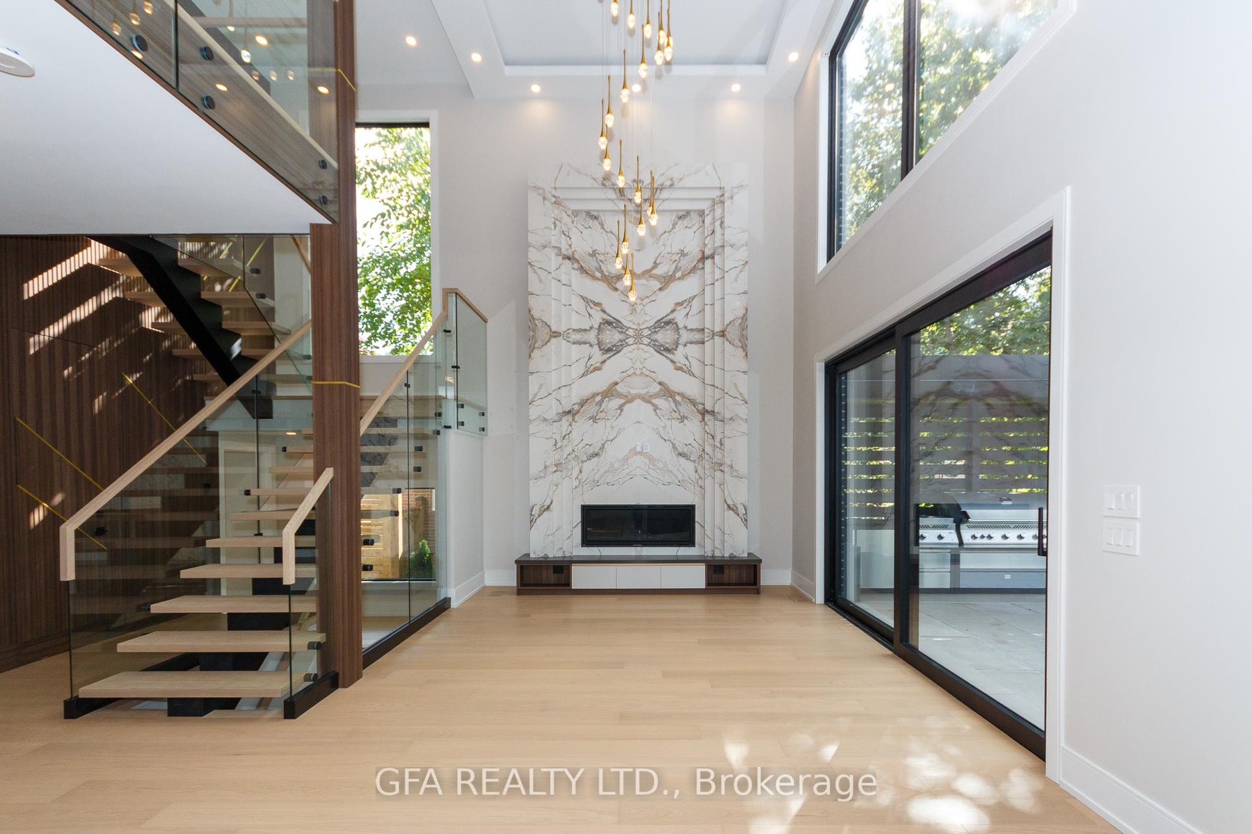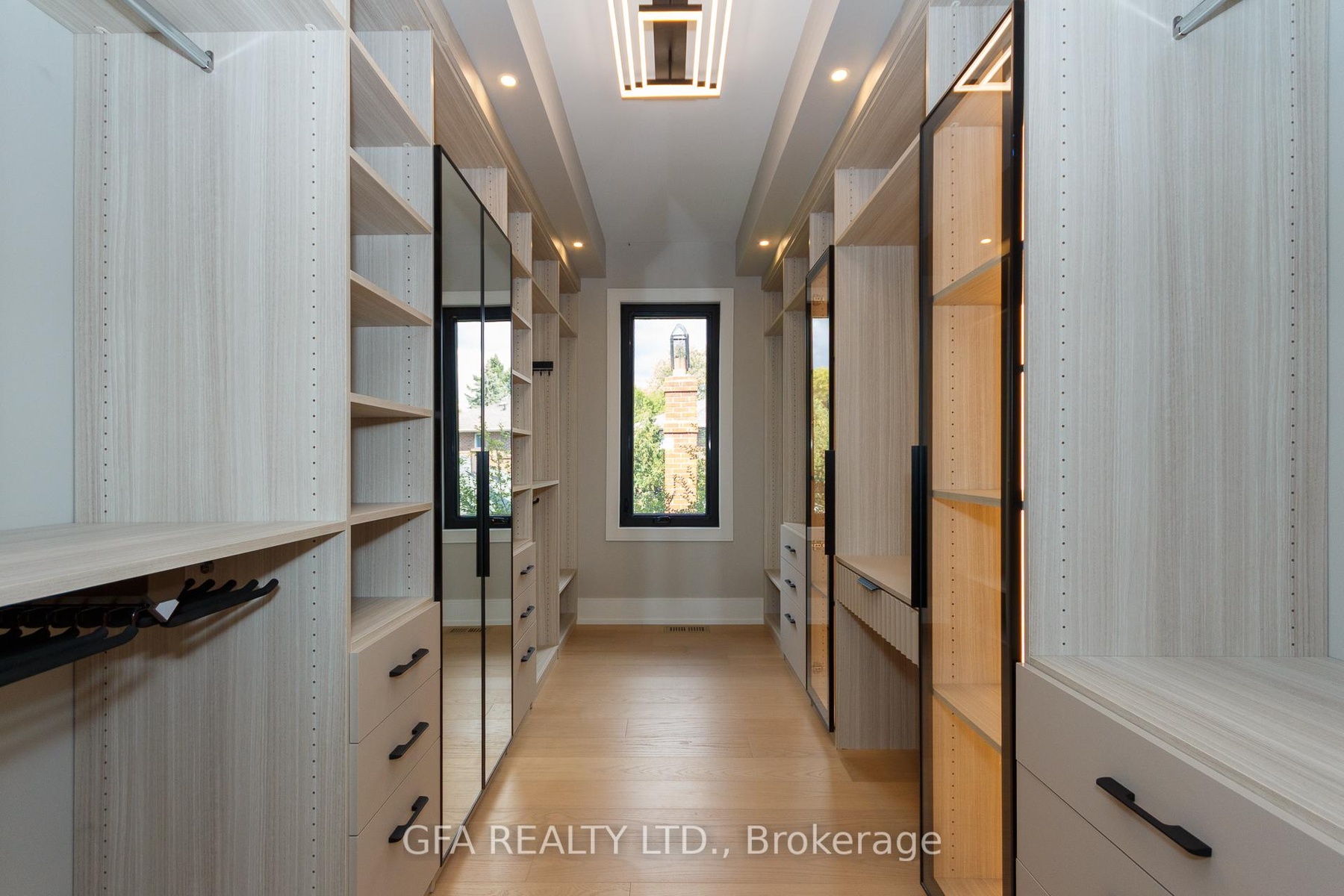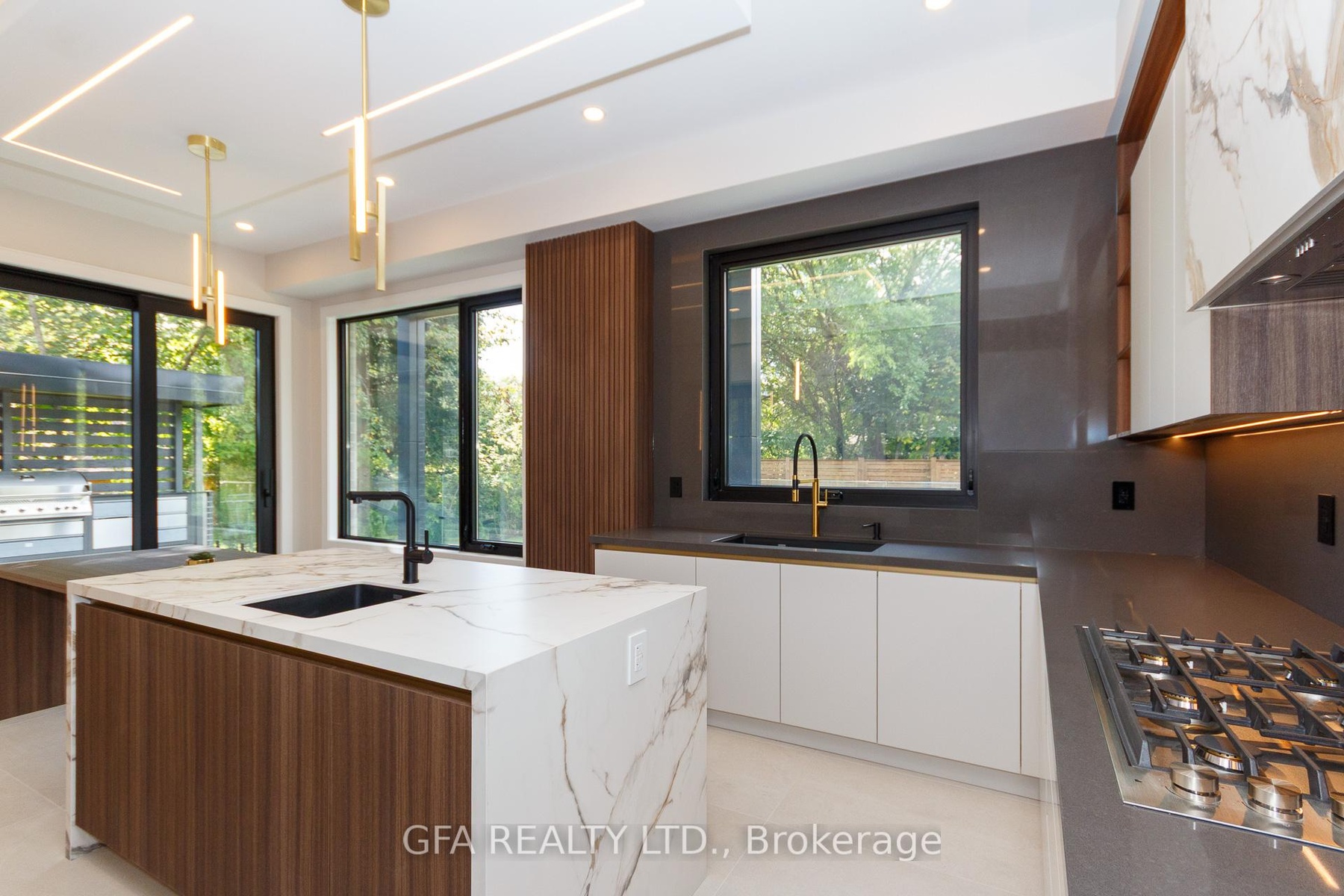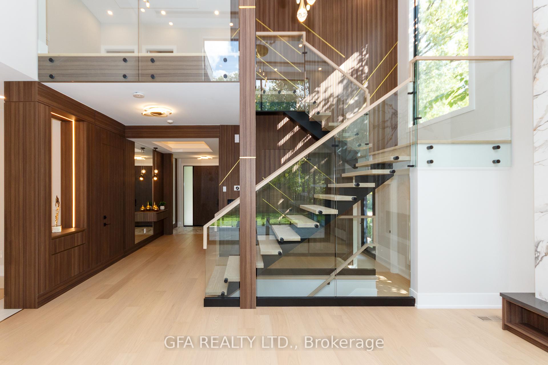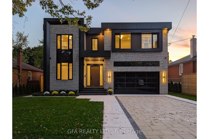 Exquisite custom-built luxury home in the prestigious Mineola neighbourhood, meticulously designed by Hilal Company & Inspiration Design, and crafted by Eaglecrest New Homes Inc.This breathtaking 5,500+ sq ft residence perfectly combines timeless elegance, modern sophistication, and superior craftsmanship. Every detail has been thoughtfully curated, from the grand entrance to the bespoke millwork, artisan paneling, and striking feature walls that define the interiors.Step into the main floor to experience soaring 20-foot ceilings and floor-to-ceiling windows that flood the space with natural light. The dramatic 17-foot porcelain fireplace serves as a stunning focal point for the open-concept family and living areas. A chef-inspired kitchen, featuring integrated Jenn Air appliances, luxurious countertops, Italian porcelain, and a dedicated breakfast area, seamlessly connects to formal dining and entertaining spaces. A bright home office, ultra-modern powder room, and mudroom with side entrance complete the main level with thoughtful functionality.The upper level offers a serene primary suite retreat, featuring a spa-inspired ensuite and expansive walk-in closet. Three additional bedrooms each include private ensuites and walk-in closets, ensuring comfort and privacy for every family member. A full laundry room adds convenience and efficiency to the upper level. The fully finished lower level is designed for entertainment and wellness, with a vast recreation room featuring a home theatre, granite wet bar with wine display, and walk-up access to the backyard. A dedicated gym and wellness area includes a spa bathroom with jetted tub, while a private in-law suite offers a kitchenette, living space, bathroom, and walk-in closet. Additional storage and laundry complete this level. Step outside to a beautifully landscaped outdoor oasis with covered and open-air decks, built-in BBQ, natural stone patio, and integrated outdoor speakers.