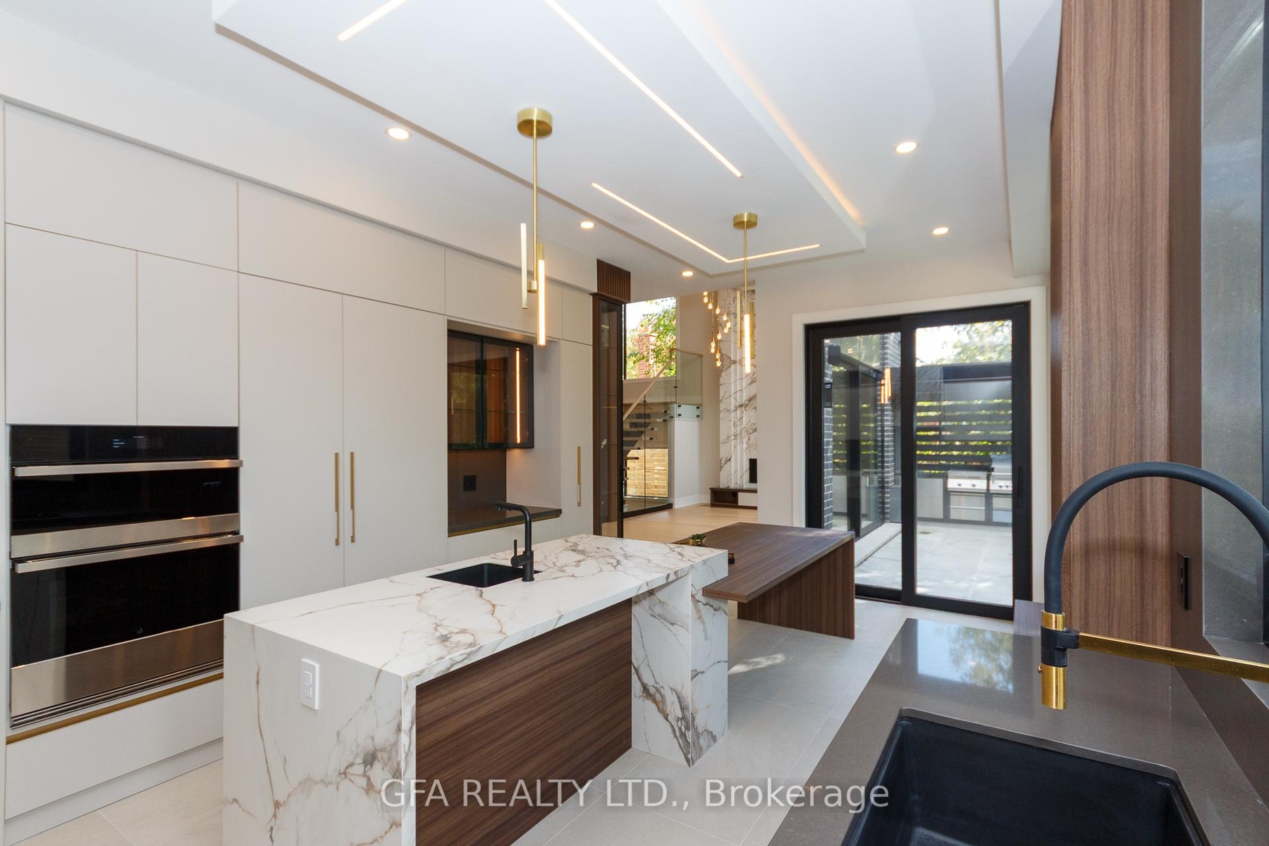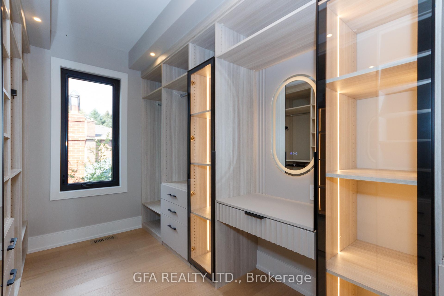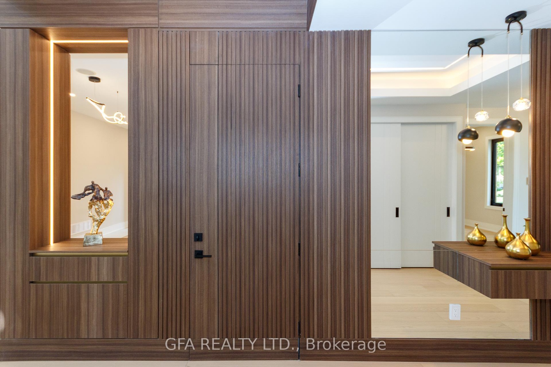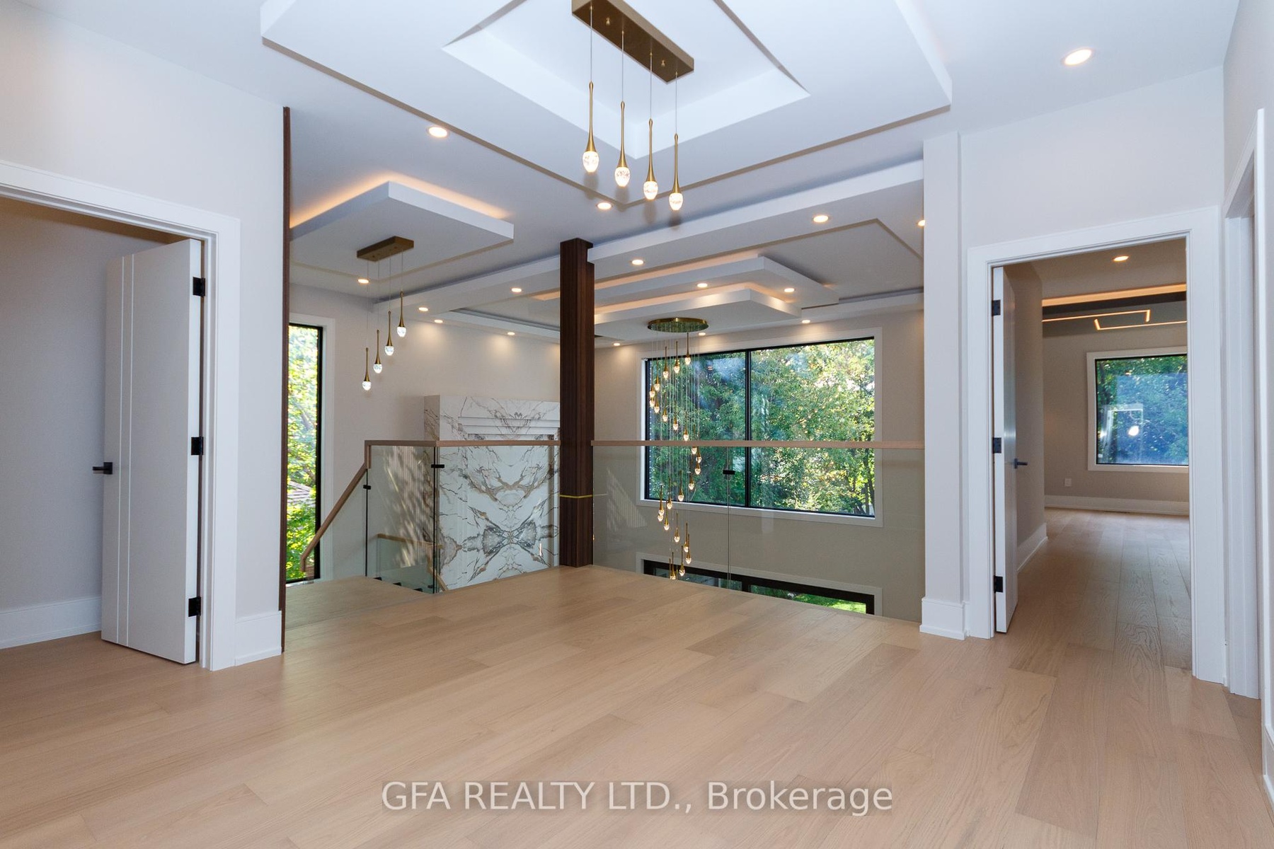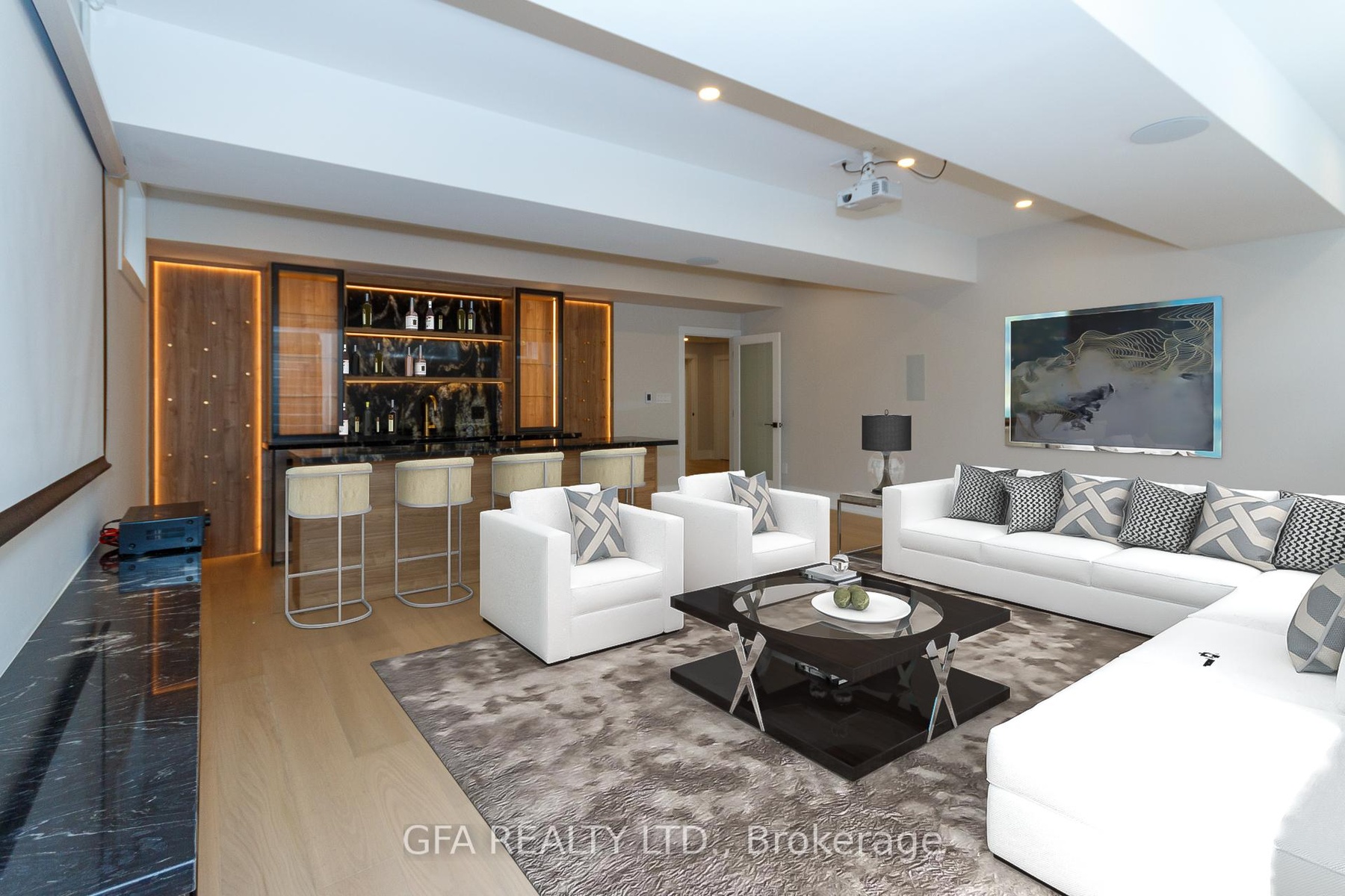 Exquisite custom-built luxury home in the prestigious Mineola neighbourhood, meticulously designed by Hilal Company & Inspiration Design, and crafted by Eaglecrest New Homes Inc.This breathtaking 5,500+ sq ft residence perfectly combines timeless elegance, modern sophistication, and superior craftsmanship. Every detail has been thoughtfully curated, from the grand entrance to the bespoke millwork, artisan paneling, and striking feature walls that define the interiors.Step into the main floor to experience soaring 20-foot ceilings and floor-to-ceiling windows that flood the space with natural light. The dramatic 17-foot porcelain fireplace serves as a stunning focal point for the open-concept family and living areas. A chef-inspired kitchen, featuring integrated Jenn Air appliances, luxurious countertops, Italian porcelain, and a dedicated breakfast area, seamlessly connects to formal dining and entertaining spaces. A bright home office, ultra-modern powder room, and mudroom with side entrance complete the main level with thoughtful functionality.The upper level offers a serene primary suite retreat, featuring a spa-inspired ensuite and expansive walk-in closet. Three additional bedrooms each include private ensuites and walk-in closets, ensuring comfort and privacy for every family member. A full laundry room adds convenience and efficiency to the upper level. The fully finished lower level is designed for entertainment and wellness, with a vast recreation room featuring a home theatre, granite wet bar with wine display, and walk-up access to the backyard. A dedicated gym and wellness area includes a spa bathroom with jetted tub, while a private in-law suite offers a kitchenette, living space, bathroom, and walk-in closet. Additional storage and laundry complete this level. Step outside to a beautifully landscaped outdoor oasis with covered and open-air decks, built-in BBQ, natural stone patio, and integrated outdoor speakers.