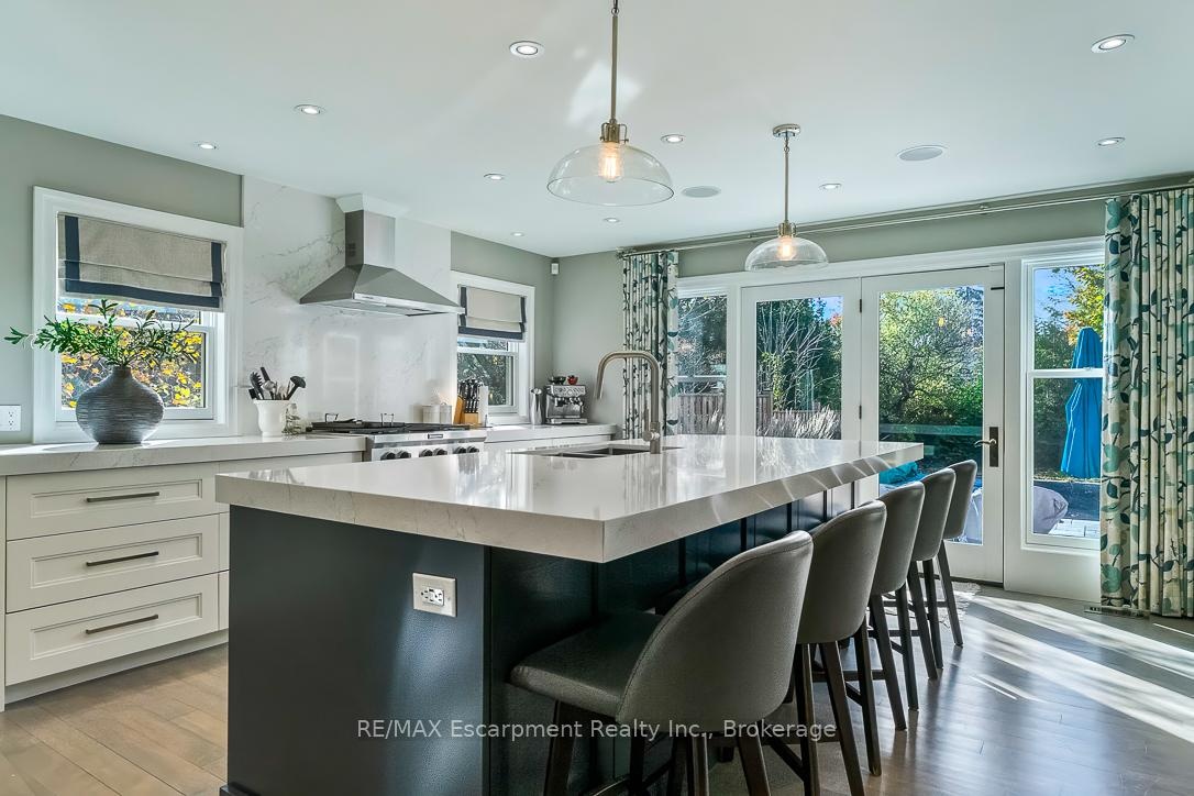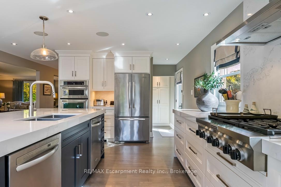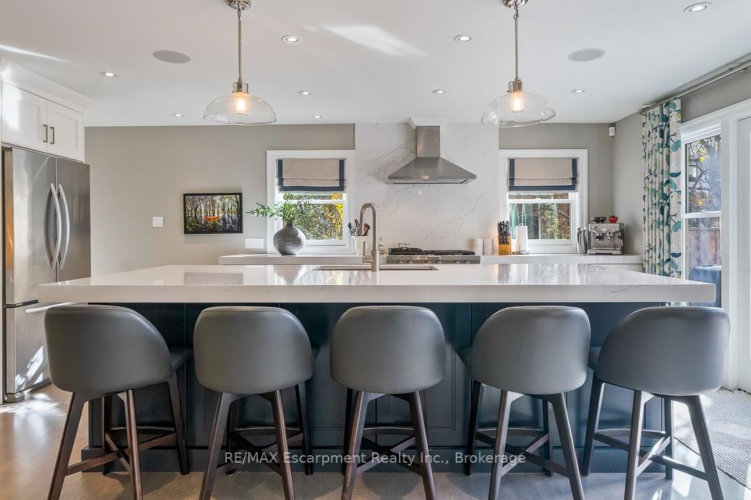 Discover this stunningly upgraded bungalow, perfectly situated just a short walk to Kerr Village and downtown Oakville. The home features a seamless open-concept layout, ideal for hosting family and friends, with a modern kitchen featuring two dishwashers, an open living room, and spacious dining and family areas. Enjoy the warmth and charm of two wood-burning fireplaces throughout the home. The main level includes two bedrooms and 1.5 bathrooms, with flexible options to create a private master retreat. The finished basement offers even more living space, while the beautifully landscaped backyard is complete with a built-in pool, perfect for relaxing and entertaining. Ideal for downsizers or a young family, this is a rare find you won't want to miss!