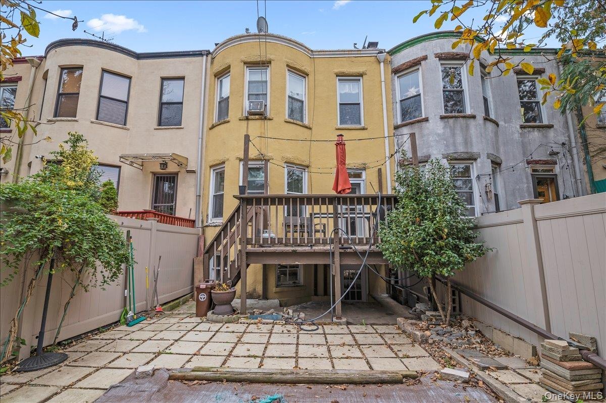 Outside, a private fenced-in yard with a beautiful paver patio creates an inviting setting for entertaining and outdoor enjoyment. Inside, you’ll find sun-filled bay windows, high ceilings, crown moldings, and a layout that offers warmth and character throughout.