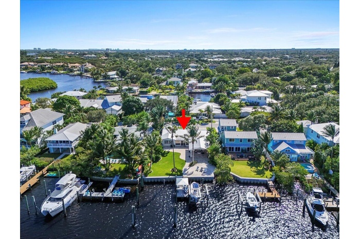 Premier Waterfront Opportunity in Yacht Club Estates!A boater's dream location. This .30-acre waterfront property offers 75 ft of deep-water frontage with no fixed bridges, just seconds to the Intracoastal and minutes to the Jupiter Inlet. Positioned directly across from scenic Sawfish Bay, enjoy wide-water views and quick access to Jupiter's best waterways, beaches, and dining.The property features a new seawall, 16,000 lb lift, dock and pilings that can accomodate a 54 ft boat. Whether you choose to enjoy the existing 3-bed, 2-bath renovated home or build your custom waterfront estate, this rare offering in Yacht Club Estates provides unmatched flexibility and lifestyle potential with no HOA. Bring your vision and make the most of this prime Jupiter waterfront location!