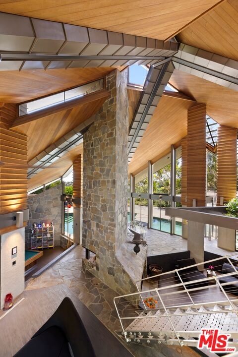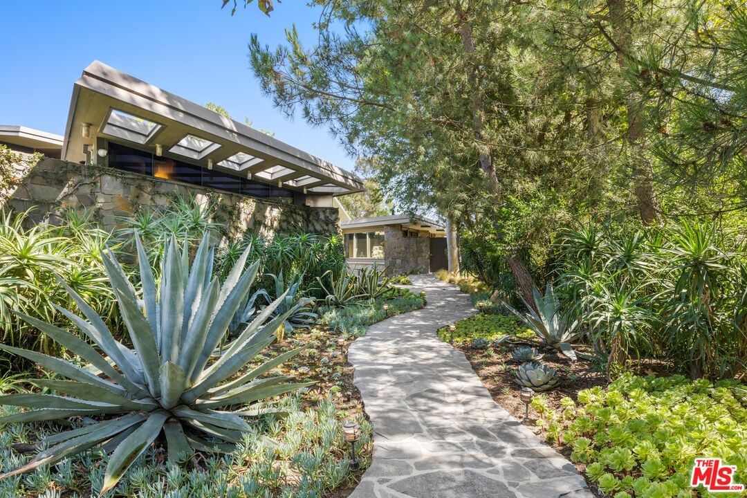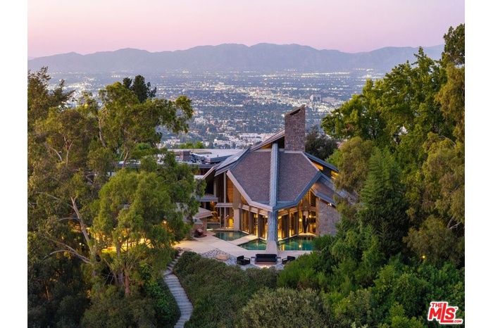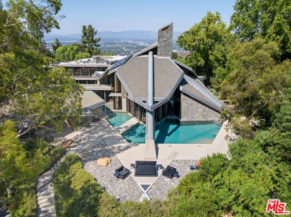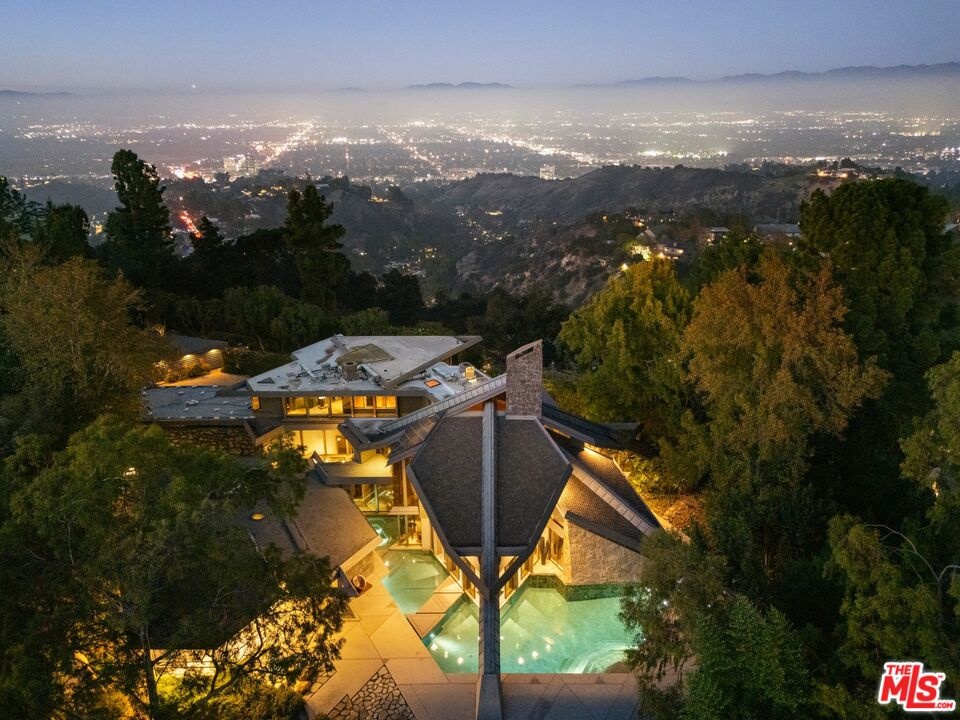 An extraordinary value for a home of this scale and significance offering over 9,600 square feet of architectural brilliance, soaring ceilings, dramatic entertaining spaces, one-of-a-kind pool/spa, views, and complete privacy behind gates. A true architectural landmark, this one-of-a-kind Bel Air estate, the "Ursa Major" is both a piece of history and a work of art. Originally conceived by renowned AIA architect David Rich and inspired by FAIA Frank Lloyd Wright, this estate was custom built for basketball legend Wilt Chamberlain ("The Big Dipper"). Perched atop a secluded 2.5-acre promontory at the end of a quiet cul-de-sac with only nine other homes, this serene neighborhood is immersed in nature and surrounded by soaring eucalyptus trees and sweeping canyon views, offering a sense of peace rarely found in Los Angeles. With absolute privacy behind massive gates, views include city and valley views, Stone Canyon Reservoir and all the way to Long Beach on clear day. Recent renovations were carefully considered to blend luxurious materials while preserving its bold architectural soul, including soaring volumes, organic geometry, five-story great room with cathedral ceilings, tree-like columns, walls of glass and signature Bouquet Canyon stonework. Layout includes a massive primary retreat with his and her baths and closets with city views, media room, guest-maid quarters, guest room with separate access, billiard lounge, redwood sauna, outdoor kitchen and expansive indoor-outdoor entertainment areas surrounded by lush gardens including a look-out point and fig, orange and lemon trees. At the heart of the property lies one of the most extraordinary residential pools in Los Angeles - a natural-style body of water that wraps around the home and even allows you to swim directly from the outdoors into the main residence - a feature impossible to replicate under today's building codes. A grand motor court and three garages accommodate 10+ vehicles, while an additional climate-controlled detached structure provides ample storage. A celebration of visionary design, privacy, and natural beauty, this estate stands as a living testament to timeless architecture and the enduring spirit of its legendary creator. Truly an "Architectural Wonder" and a must-see for discerning buyers who value privacy, artistry, and history in one of Bel Air's most prestigious enclaves. Ideally located between Van Nuys and Burbank Airport for jetsetters and private travel. Seller will consider cryptocurrency as a form of payment. Verification of funds required to schedule showing with 24-48 hours notice. Consider tennis shoes to walk the expansive grounds!