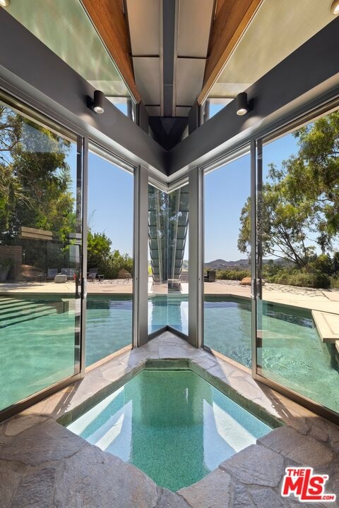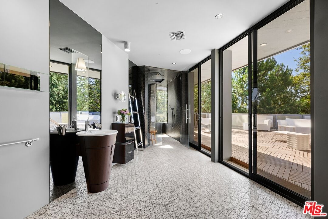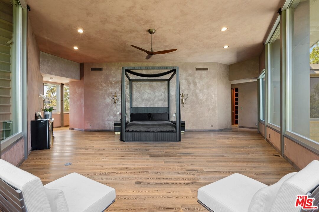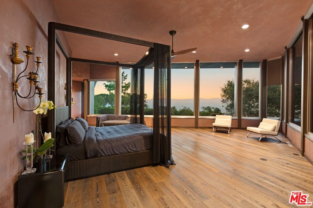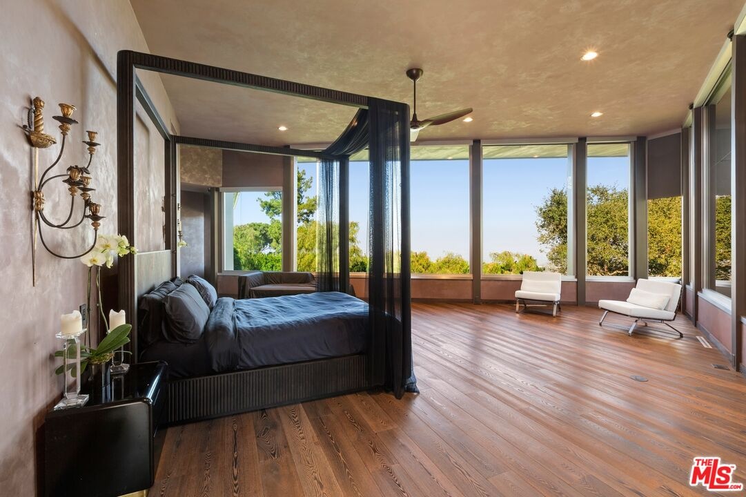 An extraordinary value for a home of this scale and significance offering over 9,600 square feet of architectural brilliance, soaring ceilings, dramatic entertaining spaces, one-of-a-kind pool/spa, views, and complete privacy behind gates. A true architectural landmark, this one-of-a-kind Bel Air estate, the "Ursa Major" is both a piece of history and a work of art. Originally conceived by renowned AIA architect David Rich and inspired by FAIA Frank Lloyd Wright, this estate was custom built for basketball legend Wilt Chamberlain ("The Big Dipper"). Perched atop a secluded 2.5-acre promontory at the end of a quiet cul-de-sac with only nine other homes, this serene neighborhood is immersed in nature and surrounded by soaring eucalyptus trees and sweeping canyon views, offering a sense of peace rarely found in Los Angeles. With absolute privacy behind massive gates, views include city and valley views, Stone Canyon Reservoir and all the way to Long Beach on clear day. Recent renovations were carefully considered to blend luxurious materials while preserving its bold architectural soul, including soaring volumes, organic geometry, five-story great room with cathedral ceilings, tree-like columns, walls of glass and signature Bouquet Canyon stonework. Layout includes a massive primary retreat with his and her baths and closets with city views, media room, guest-maid quarters, guest room with separate access, billiard lounge, redwood sauna, outdoor kitchen and expansive indoor-outdoor entertainment areas surrounded by lush gardens including a look-out point and fig, orange and lemon trees. At the heart of the property lies one of the most extraordinary residential pools in Los Angeles - a natural-style body of water that wraps around the home and even allows you to swim directly from the outdoors into the main residence - a feature impossible to replicate under today's building codes. A grand motor court and three garages accommodate 10+ vehicles, while an additional climate-controlled detached structure provides ample storage. A celebration of visionary design, privacy, and natural beauty, this estate stands as a living testament to timeless architecture and the enduring spirit of its legendary creator. Truly an "Architectural Wonder" and a must-see for discerning buyers who value privacy, artistry, and history in one of Bel Air's most prestigious enclaves. Ideally located between Van Nuys and Burbank Airport for jetsetters and private travel. Seller will consider cryptocurrency as a form of payment. Verification of funds required to schedule showing with 24-48 hours notice. Consider tennis shoes to walk the expansive grounds!